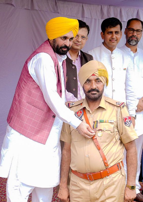 ਇਸ ਦੇ ਨਾਲ ਹੀ ਮੁੱਖ ਮੰਤਰੀ ਨੇ ਅਮਨਦੀਪ ਕੁਮਾਰ ਐਸ.ਆਈ., ਜਸਬੀਰ ਸਿੰਘ ਏ.ਐਸ.ਆਈ ਅਤੇ ਰਣਜੀਤ ਸਿੰਘ ਕਾਂਸਟੇਬਲ ਸਮੇਤ ਤਿੰਨ ਪੁਲਿਸ ਅਧਿਕਾਰੀਆਂ/ਕਰਮਚਾਰੀਆਂ ਨੂੰ ਵੱਕਾਰੀ ‘ਮੁੱਖ ਮੰਤਰੀ ਰਕਸ਼ਕ ਪਦਕ’ ਨਾਲ ਸਨਮਾਨਿਤ ਕੀਤਾ। ਭਗਵੰਤ ਸਿੰਘ ਮਾਨ ਨੇ ਜਗਵਿੰਦਰ ਸਿੰਘ ਕਮਾਂਡੈਂਟ, ਜਸਕਿਰਨਜੀਤ ਸਿੰਘ ਤੇਜਾ ਡੀ.ਸੀ.ਪੀ ਲੁਧਿਆਣਾ, ਸਵਰਨਦੀਪ ਸਿੰਘ ਏ.ਆਈ.ਜੀ., ਵਿਕਾਸ ਸੱਭਰਵਾਲ ਏ.ਆਈ.ਜੀ., ਮਨੀਸ਼ ਕੁਮਾਰ ਡੀ.ਐਸ.ਪੀ. ਵਿਜੀਲੈਂਸ ਬਿਊਰੋ, ਸੁਖਵਿੰਦਰ ਸਿੰਘ ਇੰਸਪੈਕਟਰ, ਪਰਮਜੀਤ ਸਿੰਘ ਇੰਸਪੈਕਟਰ, ਅਮਰਜੀਤ ਸਿੰਘ ਇੰਸਪੈਕਟਰ, ਨਵਜੋਤ ਸਿੰਘ ਸਿੱਧੂ ਇੰਸਪੈਕਟਰ, ਕੁਲਵਿੰਦਰ ਸਿੰਘ ਇੰਸਪੈਕਟਰ, ਜਤਿੰਦਰ ਸਿੰਘ ਇੰਸਪੈਕਟਰ, ਜਗਨਦੀਪ ਸਿੰਘ ਸਬ-ਇੰਸਪੈਕਟਰ, ਭੋਲਾ ਨਾਥ ਸਬ-ਇੰਸਪੈਕਟਰ, ਜਗਦੀਸ਼ ਸਿੰਘ ਏ.ਐੱਸ.ਆਈ., ਹਰਪ੍ਰੀਤ ਕੌਰ ਏ.ਐੱਸ.ਆਈ., ਹਰਜੀਤ ਸਿੰਘ ਏ.ਐੱਸ.ਆਈ., ਰਤਨ ਲਾਲ ਏ.ਐੱਸ.ਆਈ ਅਤੇ ਸੁਖਜੀਤ ਸਿੰਘ ਹੈੱਡ ਕਾਂਸਟੇਬਲ ਸਮੇਤ 18 ਪੁਲਿਸ ਮੁਲਾਜ਼ਮਾਂ ਨੂੰ ਡਿਊਟੀ ਪ੍ਰਤੀ ਬੇਮਿਸਾਲ ਸੇਵਾਵਾਂ ਲਈ ‘ਮੁੱਖ ਮੰਤਰੀ ਮੈਡਲ’ ਨਾਲ ਸਨਮਾਨਿਤ ਕੀਤਾ।