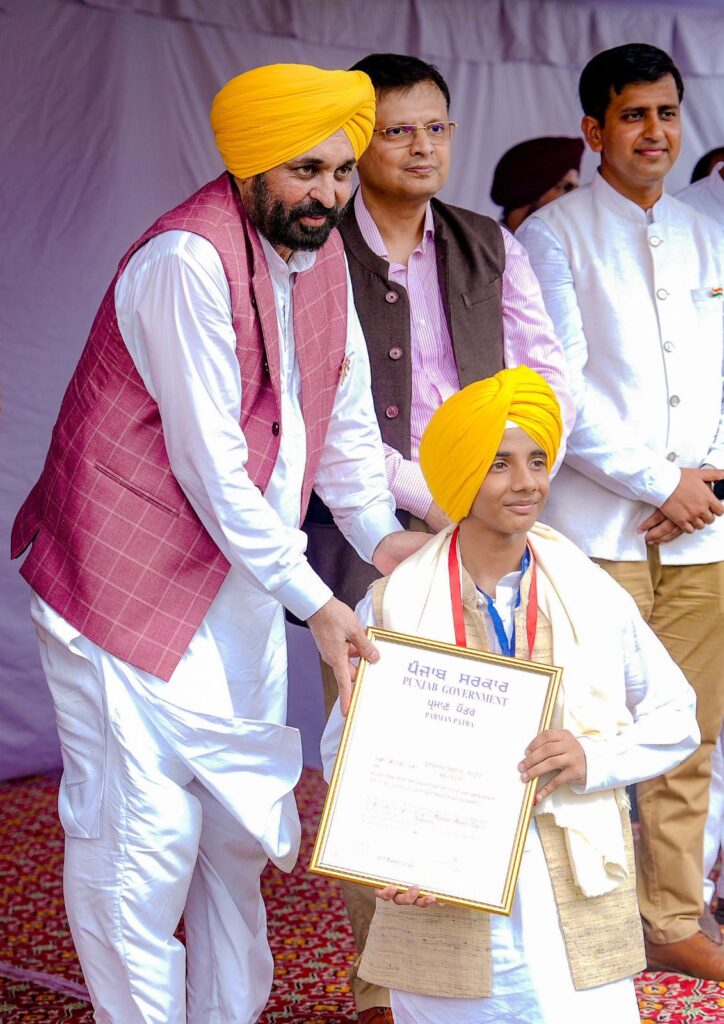ਆਜ਼ਾਦੀ ਦਿਵਸ ਮੌਕੇ ਪੰਜਾਬ ਦੇ ਮੁੱਖ ਮੰਤਰੀ ਭਗਵੰਤ ਸਿੰਘ ਮਾਨ ਨੇ ਵੱਖ-ਵੱਖ ਖੇਤਰਾਂ ਵਿੱਚ ਸ਼ਾਨਦਾਰ ਯੋਗਦਾਨ ਪਾਉਣ ਵਾਲੀਆਂ 15 ਉੱਘੀਆਂ ਸ਼ਖਸੀਅਤਾਂ ਨੂੰ ਸਟੇਟ ਐਵਾਰਡ ਨਾਲ ਸਨਮਾਨਿਤ ਕਰਨ ਤੋਂ ਇਲਾਵਾ ਤਿੰਨ ਪੁਲਿਸ ਅਧਿਕਾਰੀਆਂ/ਕਰਮਚਾਰੀਆਂ ਨੂੰ ‘ਮੁੱਖ ਮੰਤਰੀ ਰਕਸ਼ਕ ਪਦਕ’, 18 ਪੁਲਿਸ ਮੁਲਾਜ਼ਮਾਂ ਨੂੰ ਡਿਊਟੀ ਪ੍ਰਤੀ ਸ਼ਾਨਦਾਰ ਸੇਵਾਵਾਂ ਲਈ ‘ਮੁੱਖ ਮੰਤਰੀ ਮੈਡਲ’ ਅਤੇ ਦੋ ਮੁਲਾਜ਼ਮਾਂ ਨੂੰ ‘ਸ਼ਹੀਦ ਭਗਤ ਸਿੰਘ ਪੰਜਾਬ ਰਾਜ ਸਾਲਾਨਾ ਵਾਤਾਵਰਨ ਪੁਰਸਕਾਰ’ ਨਾਲ ਸਨਮਾਨਿਤ ਕੀਤਾ।