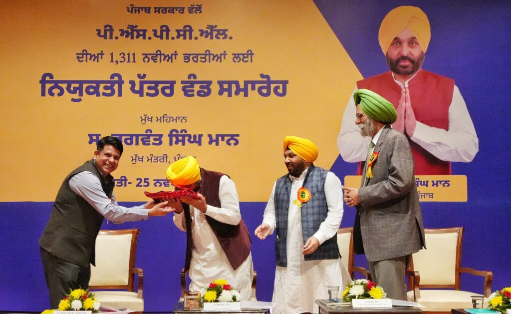 ਪੀ.ਐਸ.ਪੀ.ਸੀ.ਐਲ. ਵਿੱਚ 1311 ਨੌਜਵਾਨਾਂ ਨੂੰ ਨਿਯੁਕਤੀ ਪੱਤਰ ਸੌਂਪੇ
