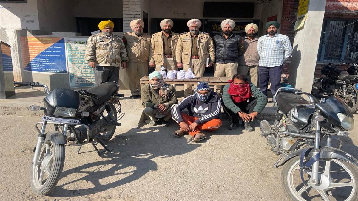 ਐੱਸਐੱਸਪੀ ਅਭੀਮੰਨਿਊ ਰਾਣਾ ਨੇ ਦੱਸਿਆ ਕਿ ਸਰਹੱਦੀ ਇਲਾਕੇ ਵਿਚ ਡੀਐੱਸਪੀ ਭਿੱਖੀਵਿੰਡ ਪ੍ਰੀਤਇੰਦਰ ਸਿੰਘ ਦੀ ਨਿਗਰਾਨੀ ਹੇਠ ਨਸ਼ਾ ਤਸਕਰਾਂ ਵਿਰੁੱਧ ਵੱਡੇ ਪੱਧਰ ’ਤੇ ਮੁਹਿੰਮ ਚਲਾਈ ਹੋਈ ਹੈ। ਜਿਸ ਤਹਿਤ ਥਾਣਾ ਵਲਟੋਹਾ ਦੇ ਮੁਖੀ ਇੰਸਪੈਕਟਰ ਚਰਨ ਸਿੰਘ ਜਦੋਂ ਪੁਲਿਸ ਪਾਰਟੀ ਸਮੇਤ ਗਸ਼ਤ ’ਤੇ ਸਨ ਤਾਂ ਉਨ੍ਹਾਂ ਨੂੰ ਸੂਚਨਾ ਮਿਲੀ ਕਿ ਦਾਣਾ ਮੰਡੀ ਅਮਰਕੋਟ ਵਿਚ ਦੋ ਮੋਟਰਸਾਈਕਲਾਂ ’ਤੇ ਤਿੰਨ ਸ਼ੱਕੀ ਵਿਅਕਤੀ ਸਵਾਰ ਹਨ ਤੇ ਉਨ੍ਹਾਂ ਦੇ ਕੋਲ ਗੈਰ ਕਾਨੂੰਨੀ ਸਾਮਾਨ ਹੋ ਸਕਦਾ ਹੈ।