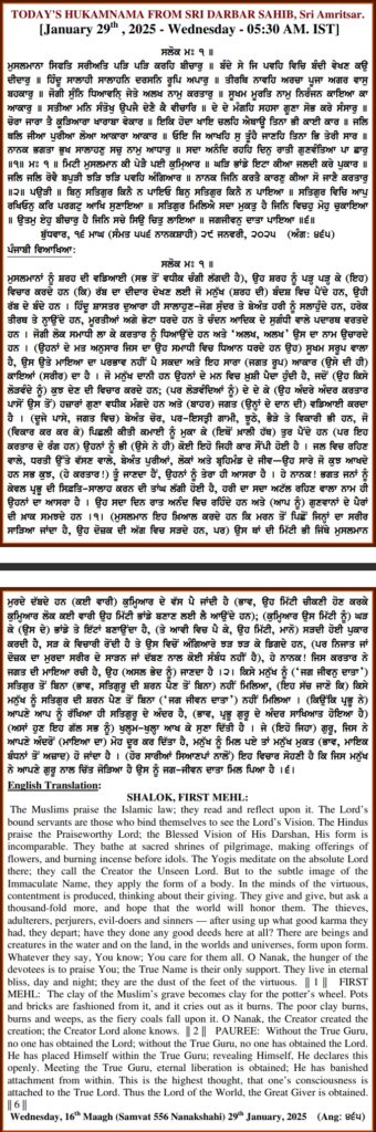 Wednesday, 16th Maagh (Samvat 556 Nanakshahi)