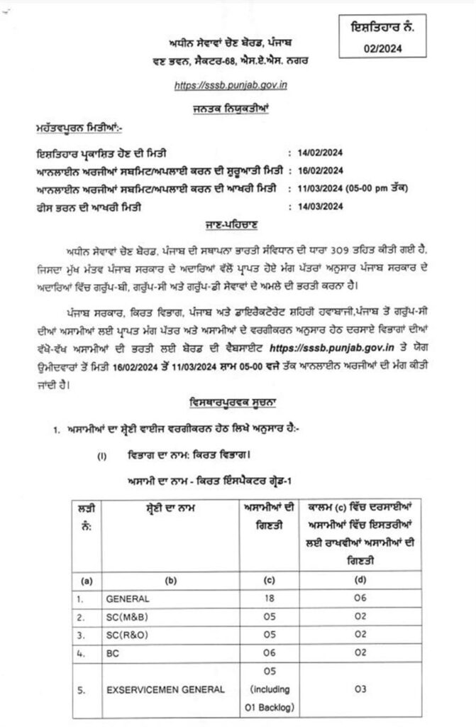 ਪੰਜਾਬ ਸਰਕਾਰ ਨੇ ਕਿਰਤ ਵਿਭਾਗ ਅਤੇ ਡਾਇਰੈਕਟੋਰੇਟ ਸ਼ਹਿਰੀ ਹਵਾਬਾਜੀ ਵਿਭਾਗ ‘ਚ ਵੱਖ-ਵੱਖ ਖਾਲੀ ਪੋਸਟਾਂ ‘ਤੇ ਅਸਾਮੀਆਂ ਕੱਢੀਆਂ ਹਨ। ਅਧੀਨ ਸੇਵਾਵਾਂ ਚੋਣ ਬੋਰਡ ਪੰਜਾਬ ਇਨ੍ਹਾਂ ਅਸਾਮੀਆਂ ਨੂੰ ਭਰੇਗਾ।ਇਨ੍ਹਾਂ ਅਸਾਮੀਆਂ ‘ਤੇ ਚਾਹਵਾਨ ਯੋਗ ਉਮੀਦਵਾਰ 11 ਮਾਰਚ 2024 ਤੱਕ ਆਨਲਾਈਨ ਅਪਲਾਈ ਕਰ ਸਕਦੇ ਹਨ।ਹੋਰ ਜਾਣਕਾਰੀ ਲਈ ਐਸਐਸਐਸ ਬੋਰਡ ਦੀ ਵੈਬਸਾਈਟ ਉਤੇ ਜਾਇਆ ਜਾ ਸਕਦਾ ਹੈ।