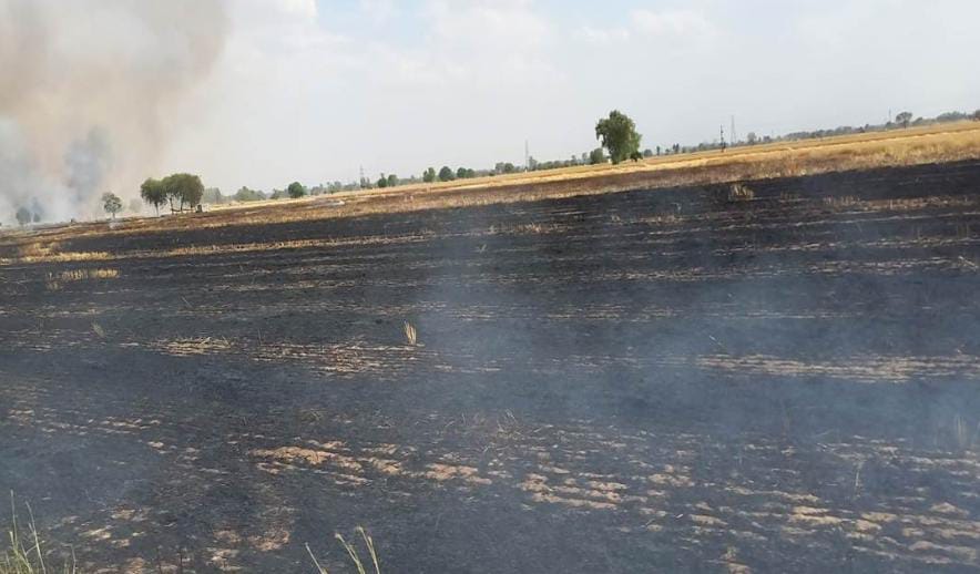 ਸ੍ਰੀ ਮੁਕਤਸਰ ਸਾਹਿਬ 22 ਅਪ੍ਰੈਲ,ਬੋਲੇ ਪੰਜਾਬ ਬਿਉਰੋ: ਪਿੰਡ ਹਰਾਜ ਤੇ ਖੋਖਰ ਵਿਖੇ ਕਣਕ ਦੀ ਪੱਕੀ ਫਸਲ ਨੂੰ ਅੱਗ ਲੱਗਣ ਕਾਰਨ ਕਰੀਬ 30 ਏਕੜ ਕਣਕ ਤੇ 16 ਏਕੜ ਨਾੜ ਸੜ੍ਹ ਕੇ ਸੁਆਹ ਹੋ ਗਿਆ। ਅੱਗ ਲੱਗਣ ਦਾ ਕਾਰਨ ਕਿਸੇ ਵਿਅਕਤੀ ਵੱਲੋਂ ਬੀੜੀ ਪੀ ਕੇ ਸੁੱਟੇ ਜਾਣ ਦਾ ਦੱਸਿਆ ਜਾ ਰਿਹਾ ਹੈ।