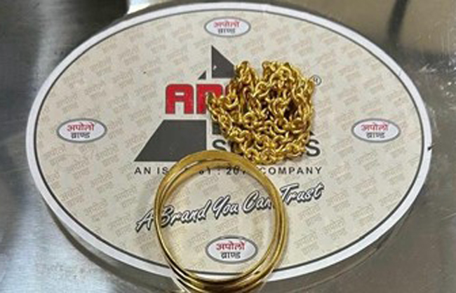 ਅੰਮ੍ਰਿਤਸਰ 03 ਜੂਨ ,ਬੋਲੇ ਪੰਜਾਬ ਬਿਓਰੋ: ਅੰਮ੍ਰਿਤਸਰ ਕੌਮਾਂਤਰੀ ਹਵਾਈ ਅੱਡੇ ‘ਤੇ ਕਸਟਮ ਵਿਭਾਗ ਨੇ ਸੋਨਾ ਬਰਾਮਦ ਕੀਤਾ। ਇਸ ਸੰਬੰਧੀ ਗੁਪਤ ਸੂਚਨਾ ਮਿਲਣ ‘ਤੇ ਕਸਟਮ ਏ.ਆਈ.ਯੂ. ਸਟਾਫ਼ ਨੇ ਕੁੱਲਾਲੰਪੁਰ ਤੋਂ ਆਈ ਏਅਰ ਏਸ਼ੀਆ ਦੀ ਉਡਾਣ ਰਾਹੀ ਪਹੁੰਚੇ ਇਕ ਵਿਅਕਤੀ ਦੀ ਤਲਾਸ਼ੀ ਦੌਰਾਨ ਉਸ ਕੋਲੋਂ 2 ਸੋਨੇ ਦੇ ਕੜੇ ਅਤੇ ਇਕ ਚੈਨ ਬਰਾਮਦ ਕੀਤੀ, ਜਿਨ੍ਹਾਂ ਦਾ ਕੁੱਲ ਵਜ਼ਨ 174 ਗ੍ਰਾਮ ਸੀ।