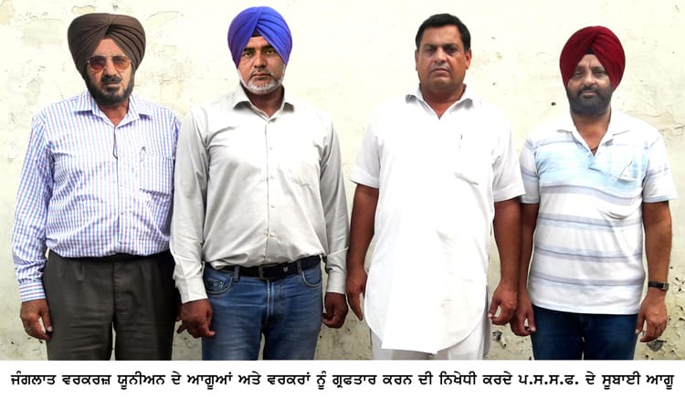 ਜੰਗਲਾਤ ਵਰਕਰਜ਼ ਯੂਨੀਅਨ ਦੇ ਆਗੂਆਂ ਅਤੇ ਵਰਕਰਾਂ ਨੂੰ ਨਜ਼ਰਬੰਦ ਕਰਨ ਦੀ ਨਿਖੇਧੀ