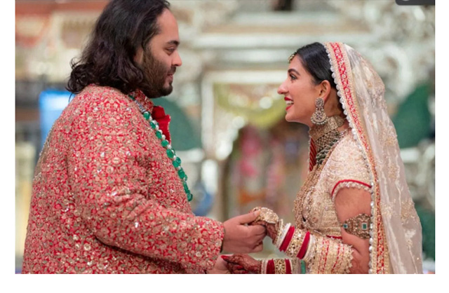 ਅਨੰਤ ਅੰਬਾਨੀ ਅਤੇ ਰਾਧਿਕਾ ਮਰਚੈਂਟ ਦਾ ਸ਼ਾਹੀ ਵਿਆਹ ਸ਼ੁੱਕਰਵਾਰ ਰਾਤ ਮੁੰਬਈ ਦੇ ਬੀਕੇਸੀ ਇਲਾਕੇ ਦੇ ਜੀਓ ਵਰਲਡ ਕਨਵੈਨਸ਼ਨ ਸੈਂਟਰ ਵਿੱਚ ਹੋਇਆ। ਇਸ ਸਮਾਗਮ ਵਿੱਚ ਬਾਲੀਵੁੱਡ ਅਦਾਕਾਰਾਂ, ਸਿਆਸੀ ਹਸਤੀਆਂ ਸਮੇਤ ਕਈ ਵਿਦੇਸ਼ੀ ਮਹਿਮਾਨ ਸ਼ਾਮਲ ਹੋਏ। ਸਮਾਗਮ ਸ਼ਾਮ ਪੰਜ ਵਜੇ ਸ਼ੁਰੂ ਹੋਇਆ। ਸਮਾਰੋਹ ਸ਼ੁਰੂ ਹੁੰਦੇ ਹੀ ਬਾਲੀਵੁੱਡ ਹਸਤੀਆਂ ਵਿਆਹ ਦੇ ਹਾਲ ‘ਚ ਪਹੁੰਚੀਆਂ ਅਤੇ ਪਾਪਰਾਜ਼ੀ ਦੇ ਸਾਹਮਣੇ ਪੋਜ਼ ਦਿੱਤੇ। ਉੱਥੇ ਹੀ ਇਸ ਸਮਾਰੋਹ ਦੀਆਂ ਕਈ ਅੰਦਰੂਨੀ ਵੀਡੀਓਜ਼ ਸੋਸ਼ਲ ਮੀਡੀਆ ‘ਤੇ ਵਾਇਰਲ ਹੋ ਰਹੀਆਂ ਹਨ।