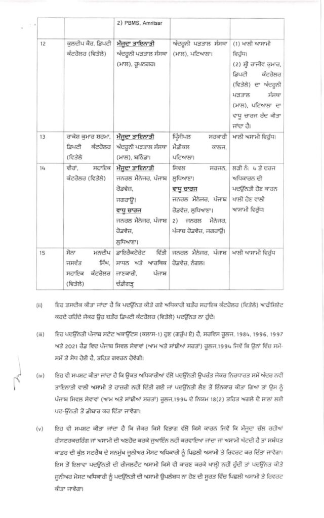 ਪੰਜਾਬ ਸਰਕਾਰ ਨੇ ਵਿੱਤ ਵਿਭਾਗ ਦੇ ਸੰਯੁਕਤ ਕੰਟਰੋਲਰਾਂ, ਡਿਪਟੀ ਕੰਟਰੋਲਰਾਂ ਤੇ ਸਹਾਇਕ ਕੰਟਰੋਲਰਾਂ ਨੂੰ ਦਿੱਤੀਆਂ ਤਰੱਕੀਆਂ ਚੰਡੀਗੜ੍ਹ ਪੰਜਾਬ ਜੁਲਾਈ 19, 2024ਜੁਲਾਈ 19, 2024BolePunjab.comLeave a Comment on ਪੰਜਾਬ ਸਰਕਾਰ ਨੇ ਵਿੱਤ ਵਿਭਾਗ ਦੇ ਸੰਯੁਕਤ ਕੰਟਰੋਲਰਾਂ, ਡਿਪਟੀ ਕੰਟਰੋਲਰਾਂ ਤੇ ਸਹਾਇਕ ਕੰਟਰੋਲਰਾਂ ਨੂੰ ਦਿੱਤੀਆਂ ਤਰੱਕੀਆਂ ਚੰਡੀਗੜ੍ਹ, 19 ਜੁਲਾਈ, ਬੋਲੇ ਪੰਜਾਬ ਬਿਊਰੋ : ਪੰਜਾਬ ਸਰਕਾਰ ਨੇ ਵਿੱਤ ਵਿਭਾਗ ਦੇ 3 ਸੰਯੁਕਤ ਕੰਟਰੋਲਰਾਂ ਨੂੰ AD ,15 ਸਹਾਇਕ ਕੰਟਰੋਲਰਾਂ ਨੂੰ DCFA,3 ਡਿਪਟੀ ਕੰਟਰੋਲਰਾਂ ਨੂੰ JCFA ਵਜੋਂ ਤਰੱਕੀਆਂ ਦਿੱਤੀਆਂ ਹਨ ਜਿਨ੍ਹਾਂ ਦਾ ਵੇਰਵਾ ਹੇਠ ਲਿਖੇ ਅਨੁਸਾਰ ਹੈ। Related Postਰਾਜਾ ਵੜਿੰਗ ਤੇ ਚਰਨਜੀਤ ਚੰਨੀ ਨੂੰ ਸਟਰਾਂਗ ਰੂਮਾਂ ਨਾਲ ਛੇੜਛਾੜ ਦਾ ਖ਼ਦਸ਼ਾ, ਕਾਂਗਰਸੀ ਵਰਕਰਾਂ ਨੂੰ ਸੁਚੇਤ ਕੀਤਾਦਸੰਬਰ 15, 2025ਪੰਜਾਬ ‘ਚ ਬਲਾਕ ਸੰਮਤੀ ਤੇ ਜ਼ਿਲ੍ਹਾ ਪ੍ਰੀਸ਼ਦ ਚੋਣਾਂ ਵਿੱਚ 48% ਵੋਟਿੰਗ ਹੋਈਦਸੰਬਰ 15, 2025ਅੱਜ ਪੰਜਾਬ ਤੇ ਚੰਡੀਗੜ੍ਹ ‘ਚ ਸੰਘਣੀ ਧੁੰਦ ਪੈਣ ਦੀ ਸੰਭਾਵਨਾ, Yellow Alert ਜਾਰੀ ਦਸੰਬਰ 15, 2025Latest Newsਰਾਜਾ ਵੜਿੰਗ ਤੇ ਚਰਨਜੀਤ ਚੰਨੀ ਨੂੰ ਸਟਰਾਂਗ ਰੂਮਾਂ ਨਾਲ ਛੇੜਛਾੜ ਦਾ ਖ਼ਦਸ਼ਾ, ਕਾਂਗਰਸੀ ਵਰਕਰਾਂ ਨੂੰ ਸੁਚੇਤ ਕੀਤਾਪੰਜਾਬ ‘ਚ ਬਲਾਕ ਸੰਮਤੀ ਤੇ ਜ਼ਿਲ੍ਹਾ ਪ੍ਰੀਸ਼ਦ ਚੋਣਾਂ ਵਿੱਚ 48% ਵੋਟਿੰਗ ਹੋਈਅੱਜ ਪੰਜਾਬ ਤੇ ਚੰਡੀਗੜ੍ਹ ‘ਚ ਸੰਘਣੀ ਧੁੰਦ ਪੈਣ ਦੀ ਸੰਭਾਵਨਾ, Yellow Alert ਜਾਰੀ ਸਟਾਰ ਫੁੱਟਬਾਲਰ ਲਿਓਨਲ ਮੈਸੀ ਅੱਜ ਦਿੱਲੀ ‘ਚ, ਸੁਰੱਖਿਆ ਸਖ਼ਤ, ਟਰੈਫਿਕ ਅਡਵਾਈਜਰੀ ਜਾਰੀ ਅਚਾਨਕ ਮੌਤਾਂ ਦਾ ਕਾਰਨ ਕਰੋਨਾ ਟੀਕਾਕਰਣ ਨਹੀਂ, ICMR ਦੀ ਰਿਪੋਰਟ ‘ਚ ਖੁਲਾਸਾ PreviousNextLatest Newsਰਾਜਾ ਵੜਿੰਗ ਤੇ ਚਰਨਜੀਤ ਚੰਨੀ ਨੂੰ ਸਟਰਾਂਗ ਰੂਮਾਂ ਨਾਲ ਛੇੜਛਾੜ ਦਾ ਖ਼ਦਸ਼ਾ, ਕਾਂਗਰਸੀ ਵਰਕਰਾਂ ਨੂੰ ਸੁਚੇਤ ਕੀਤਾਪੰਜਾਬ ‘ਚ ਬਲਾਕ ਸੰਮਤੀ ਤੇ ਜ਼ਿਲ੍ਹਾ ਪ੍ਰੀਸ਼ਦ ਚੋਣਾਂ ਵਿੱਚ 48% ਵੋਟਿੰਗ ਹੋਈਅੱਜ ਪੰਜਾਬ ਤੇ ਚੰਡੀਗੜ੍ਹ ‘ਚ ਸੰਘਣੀ ਧੁੰਦ ਪੈਣ ਦੀ ਸੰਭਾਵਨਾ, Yellow Alert ਜਾਰੀ ਸਟਾਰ ਫੁੱਟਬਾਲਰ ਲਿਓਨਲ ਮੈਸੀ ਅੱਜ ਦਿੱਲੀ ‘ਚ, ਸੁਰੱਖਿਆ ਸਖ਼ਤ, ਟਰੈਫਿਕ ਅਡਵਾਈਜਰੀ ਜਾਰੀ ਅਚਾਨਕ ਮੌਤਾਂ ਦਾ ਕਾਰਨ ਕਰੋਨਾ ਟੀਕਾਕਰਣ ਨਹੀਂ, ICMR ਦੀ ਰਿਪੋਰਟ ‘ਚ ਖੁਲਾਸਾ ਸੰਸਦ ਦੇ ਸਰਦ ਰੁੱਤ ਸੈਸ਼ਨ ਦਾ ਅੱਜ 11ਵਾਂ ਦਿਨ, ਸਰਕਾਰ ਪਰਮਾਣੂ ਊਰਜਾ ਸੋਧ ਬਿੱਲ ਪੇਸ਼ ਕਰੇਗੀਪਤਨੀ ‘ਤੇ ਸ਼ੱਕ ਕਰਦਿਆਂ ਵਿਅਕਤੀ ਨੇ ਮਾਸੂਮ ਨੂੰ ਰੇਲਵੇ ਪਟੜੀਆਂ ‘ਤੇ ਸੁੱਟਿਆ, ਲੋਕੋ ਪਾਇਲਟ ਨੇ ਬਚਾਈ ਜਾਨ ਚੋਣ ਕਮਿਸ਼ਨ ਵੱਲੋਂ ਪੰਜਾਬ ‘ਚ ਪੰਜ ਜ਼ਿਲ੍ਹਿਆਂ ਦੇ 16 ਬੂਥਾਂ ‘ਤੇ ਦੁਬਾਰਾ ਪੋਲਿੰਗ ਦੇ ਹੁਕਮਅੰਮ੍ਰਿਤ ਵੇਲੇ ਦਾ ਹੁਕਮਨਾਮਾ ਸ੍ਰੀ ਦਰਬਾਰ ਸਾਹਿਬ, ਸ੍ਰੀ ਅੰਮ੍ਰਿਤਸਰ, ਅੰਗ 573, 15-12-2025ਵੋਟਿੰਗ ਦੌਰਾਨ ਸ਼੍ਰੋਮਣੀ ਅਕਾਲੀ ਦਲ ਉਮੀਦਵਾਰ ਦੇ ਪਤੀ ਦੀ ਮੌਤ ਅੰਮ੍ਰਿਤਸਰ ਵਿੱਚ ਡਰੱਗ ਮਾਡਿਊਲ ਦਾ ਪਰਦਾਫਾਸ਼; 4 ਕਿਲੋ ਹੈਰੋਇਨ, 3.90 ਲੱਖ ਰੁਪਏ ਦੀ ਡਰੱਗ ਮਨੀ ਤੇ ਇੱਕ ਪਿਸਤੌਲ ਸਮੇਤ ਚਾਰ ਕਾਬੂਚੋਣ ਡਿਉਟੀ ਤੇ ਜਾਣ ਸਮੇਂ ਐਕਸੀਡੈਂਟ ਕਾਰਨ ਅਧਿਆਪਕ ਜੋੜੇ ਦੀ ਮੌਤ ਦਾ ਸਮੁੱਚੇ ਅਧਿਆਪਕ ਵਰਗ ਨੇ ਵਿੱਚ ਅਫਸੋਸ ਪ੍ਰਗਟਾਇਆ (ਲੈਕਚਰਾਰਜ਼ ਯੂਨੀਅਨ ਪੰਜਾਬ)PreviousNext