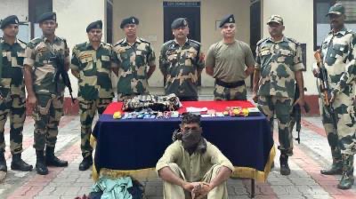 ਬੀਐਸਐਫ ਦੇ ਜਵਾਨਾਂ ਕਾਰਵਾਈ ਕਰਦਿਆਂ ਘੁਸਪੈਠੀਏ ਉਸਨੂੰ ਸਰਹੱਦ ਦੀ ਵਾੜ ਦੇ ਅੱਗੇ ਸਵੇਰੇ ਦਬੋਚ ਲਿਆ।