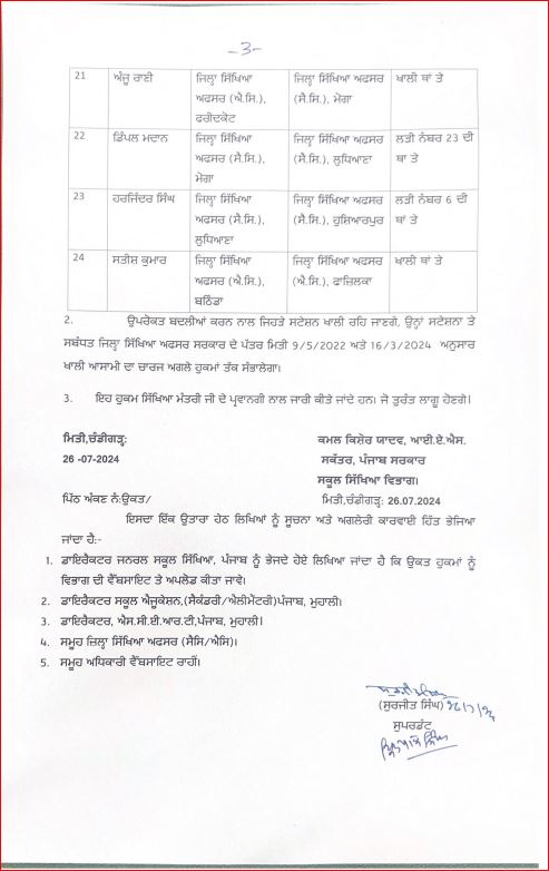 ਪੰਜਾਬ ਸਰਕਾਰ ਨੇ ਸਹਾਇਕ ਡਾਇਰੈਕਟਰ ਤੇ ਜ਼ਿਲ੍ਹਾ ਸਿੱਖਿਆ ਅਫ਼ਸਰਾਂ ਦੀਆਂ ਬਦਲੀਆਂ ਕੀਤੀਆਂ ਚੰਡੀਗੜ੍ਹ ਪੰਜਾਬ ਜੁਲਾਈ 26, 2024ਜੁਲਾਈ 26, 2024BolePunjab.comLeave a Comment on ਪੰਜਾਬ ਸਰਕਾਰ ਨੇ ਸਹਾਇਕ ਡਾਇਰੈਕਟਰ ਤੇ ਜ਼ਿਲ੍ਹਾ ਸਿੱਖਿਆ ਅਫ਼ਸਰਾਂ ਦੀਆਂ ਬਦਲੀਆਂ ਕੀਤੀਆਂ ਚੰਡੀਗੜ੍ਹ 26 ਜੁਲਾਈ ,ਬੋਲੇ ਪੰਜਾਬ ਬਿਊਰੋ : ਪੰਜਾਬ ਸਰਕਾਰ ਨੇ ਸਹਾਇਕ ਡਾਇਰੈਕਟਰ ਤੇ ਜ਼ਿਲ੍ਹਾ ਸਿੱਖਿਆ ਅਫ਼ਸਰਾਂ ਦੀਆਂ ਬਦਲੀਆਂ ਕੀਤੀਆਂ ਹਨ। Related Postਪੰਜਾਬ ਨੇ ਸਕੂਲ ਅਧਿਆਪਕਾਂ ਨੂੰ ਕਰੀਅਰ ਮੈਂਟਰ ਵਜੋਂ ਸਿਖਲਾਈ ਦੇਣ ਲਈ ਆਈ.ਆਈ.ਟੀ. ਮਦਰਾਸ ਨਾਲ ਹੱਥ ਮਿਲਾਇਆਦਸੰਬਰ 5, 2025ਪੰਜਾਬ ਵਿੱਚ ਜ਼ਿਲ੍ਹਾ ਪ੍ਰੀਸ਼ਦ ਚੋਣਾਂ ਨੂੰ ਲੈ ਕੇ ਕਾਂਗਰਸ ਨੇ ਹਾਈ ਕੋਰਟ ਦਾ ਦਰਵਾਜ਼ਾ ਖੜਕਾਇਆਦਸੰਬਰ 5, 2025ਚੰਡੀਗੜ੍ਹ ਪੁਲਿਸ ਦੇ ਸ਼ਰਾਬੀ ASI ਨੇ 10 ਵਾਹਨਾਂ ਨੂੰ ਮਾਰੀ ਟੱਕਰਦਸੰਬਰ 5, 2025Latest Newsਪੰਜਾਬ ਨੇ ਸਕੂਲ ਅਧਿਆਪਕਾਂ ਨੂੰ ਕਰੀਅਰ ਮੈਂਟਰ ਵਜੋਂ ਸਿਖਲਾਈ ਦੇਣ ਲਈ ਆਈ.ਆਈ.ਟੀ. ਮਦਰਾਸ ਨਾਲ ਹੱਥ ਮਿਲਾਇਆਸੰਸਦ ਮੈਂਬਰ ਸ਼੍ਰੀ ਮਨੀਸ਼ ਤਿਵਾੜੀ ਨੇ ਲੋਕ ਸਭਾ ਵਿੱਚ ਹਰਿਆਣਾ, ਪੰਜਾਬ ਅਤੇ ਹਿਮਾਚਲ ਪ੍ਰਦੇਸ਼ ਦੇ ਡੈਮਾਂ ਦੀ ਡੀ-ਸਿਲਟਿੰਗ ਅਤੇ ਘਟਦੀ ਸਟੋਰੇਜ ਸਮਰੱਥਾ ਦਾ ਮੁੱਦਾ ਉਠਾਇਆਮੁੱਖ ਪ੍ਰਸ਼ਾਸ਼ਕ ਪੁੱਡਾ ਮੈਡਮ ਨੀਰੂ ਕਤਿਆਲ ਗੁਪਤਾ ਦੇ ਦਫਤਰ ਪੁੱਡਾ ਭਵਨ ਮੋਹਾਲੀ ਵਿਖੇ ਲੜੀਵਾਰ ਭੁੱਖ ਹੜਤਾਲਪੰਜਾਬ ਵਿੱਚ ਜ਼ਿਲ੍ਹਾ ਪ੍ਰੀਸ਼ਦ ਚੋਣਾਂ ਨੂੰ ਲੈ ਕੇ ਕਾਂਗਰਸ ਨੇ ਹਾਈ ਕੋਰਟ ਦਾ ਦਰਵਾਜ਼ਾ ਖੜਕਾਇਆਬਿਜਲੀ ਸੋਧ ਬਿਲ ਤੇ ਨਵੇਂ ਬੀਜ ਬਿੱਲ ਖਿਲਾਫ ਕਿਰਤੀ ਕਿਸਾਨ ਮੋਰਚਾ ਦੀ ਹੋਈ ਮੀਟਿੰਗPreviousNextLatest Newsਪੰਜਾਬ ਨੇ ਸਕੂਲ ਅਧਿਆਪਕਾਂ ਨੂੰ ਕਰੀਅਰ ਮੈਂਟਰ ਵਜੋਂ ਸਿਖਲਾਈ ਦੇਣ ਲਈ ਆਈ.ਆਈ.ਟੀ. ਮਦਰਾਸ ਨਾਲ ਹੱਥ ਮਿਲਾਇਆਸੰਸਦ ਮੈਂਬਰ ਸ਼੍ਰੀ ਮਨੀਸ਼ ਤਿਵਾੜੀ ਨੇ ਲੋਕ ਸਭਾ ਵਿੱਚ ਹਰਿਆਣਾ, ਪੰਜਾਬ ਅਤੇ ਹਿਮਾਚਲ ਪ੍ਰਦੇਸ਼ ਦੇ ਡੈਮਾਂ ਦੀ ਡੀ-ਸਿਲਟਿੰਗ ਅਤੇ ਘਟਦੀ ਸਟੋਰੇਜ ਸਮਰੱਥਾ ਦਾ ਮੁੱਦਾ ਉਠਾਇਆਮੁੱਖ ਪ੍ਰਸ਼ਾਸ਼ਕ ਪੁੱਡਾ ਮੈਡਮ ਨੀਰੂ ਕਤਿਆਲ ਗੁਪਤਾ ਦੇ ਦਫਤਰ ਪੁੱਡਾ ਭਵਨ ਮੋਹਾਲੀ ਵਿਖੇ ਲੜੀਵਾਰ ਭੁੱਖ ਹੜਤਾਲਪੰਜਾਬ ਵਿੱਚ ਜ਼ਿਲ੍ਹਾ ਪ੍ਰੀਸ਼ਦ ਚੋਣਾਂ ਨੂੰ ਲੈ ਕੇ ਕਾਂਗਰਸ ਨੇ ਹਾਈ ਕੋਰਟ ਦਾ ਦਰਵਾਜ਼ਾ ਖੜਕਾਇਆਬਿਜਲੀ ਸੋਧ ਬਿਲ ਤੇ ਨਵੇਂ ਬੀਜ ਬਿੱਲ ਖਿਲਾਫ ਕਿਰਤੀ ਕਿਸਾਨ ਮੋਰਚਾ ਦੀ ਹੋਈ ਮੀਟਿੰਗਪਾਈਟੈਕਸ ਵਿਖੇ ਅਪਾਹਜਾਂ ਅਤੇ ਬਜ਼ੁਰਗਾਂ ਲਈ ਵ੍ਹੀਲਚੇਅਰ ਦੀ ਸਹੂਲਤਚੰਡੀਗੜ੍ਹ ਪੁਲਿਸ ਦੇ ਸ਼ਰਾਬੀ ASI ਨੇ 10 ਵਾਹਨਾਂ ਨੂੰ ਮਾਰੀ ਟੱਕਰਪੰਜਾਬ ਵਿੱਚ ਰੇਲਵੇ ਪਟੜੀਆਂ ‘ਤੇ ਕਿਸਾਨਾਂ ਅਤੇ ਪੁਲਿਸ ਵਿਚਕਾਰ ਝੜਪਾਂਦੇਸ਼ ਭਗਤ ਯੂਨੀਵਰਸਿਟੀ ਨੇ ਕਰਵਾਈ ਅੰਤਰਰਾਸ਼ਟਰੀ ਕਾਨਫਰੰਸ ਅਤੇ ਅਗਾਂਹਵਧੂ ਕਿਸਾਨ ਮਿਲਣੀਆਮ ਆਦਮੀ ਪਾਰਟੀ ਵੱਲੋਂ ਨਾਮਜ਼ਦਗੀ ਪੱਤਰ ਦਾਖਲ ਕਰਨ ਦੌਰਾਨ ਸ਼ਰੇਆਮ ਗੁੰਡਾਗਰਦੀ ਦੀਆਂ ਘਟਨਾਵਾਂ ਅਤੇ ਚੋਣ ਪ੍ਰਕਿਰਿਆ ਦੌਰਾਨ ਸਰਕਾਰੀ ਮਸ਼ੀਨਰੀ ਦੀ ਕਥਿਤ ਦੁਰਵਰਤੋਂ ਲੋਕਤੰਤਰ ਲਈ ਖ਼ਤਰਨਾਕ – ਕੈਂਥ ਪੁਲਿਸ ਮੁਲਾਜ਼ਮਾਂ ‘ਤੇ ਵਰਦੀ ‘ਚ ਰੀਲਾਂ ਬਣਾਉਣ ‘ਤੇ ਲੱਗੀ ਪਾਬੰਦੀਜਲੰਧਰ ‘ਚ ਰੋਡਵੇਜ਼ ਬੱਸ ਨੇ ਸਕੂਟਰ ਨੂੰ ਟੱਕਰ ਮਾਰੀ, ਪੁੱਤ ਦੀ ਮੌਤ ਪਿਤਾ ਗੰਭੀਰ ਜ਼ਖ਼ਮੀ PreviousNext