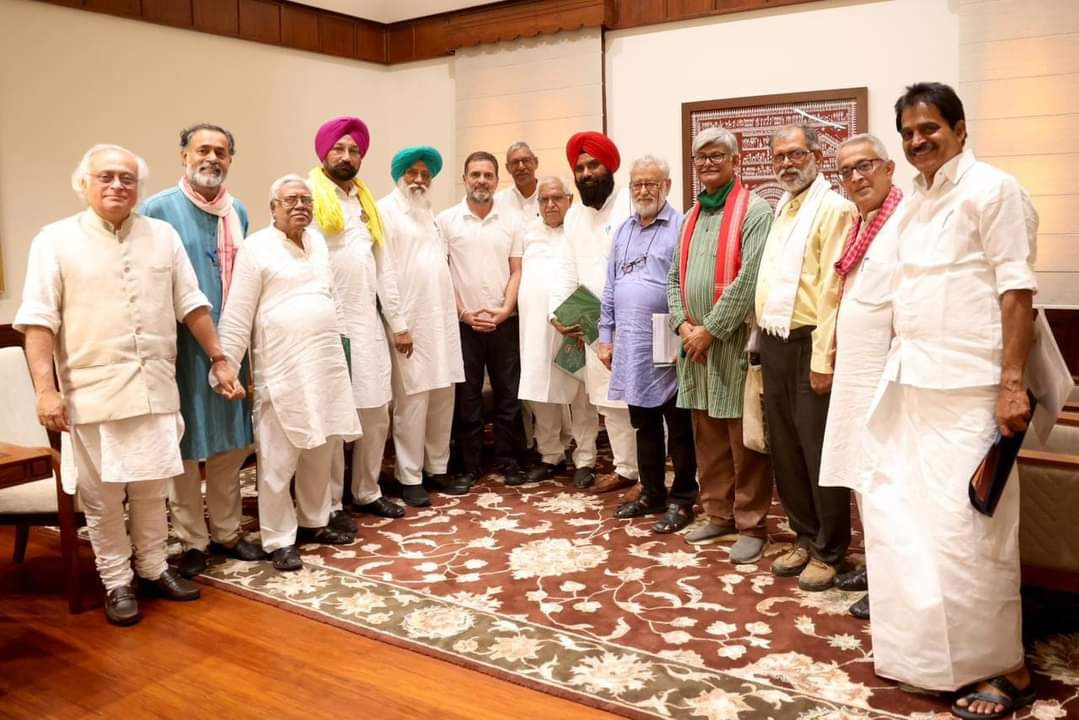 ਐਸ.ਕੇ.ਐਮ. ਦਾ ਇਕ ਵਫ਼ਦ ਜਿਸ ਵਿਚ ਸ੍ਰੀ ਹਨਨ ਮੌਲਾ, ਸ੍ਰੀ ਬਲਬੀਰ ਸਿੰਘ ਰਾਜੇਵਾਲ, ਡਾ. ਦਰਸ਼ਨ ਪਾਲ, ਸ੍ਰੀ ਰਜਨ ਕਸ਼ੀਰਸਾਗਰ, ਸ੍ਰੀ ਰਮਿੰਦਰ ਸਿੰਘ, ਸ੍ਰੀ ਸਤਿਆਵਾਨ, ਡਾ. ਸੁਨੀਲਮ, ਸ੍ਰੀ ਆਵਿਕ ਸ਼ਾਮ, ਸ੍ਰੀ ਤੇਜਿੰਦਰ ਸਿੰਘ ਵਿਰਕ ਅਤੇ ਸ੍ਰੀ ਪ੍ਰੇਮ ਸਿੰਘ ਗਹਿਲਾਵਤ ਸ਼ਾਮਲ ਸਨ, ਲੋਕ ਸਭਾ ਵਿਚ ਲਗਦੇ ਦਫ਼ਤਰ ਵਿਖੇ ਵਿਰੋਧੀ ਧਿਰ ਦੇ ਨੇਤਾ ਸ੍ਰੀ ਰਾਹੁਲ ਗਾਂਧੀ ਨੂੰ ਮਿਲਿਆ।