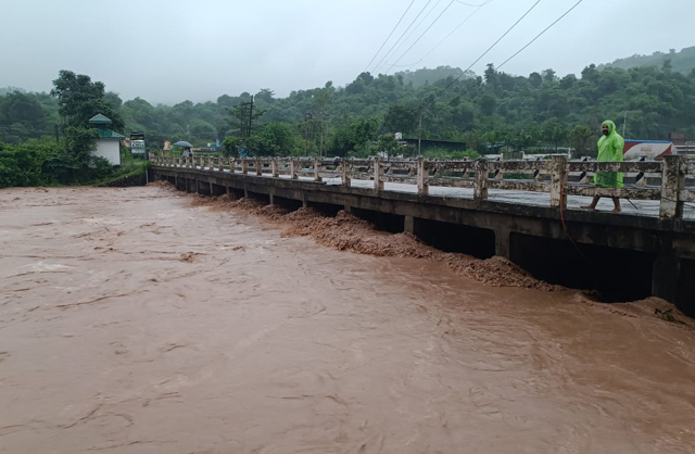 ਦੂਜੇ ਪਾਸੇ ਸਿਰਮੌਰ ਜ਼ਿਲ੍ਹੇ ‘ਚ ਬੀਤੀ ਰਾਤ ਤੋਂ ਹੋ ਰਹੀ ਤੇਜ਼ ਬਾਰਿਸ਼ ਕਾਰਨ ਗਿਰੀ, ਯਮੁਨਾ ਅਤੇ ਮਾਰਕੰਡਾ ਨਦੀਆਂ ਉਫ਼ਾਨ ’ਤੇ ਵਹਿ ਰਹੀਆਂ ਹਨ ਅਤੇ ਪ੍ਰਸ਼ਾਸਨ ਨੇ ਲੋਕਾਂ ਨੂੰ ਨਦੀ ਨਾਲਿਆਂ ਤੋਂ ਦੂਰ ਰਹਿਣ ਦੀ ਸਲਾਹ ਦਿੱਤੀ ਹੈ। ਸਿਰਮੌਰ ਜ਼ਿਲ੍ਹੇ ਦੇ ਹੈੱਡਕੁਆਰਟਰ ਨਾਹਨ ਦੀ ਬਨਕਲਾਂ ਪੰਚਾਇਤ ਵਿੱਚ ਨਰਕੰਡਾ ਨਦੀ ਤਬਾਹੀ ਮਚਾ ਰਹੀ ਹੈ। ਐਤਵਾਰ ਸਵੇਰੇ ਹੜ੍ਹ ਨੇ ਬਨਕਲਾਂ ‘ਚ ਨਦੀ ਦੇ ਕੰਢੇ ‘ਤੇ ਬਣੇ ਮੰਦਰ ਨੂੰ ਵਹਾ ਦਿੱਤਾ। ਪਲਕ ਝਪਕਦਿਆਂ ਹੀ ਮੰਦਰ ਪਾਣੀ ਵਿੱਚ ਡੁੱਬ ਗਿਆ। ਨਾਹਨ ਖੇਤਰ ਦੀ ਸਲਾਣੀ ਕਟੌਲਾ ਪੰਚਾਇਤ ਵਿੱਚ ਨਦੀ ਦਾ ਪਾਣੀ ਸਲਾਣੀ ਪੁਲ ਤੱਕ ਪਹੁੰਚ ਗਿਆ ਹੈ ਅਤੇ ਪੁਲ ਖਤਰੇ ਵਿੱਚ ਹੈ।