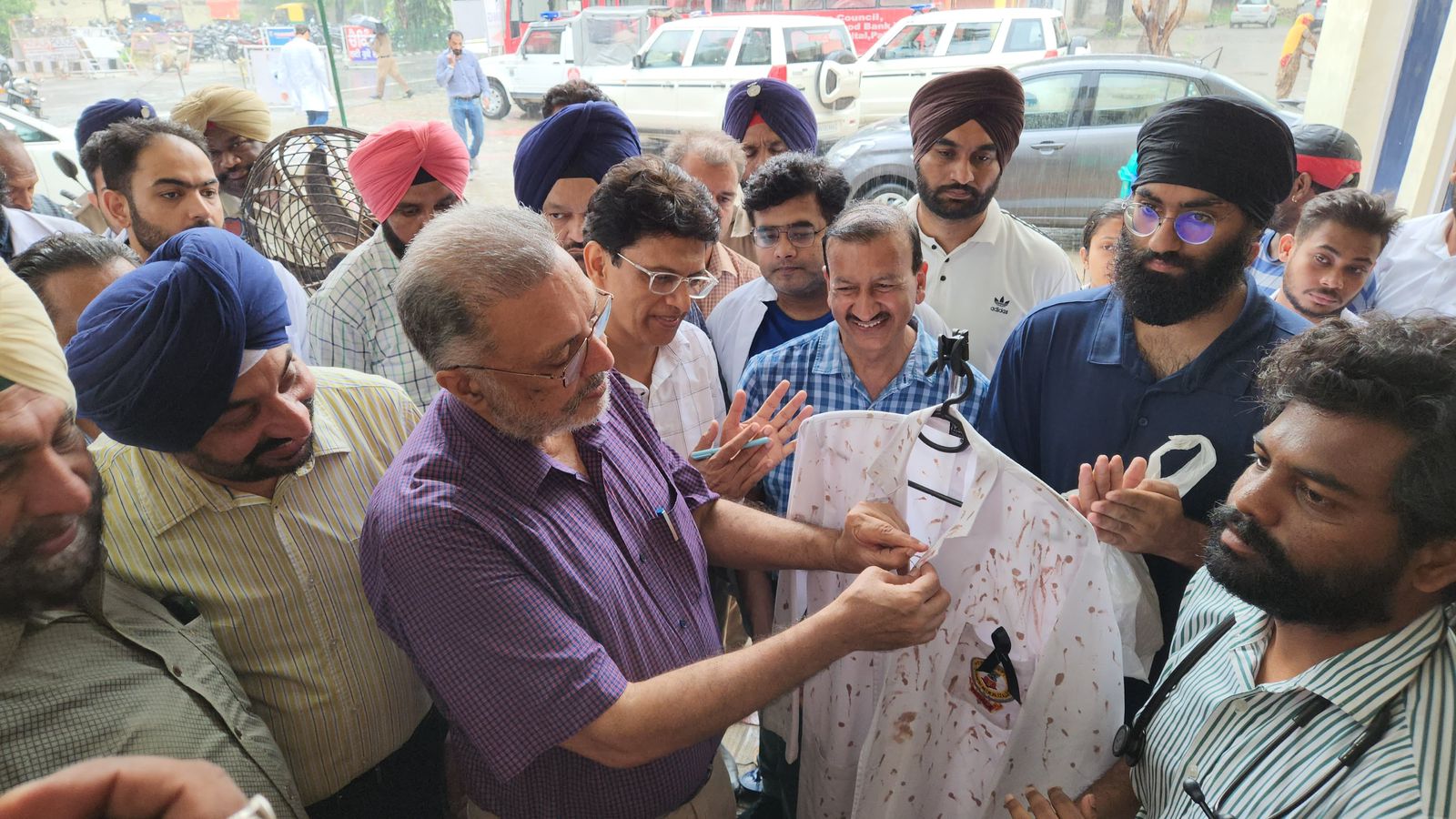 ਕੋਲਕਾਤਾ ਮੈਡੀਕਲ ਕਾਲਜ ਦੀ ਪੋਸਟ ਗ੍ਰੈਜੂਏਟ ਟ੍ਰੇਨੀ ਮਹਿਲਾ ਡਾਕਟਰ ਨਾਲ ਵਾਪਰੀ ਦਰਿੰਦਗੀ ਭਰਪੂਰ ਦੁਰਘਟਨਾ ਦੇ ਵਿਰੋਧ ਵਿੱਚ ਡਾਕਟਰਾਂ ਦੀ ਦੇਸ਼ ਵਿਆਪੀ ਹੜਤਾਲ ਦੇ ਹੱਕ ਵਿੱਚ ਸਰਕਾਰੀ ਮੈਡੀਕਲ ਕਾਲਜ ਦੇ ਡਾਕਟਰਾਂ ਵੱਲੋਂ ਇੱਥੇ ਰਜਿੰਦਰਾ ਹਸਪਤਾਲ ਵਿਖੇ ਦਿੱਤੇ ਜਾ ਰਹੇ ਰੋਸ ਧਰਨੇ ਵਿੱਚ ਪੁੱਜੇ ਡਾ. ਬਲਬੀਰ ਸਿੰਘ ਨੇ ਪੰਜਾਬ ਦੇ ਡਾਕਟਰਾਂ ਦੀ ਸੁਰੱਖਿਆ ਦਾ ਪੂਰਾ ਭਰੋਸਾ ਦਿੱਤਾ। ਇਸ ਮੌਕੇ ਸਿਹਤ ਮੰਤਰੀ ਨੇ ਦਰਿੰਦਗੀ ਦੀ ਸ਼ਿਕਾਰ ਡਾਕਟਰ ਨਾਲ ਸੰਵੇਦਨਾ ਪ੍ਰਗਟ ਕਰਦਿਆਂ ਆਪਣੀ ਉਂਗਲ ਵਿੱਚੋਂ ਖ਼ੂਨ ਕੱਢ ਕੇ ਐਪਰਨ ‘ਤੇ ਵੀ ਲਗਾਇਆ।
