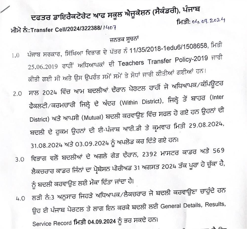 ਅਧਿਆਪਕਾਂ ਤੋਂ ਬਦਲੀਆਂ ਲਈ ਮੰਗੀਆਂ ਅਰਜ਼ੀਆਂ ਐਜੂਕੇਸ਼ਨ ਚੰਡੀਗੜ੍ਹ ਪੰਜਾਬ ਸਤੰਬਰ 4, 2024ਸਤੰਬਰ 4, 2024BolePunjab.comLeave a Comment on ਅਧਿਆਪਕਾਂ ਤੋਂ ਬਦਲੀਆਂ ਲਈ ਮੰਗੀਆਂ ਅਰਜ਼ੀਆਂ ਅਧਿਆਪਕਾਂ ਤੋਂ ਬਦਲੀਆਂ ਲਈ ਮੰਗੀਆਂ ਅਰਜ਼ੀਆਂ ਚੰਡੀਗੜ੍ਹ, 4 ਸਤੰਬਰ, ਬੋਲੇ ਪੰਜਾਬ ਬਿਊਰੋ: ਮਾਸਟਰ ਕਾਡਰ ਅਤੇ ਲੈਕਚਰਾਰ ਕਾਡਰ ਤੋਂ ਬਦਲੀਆਂ ਲਈ ਅਰਜ਼ੀਆਂ ਮੰਗੀਆਂ ਗਈਆਂ ਹਨ। Related Postਪੰਜਾਬ ਸਕੂਲ ਸਿੱਖਿਆ ਬੋਰਡ ਦੇ ਭਿਆਨਕ ਵਿੱਤੀ ਸੰਕਟ ਸਬੰਧੀ ਜਥੇਬੰਦੀ ਵੱਲੋਂ ਸਰਕਾਰ ਨੂੰ ਤੁਰੰਤ ਧਿਆਨ ਦੇਣ ਲਈ ਅਪੀਲਨਵੰਬਰ 24, 2025ਸੀਜੀਸੀ ਯੂਨੀਵਰਸਿਟੀ, ਮੋਹਾਲੀ ਨੇ ਵੈਂਚਰਵਾਲਟ ਸੀਜ਼ਨ 2 ਰਾਹੀਂ ਨਵੀਂ ਸੋਚ ਨੂੰ ਦਿੱਤੀ ਉਡਾਨਅਕਤੂਬਰ 29, 2025ਪੰਜਾਬ ਸਰਕਾਰ 71 ਅਧਿਆਪਕਾਂ ਦਾ ਵੱਕਾਰੀ ਰਾਜ ਅਧਿਆਪਕ ਪੁਰਸਕਾਰ ਨਾਲ ਕਰੇਗੀ ਸਨਮਾਨ: ਹਰਜੋਤ ਬੈਂਸਅਕਤੂਬਰ 4, 2025Latest Newsਪੰਜਾਬ ਨੇ ਸਕੂਲ ਅਧਿਆਪਕਾਂ ਨੂੰ ਕਰੀਅਰ ਮੈਂਟਰ ਵਜੋਂ ਸਿਖਲਾਈ ਦੇਣ ਲਈ ਆਈ.ਆਈ.ਟੀ. ਮਦਰਾਸ ਨਾਲ ਹੱਥ ਮਿਲਾਇਆਸੰਸਦ ਮੈਂਬਰ ਸ਼੍ਰੀ ਮਨੀਸ਼ ਤਿਵਾੜੀ ਨੇ ਲੋਕ ਸਭਾ ਵਿੱਚ ਹਰਿਆਣਾ, ਪੰਜਾਬ ਅਤੇ ਹਿਮਾਚਲ ਪ੍ਰਦੇਸ਼ ਦੇ ਡੈਮਾਂ ਦੀ ਡੀ-ਸਿਲਟਿੰਗ ਅਤੇ ਘਟਦੀ ਸਟੋਰੇਜ ਸਮਰੱਥਾ ਦਾ ਮੁੱਦਾ ਉਠਾਇਆਮੁੱਖ ਪ੍ਰਸ਼ਾਸ਼ਕ ਪੁੱਡਾ ਮੈਡਮ ਨੀਰੂ ਕਤਿਆਲ ਗੁਪਤਾ ਦੇ ਦਫਤਰ ਪੁੱਡਾ ਭਵਨ ਮੋਹਾਲੀ ਵਿਖੇ ਲੜੀਵਾਰ ਭੁੱਖ ਹੜਤਾਲਪੰਜਾਬ ਵਿੱਚ ਜ਼ਿਲ੍ਹਾ ਪ੍ਰੀਸ਼ਦ ਚੋਣਾਂ ਨੂੰ ਲੈ ਕੇ ਕਾਂਗਰਸ ਨੇ ਹਾਈ ਕੋਰਟ ਦਾ ਦਰਵਾਜ਼ਾ ਖੜਕਾਇਆਬਿਜਲੀ ਸੋਧ ਬਿਲ ਤੇ ਨਵੇਂ ਬੀਜ ਬਿੱਲ ਖਿਲਾਫ ਕਿਰਤੀ ਕਿਸਾਨ ਮੋਰਚਾ ਦੀ ਹੋਈ ਮੀਟਿੰਗPreviousNextLatest Newsਪੰਜਾਬ ਨੇ ਸਕੂਲ ਅਧਿਆਪਕਾਂ ਨੂੰ ਕਰੀਅਰ ਮੈਂਟਰ ਵਜੋਂ ਸਿਖਲਾਈ ਦੇਣ ਲਈ ਆਈ.ਆਈ.ਟੀ. ਮਦਰਾਸ ਨਾਲ ਹੱਥ ਮਿਲਾਇਆਸੰਸਦ ਮੈਂਬਰ ਸ਼੍ਰੀ ਮਨੀਸ਼ ਤਿਵਾੜੀ ਨੇ ਲੋਕ ਸਭਾ ਵਿੱਚ ਹਰਿਆਣਾ, ਪੰਜਾਬ ਅਤੇ ਹਿਮਾਚਲ ਪ੍ਰਦੇਸ਼ ਦੇ ਡੈਮਾਂ ਦੀ ਡੀ-ਸਿਲਟਿੰਗ ਅਤੇ ਘਟਦੀ ਸਟੋਰੇਜ ਸਮਰੱਥਾ ਦਾ ਮੁੱਦਾ ਉਠਾਇਆਮੁੱਖ ਪ੍ਰਸ਼ਾਸ਼ਕ ਪੁੱਡਾ ਮੈਡਮ ਨੀਰੂ ਕਤਿਆਲ ਗੁਪਤਾ ਦੇ ਦਫਤਰ ਪੁੱਡਾ ਭਵਨ ਮੋਹਾਲੀ ਵਿਖੇ ਲੜੀਵਾਰ ਭੁੱਖ ਹੜਤਾਲਪੰਜਾਬ ਵਿੱਚ ਜ਼ਿਲ੍ਹਾ ਪ੍ਰੀਸ਼ਦ ਚੋਣਾਂ ਨੂੰ ਲੈ ਕੇ ਕਾਂਗਰਸ ਨੇ ਹਾਈ ਕੋਰਟ ਦਾ ਦਰਵਾਜ਼ਾ ਖੜਕਾਇਆਬਿਜਲੀ ਸੋਧ ਬਿਲ ਤੇ ਨਵੇਂ ਬੀਜ ਬਿੱਲ ਖਿਲਾਫ ਕਿਰਤੀ ਕਿਸਾਨ ਮੋਰਚਾ ਦੀ ਹੋਈ ਮੀਟਿੰਗਪਾਈਟੈਕਸ ਵਿਖੇ ਅਪਾਹਜਾਂ ਅਤੇ ਬਜ਼ੁਰਗਾਂ ਲਈ ਵ੍ਹੀਲਚੇਅਰ ਦੀ ਸਹੂਲਤਚੰਡੀਗੜ੍ਹ ਪੁਲਿਸ ਦੇ ਸ਼ਰਾਬੀ ASI ਨੇ 10 ਵਾਹਨਾਂ ਨੂੰ ਮਾਰੀ ਟੱਕਰਪੰਜਾਬ ਵਿੱਚ ਰੇਲਵੇ ਪਟੜੀਆਂ ‘ਤੇ ਕਿਸਾਨਾਂ ਅਤੇ ਪੁਲਿਸ ਵਿਚਕਾਰ ਝੜਪਾਂਦੇਸ਼ ਭਗਤ ਯੂਨੀਵਰਸਿਟੀ ਨੇ ਕਰਵਾਈ ਅੰਤਰਰਾਸ਼ਟਰੀ ਕਾਨਫਰੰਸ ਅਤੇ ਅਗਾਂਹਵਧੂ ਕਿਸਾਨ ਮਿਲਣੀਆਮ ਆਦਮੀ ਪਾਰਟੀ ਵੱਲੋਂ ਨਾਮਜ਼ਦਗੀ ਪੱਤਰ ਦਾਖਲ ਕਰਨ ਦੌਰਾਨ ਸ਼ਰੇਆਮ ਗੁੰਡਾਗਰਦੀ ਦੀਆਂ ਘਟਨਾਵਾਂ ਅਤੇ ਚੋਣ ਪ੍ਰਕਿਰਿਆ ਦੌਰਾਨ ਸਰਕਾਰੀ ਮਸ਼ੀਨਰੀ ਦੀ ਕਥਿਤ ਦੁਰਵਰਤੋਂ ਲੋਕਤੰਤਰ ਲਈ ਖ਼ਤਰਨਾਕ – ਕੈਂਥ ਪੁਲਿਸ ਮੁਲਾਜ਼ਮਾਂ ‘ਤੇ ਵਰਦੀ ‘ਚ ਰੀਲਾਂ ਬਣਾਉਣ ‘ਤੇ ਲੱਗੀ ਪਾਬੰਦੀਜਲੰਧਰ ‘ਚ ਰੋਡਵੇਜ਼ ਬੱਸ ਨੇ ਸਕੂਟਰ ਨੂੰ ਟੱਕਰ ਮਾਰੀ, ਪੁੱਤ ਦੀ ਮੌਤ ਪਿਤਾ ਗੰਭੀਰ ਜ਼ਖ਼ਮੀ PreviousNext