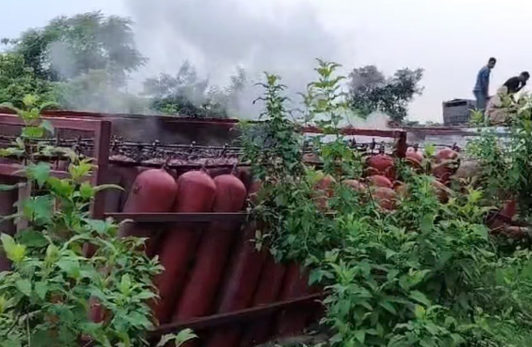 ਕੀਰਤਪੁਰ ਸਾਹਿਬ ‘ਚ ਸਿਲੰਡਰਾਂ ਨਾਲ ਭਰਿਆ ਕੈਂਟਰ ਪਲਟਿਆ, ਲੱਗੀ ਅੱਗ