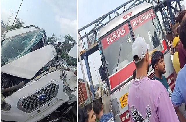 ਨੈਸ਼ਨਲ ਹਾਈਵੇ ‘ਤੇ ਪੰਜਾਬ ਰੋਡਵੇਜ਼ ਦੀ ਬੱਸ ਤੇ ਕਾਰ ਵਿਚਕਾਰ ਟੱਕਰ