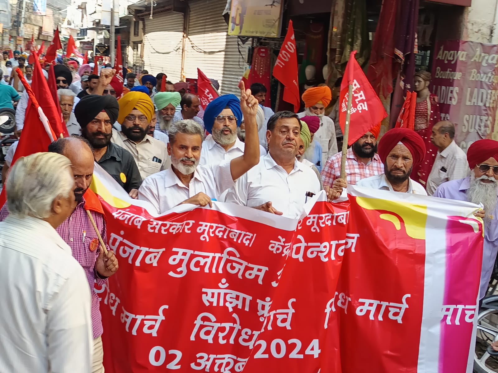 ਪੰਜਾਬ ਦੇ ਹਜ਼ਾਰਾਂ ਮੁਲਾਜ਼ਮਾਂ ਅਤੇ ਪੈਨਸ਼ਨਰਾਂ ਨੇ ਅੱਜ ਅੰਬਾਲਾ ਸ਼ਹਿਰ ਵਿੱਚ ਕੇਂਦਰ , ਪੰਜਾਬ ਸਰਕਾਰ ਅਤੇ ਕਾਰਪੋਰੇਟ ਘਰਾਣਿਆਂ ਖ਼ਿਲਾਫ਼ ਨਾਅਰੇਬਾਜ਼ੀ ਕੀਤੀ