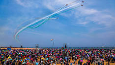 ਆਪਣੀ 92ਵੀਂ ਵਰ੍ਹੇਗੰਢ ਮਨਾਉਣ ਲਈ, ਭਾਰਤੀ ਹਵਾਈ ਸੈਨਾ ਨੇ ਬੀਤੇ ਕੱਲ੍ਹ ਤਾਮਿਲਨਾਡੂ ਵਿੱਚ ਚੇਨਈ ਮਰੀਨਾ ਏਅਰਫੀਲਡ ਵਿਖੇ ਇੱਕ ਏਅਰ ਐਡਵੈਂਚਰ ਸ਼ੋਅ ਦਾ ਆਯੋਜਨ ਕੀਤਾ ਸੀ। 21 ਸਾਲਾਂ ਵਿੱਚ ਪਹਿਲੀ ਵਾਰ, ਚੇਨਈ ਨੇ ਹਵਾਈ ਸੈਨਾ ਦਿਵਸ ਦੇ ਜਸ਼ਨ ਦੀ ਮੇਜ਼ਬਾਨੀ ਕੀਤੀ। ਕੜਾਕੇ ਦੀ ਗਰਮੀ ਵਿੱਚ ਏਅਰ ਸ਼ੋਅ ਦੇਖਣ ਲਈ ਹਜ਼ਾਰਾਂ ਲੋਕ ਪੁੱਜੇ ਹੋਏ ਸਨ।