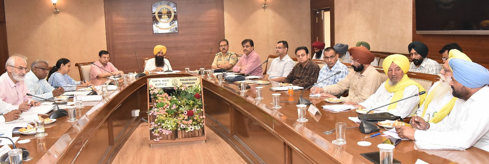 ਸ. ਗੁਰਮੀਤ ਸਿੰਘ ਖੁੱਡੀਆਂ ਨੇ ਅੱਜ ਇੱਥੇ ਪੰਜਾਬ ਭਵਨ ਵਿਖੇ ਮੁੱਖ ਸਕੱਤਰ ਸ੍ਰੀ ਅਨੁਰਾਗ ਵਰਮਾ, ਸਪੈਸ਼ਲ ਡੀ.ਜੀ.ਪੀ. (ਕਾਨੂੰਨ ਅਤੇ ਵਿਵਸਥਾ) ਅਰਪਿਤ ਸ਼ੁਕਲਾ ਅਤੇ ਸੂਬਾ ਸਰਕਾਰ ਦੇ ਹੋਰ ਸੀਨੀਅਰ ਅਧਿਕਾਰੀਆਂ ਸਮੇਤ ਭਾਰਤੀ ਕਿਸਾਨ ਯੂਨੀਅਨ (ਉਗਰਾਹਾਂ) ਅਤੇ ਪੰਜਾਬ ਖੇਤੀ ਮਜ਼ਦੂਰ ਯੂਨੀਅਨ ਦੇ ਆਗੂਆਂ ਨਾਲ ਮੀਟਿੰਗ ਕੀਤੀ। ਇਸ ਮੀਟਿੰਗ ਦਾ ਉਦੇਸ਼ ਪੰਜਾਬ ਖੇਤੀਬਾੜੀ ਨੀਤੀ ਸਬੰਧੀ ਉਨ੍ਹਾਂ ਦੀਆਂ ਚਿੰਤਾਵਾਂ ਬਾਰੇ ਜਾਨਣਾ ਅਤੇ ਸੁਝਾਅ ਲੈਣਾ ਸੀ।
