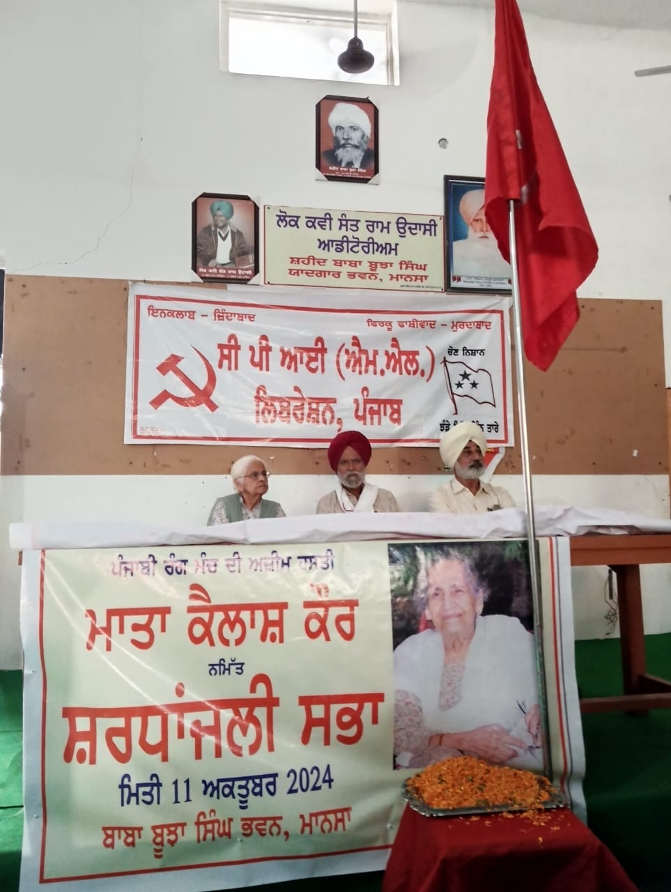 ਲੇਖਕਾਂ, ਅਦਾਕਾਰਾਂ ਅਤੇ ਸੰਘਰਸ਼ਸ਼ੀਲ ਆਗੂਆਂ ਵਲੋਂ ਮਾਤਾ ਕੈਲਾਸ਼ ਕੌਰ ਨੂੰ ਭਰਪੂਰ ਸ਼ਰਧਾਂਜਲੀਆਂ