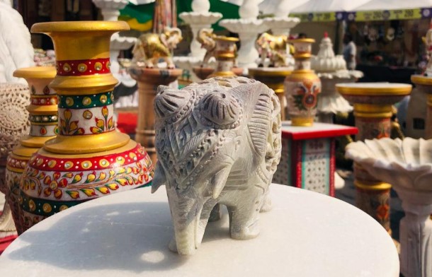 ਮੇਲੇ ਵਿੱਚ ਉੱਤਰ ਪ੍ਰਦੇਸ਼ ਦੇ ਆਗਰਾ ਖੇਤਰ ਦੇ ਕਾਰੀਗਰਾਂ ਵੱਲੋਂ ਸੰਗਮਰਮਰ ਦੀਆਂ ਸਲੇਟਾਂ ਨੂੰ ਤਰਾਸ਼ ਕੇ ਵੱਖ-ਵੱਖ ਤਰ੍ਹਾਂ ਦੇ ਬੁੱਤ ਅਤੇ ਉਨ੍ਹਾਂ ਉੱਤੇ ਰੰਗਾਂ ਅਤੇ ਮੋਤੀਆਂ ਦੇ ਨਾਲ਼ ਸੁੰਦਰ ਕਸ਼ੀਦਾਕਾਰੀ ਕੀਤੀ ਹੋਈ ਹੈ। ਇੱਥੇ ਹੱਥ ਨਾਲ਼ ਸੰਗਮਰਮਰ ਤੋਂ ਬਣੀਆਂ ਵਸਤੂਆਂ ਵਿੱਚ ਹਾਥੀ, ਸ਼ੇਰ, ਪਾਣੀ ਦੇ ਫੁਹਾਰੇ, ਸ਼ਤਰੰਜ, ਗਊ, ਗੌਤਮ ਬੁੱਧ ਦੀਆਂ ਮੂਰਤੀਆਂ, ਖੂਬਸੂਰਤ ਗਮਲੇ, ਲੈਂਪ, ਬੈਠਣ ਲਈ ਸਟੂਲ ਅਤੇ ਹੋਰ ਸਜਾਵਟ ਦੀਆਂ ਵਸਤਾਂ ਆਦਿ ਸ਼ਾਮਿਲ ਹਨ। ਇਸ ਤੋਂ ਇਲਾਵਾ ਰਸੋਈ ਦੀਆਂ ਰੋਜ਼ਾਨਾ ਵਰਤੋਂ ਵਾਲੀਆਂ ਵਸਤਾਂ ਵਿੱਚ ਚਕਲੇ, ਮਾਮ-ਦਸਤੇ, ਕੁੰਡੀ-ਸੋਟਾ ਵੀ ਖਿੱਚ ਦਾ ਕੇਂਦਰ ਬਣ ਰਹੇ ਹਨ।