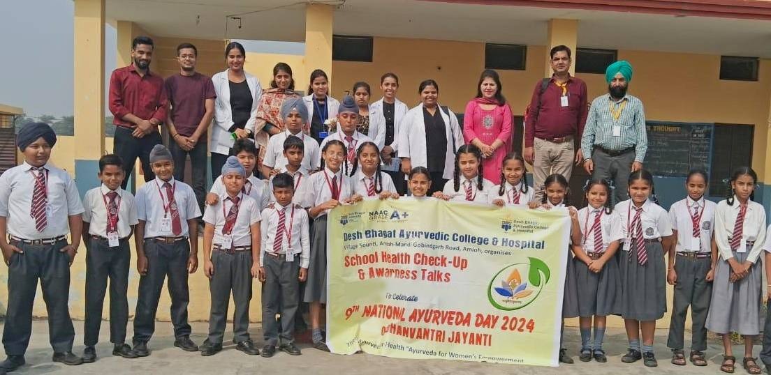 ਦੇਸ਼ ਭਗਤ ਆਯੁਰਵੈਦਿਕ ਕਾਲਜ ਅਤੇ ਹਸਪਤਾਲ ਵੱਲੋਂ ਆਯੁਰਵੇਦ ਦੀ ਹਰ ਖੇਤਰ ਵਿੱਚ ਪ੍ਰਵਾਨਿਤਤਾ ਨੂੰ ਵਧਾਉਣ ਲਈ ਮੈਡੀਕਲ ਕੈਂਪ, ਸਕੂਲ ਹੈਲਥ ਚੈਕਅੱਪ, ਜਾਗਰੂਕਤਾ ਭਾਸ਼ਣ ਅਤੇ ਹੋਰ ਪੰਜ ਦਿਨਾਂ ਗਤੀਵਿਧੀਆਂ ਕਰਵਾਈਆਂ ਗਈਆਂ। ਇਹ ਗਤੀਵਿਧੀਆਂ ਦੇਸ਼ ਭਗਤ ਆਯੁਰਵੈਦਿਕ ਹਸਪਤਾਲ ਅਤੇ ਨੇੜਲੇ ਖੇਤਰ ਦੇ ਪਿੰਡਾਂ, ਸਕੂਲਾਂ ਅਤੇ ਮਸਜਿਦਾਂ ਵਿੱਚ ਵਿਸ਼ੇਸ਼ ਮਾਹਿਰ ਸਲਾਹਕਾਰਾਂ ਦੀ ਟੀਮ ਦੁਆਰਾ ਕੀਤੀਆਂ ਗਈਆਂ ਜਿਸ ਵਿੱਚ ਡਾ. ਪ੍ਰਾਚੀ ਸ਼ਰਮਾ (ਬਾਲ ਰੋਗ ਮਾਹਿਰ), ਡਾ. ਸਨਾਮਿਕਾ (ਕੰਨ ਅਤੇ ਅੱਖਾਂ ਦੇ ਮਾਹਿਰ), ਡਾ. ਈਸ਼ੂ ਅਤੇ ਡਾ. ਜਸਪ੍ਰੀਤ (ਫਿਜ਼ਿਓਥੈਰੇਪਿਸਟ), ਡਾ. ਅਨਿਲ ਜੋਸ਼ੀ (ਲਾਈਫ ਸਟਾਈਲ ਡਿਸਆਰਡਰ ਕੋਚ), ਡਾ. ਪੂਨਮ। (ਸਰਜਨ), ਡਾ: ਦਰਸ਼ਨਾ (ਮੈਡੀਕਲ ਸਪੈਸ਼ਲਿਸਟ), ਡਾ: ਸੁਰਿੰਦਰ (ਐਕਯੂਪੰਕਚਰ ਸਪੈਸ਼ਲਿਸਟ) ਅਤੇ ਮੈਡੀਕਲ ਅਫ਼ਸਰ ਸ਼ਾਮਿਲ ਸਨ।