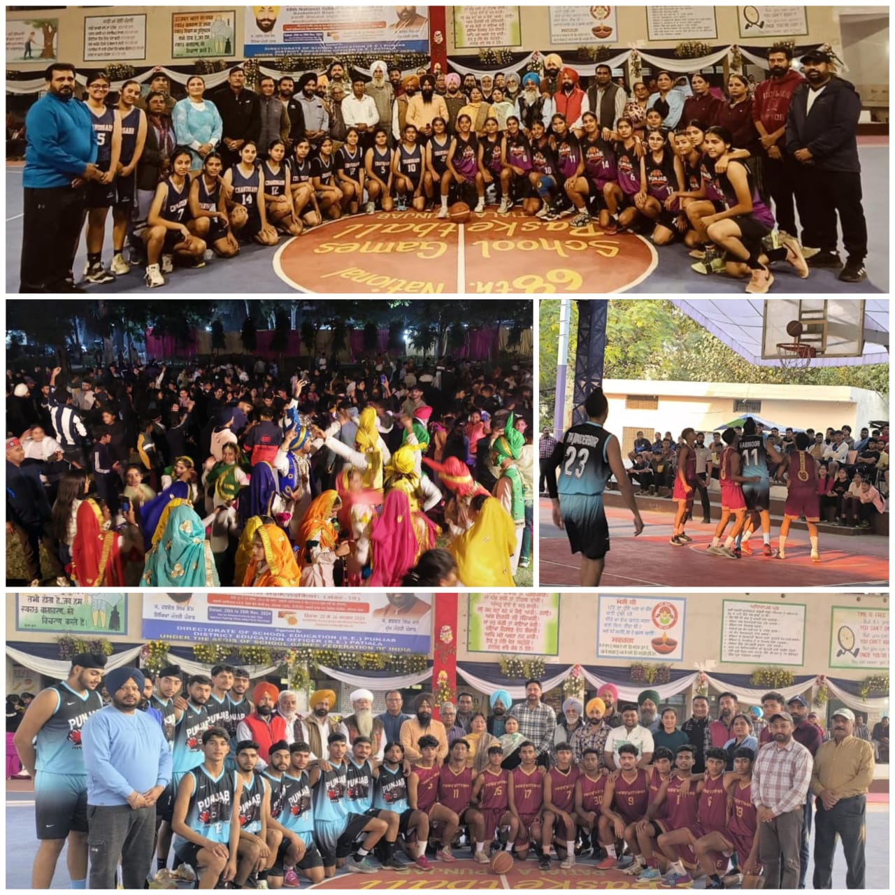 ਦੀ ਦੇਖ-ਰੇਖ ਹੇਠ ਸਰਕਾਰੀ ਕੋ-ਐਡ ਮਲਟੀਪਰਪਜ ਸੀਨੀਅਰ ਸੈਕੰਡਰੀ ਸਕੂਲ ਪਾਸੀ ਰੋਡ ਪਟਿਆਲਾ ਦੇ ਬਾਸਕਟਬਾਲ ਕੋਰਟਾਂ ਵਿੱਚ ਪ੍ਰੀ-ਕੁਆਰਟਰ ਫਾਈਨਲ ਨਾਕ-ਆਉਟ ਮੁਕਾਬਲੇ ਖੇਡੇ ਗਏ। ਪ੍ਰੀ-ਕੁਆਰਟਰ ਫਾਈਨਲ ਵਿੱਚ ਪੰਜਾਬ ਦੇ ਲੜਕਿਆਂ ਨੇ ਕਰਨਾਟਕ 100-66 ਅੰਕਾਂ ਨਾਲ ਨੂੰ ਹਰਾਇਆ। ਇਹਨਾਂ ਮੁਕਾਬਲਿਆਂ ਨੂੰ ਆਯੋਜਿਤ ਕਰਨ ਲਈ ਗਰਾਊਂਡ ਪ੍ਰਬੰਧਕ ਕਮੇਟੀ ਅਤੇ ਹੋਰ ਸਹਿਯੋਗੀ ਕਮੇਟੀਆਂ ਵੱਡਮੁੱਲੀ ਭੂਮਿਕਾ ਨਿਭਾ ਰਹੀਆਂ ਹਨ। ਟੂਰਨਾਮੈਂਟ ਆਰਗੇਨਾਈਜ਼ਿੰਗ ਇੰਚਾਰਜ ਜਸਪਾਲ ਸਿੰਘ ਪ੍ਰਿੰਸੀਪਲ ਸਕੂਲ ਆਫ ਐਮੀਨੈਂਸ ਮੰਡੌਰ ਨੇ ਦੱਸਿਆ ਕਿ ਖਿਡਾਰੀਆਂ ਦੇ ਮਨੋਰੰਜਨ ਲਈ ਬੀਤੀ ਸ਼ਾਮ ਸੱਭਿਆਚਾਰਕ ਪ੍ਰੋਗਰਾਮ ਦਾ ਆਯੋਜਨ ਸਰਕਾਰੀ ਸੀਨੀਅਰ ਸੈਕੰਡਰੀ ਸਕੂਲ ਸਿਵਲ ਲਾਇਨਜ ਪਟਿਆਲਾ ਦੇ ਕੈਂਪਸ ਵਿੱਚ ਕੀਤਾ ਗਿਆ ਜਿਸ ਵਿੱਚ ਸਰਕਾਰੀ ਸਿਵਲ ਲਾਇਨਜ ਸਕੂਲ, ਸਰਕਾਰੀ ਕੰਨਿਆ ਸੀਨੀਅਰ ਸੈਕੰਡਰੀ ਸਕੂਲ ਓਲਡ ਪੁਲਿਸ ਲਾਈਨ, ਸਰਕਾਰੀ ਕੰਨਿਆ ਸੀਨੀਅਰ ਸੈਕੰਡਰੀ ਸਕੂਲ ਸਨੌਰ, ਸਰਕਾਰੀ ਸੀਨੀਅਰ ਸੈਕੰਡਰੀ ਸਕੂਲ ਮਾਡਲ ਟਾਊਨ ਦੇ ਵਿਦਿਆਰਥੀਆਂ ਵੱਲੋਂ ਵੱਖ-ਵੱਖ ਪੰਜਾਬੀ ਲੋਕ ਨਾਚਾਂ ਤੋਂ ਇਲਾਵਾ ਹੋਰ ਰਾਜਾਂ ਜਿਵੇਂ ਕਿ ਹਰਿਆਣਾ, ਹਿਮਾਚਲ, ਰਾਜਸਥਾਨ ਆਦਿ ਰਾਜਾਂ ਦੇ ਲੋਕ ਨਾਚਾਂ ਦੀ ਪੇਸ਼ਕਾਰੀ ਕੀਤੀ ਗਈ ਜਿਸ ਤੇ ਵੱਖ-ਵੱਖ ਰਾਜਾਂ ਤੋਂ ਆਏ ਖਿਡਾਰੀਆਂ ਨੇ ਵੀ ਇਹਨਾਂ ਲੋਕ ਨਾਚਾਂ ਵਿੱਚ ਸ਼ਮੂਲੀਅਤ ਕੀਤੀ। ਇਸ ਸਮੇਂ ਅਨੇਕਤਾ ਵਿੱਚ ਏਕਤਾ ਦਾ ਪ੍ਰਗਟਾਵਾ ਸਪੱਸ਼ਟ ਦਿਖਾਈ ਦੇ ਰਿਹਾ ਸੀ। ਸਕੂਲ ਗੇਮਜ ਫੈਡਰੇਸ਼ਨ ਆਫ ਇੰਡੀਆ ਵੱਲੋ ਪਹੁੰਚੇ ਟੂਰਨਾਮੈਂਟ ਆਬਜ਼ਰਵਰ ਅਜੀਤਪਾਲ ਗਿੱਲ ਨੇ ਟੂਰਨਾਮੈਂਟ ਪ੍ਰਬੰਧਾਂ ਤੇ ਤਸੱਲੀ ਪ੍ਰਗਟਾਈ।