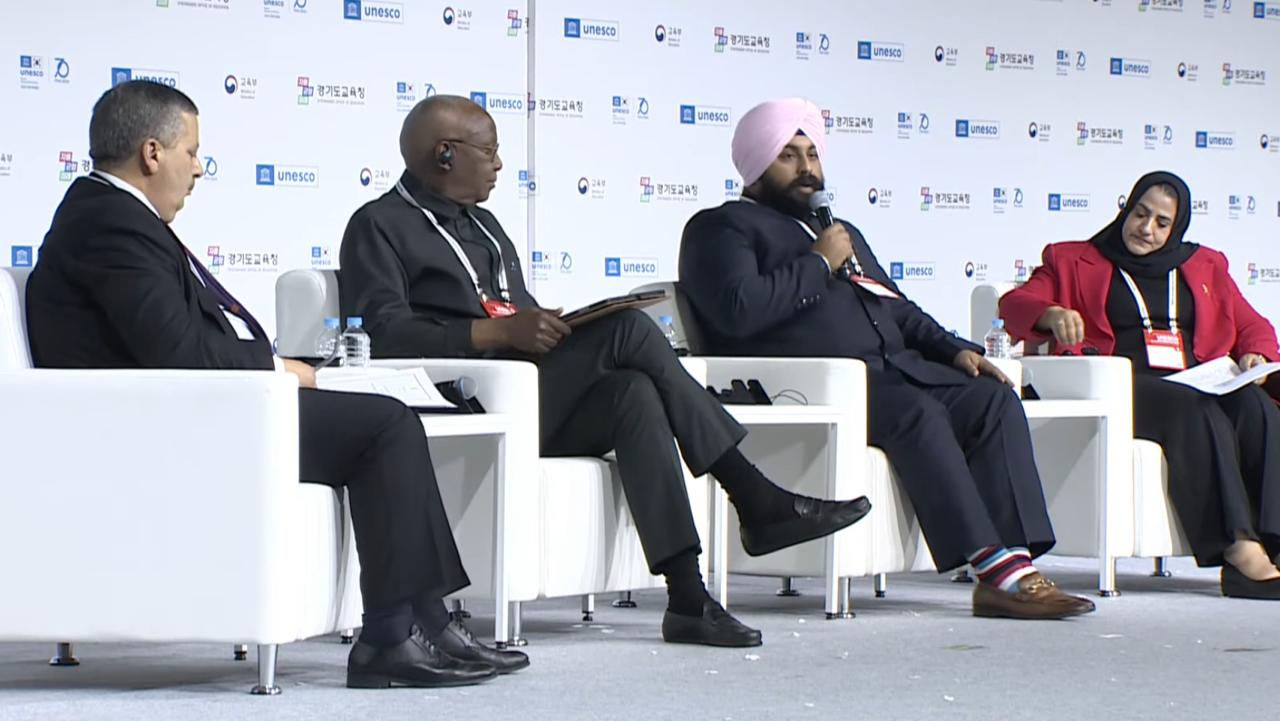 ਯੂਨੈਸਕੋ ਵਲੋਂ ਭਵਿੱਖੀ ਸਿੱਖਿਆ ਬਾਰੇ ਦੱਖਣੀ ਕੋਰੀਆ ਦੇ ਜੀਂਉਗੀ ਡੂ ਸਹਿਰ ਦੇ ਸੁਵਾਨ ਕਨਵੈਨਸ਼ਨ ਸੈਂਟਰ ਵਿਖੇ ਕਰਵਾਏ ਜਾ ਰਹੇ ਅੰਤਰਰਾਸ਼ਟਰੀ ਕਨਵੈਨਸ਼ਨ ਵਿੱਚ ਭਾਰਤ ਦੀ ਨੁਮਾਇੰਦਗੀ ਕਰਦਿਆਂ ਪੰਜਾਬ ਦੇ ਸਕੂਲ ਸਿੱਖਿਆ ਮੰਤਰੀ ਹਰਜੋਤ ਸਿੰਘ ਬੈਂਸ ਨੇ ਪੰਜਾਬ ਸਰਕਾਰ ਵੱਲੋਂ ਸਿੱਖਿਆ ਦੇ ਖੇਤਰ ਵਿਚ ਕ੍ਰਾਂਤੀਕਾਰੀ ਉਪਰਾਲਿਆਂ ਬਾਰੇ ਚਾਨਣਾ ਪਾਉਂਦਾ ਕਿਹਾ ਕਿ ਆਲਮੀ ਪੱਧਰ ਤੇ ਪੈਂਦਾ ਹੋ ਰਹੀਆਂ ਚੁਣੌਤੀਆਂ ਦਾ ਹੱਲ ਸਿੱਖਿਆ ਦੇ ਖੇਤਰ ਵਿੱਚ ਨਿਵੇਕਲੀਆਂ ਤਬਦੀਲੀਆਂ ਨਾਲ ਹੀ ਕੱਢਿਆ ਜਾ ਸਕਦਾ ਹੈ ਅਤੇ ਸਾਡੀ ਸਰਕਾਰ ਇਸੇ ਦਿਸ਼ਾ ਵਿਚ ਕੰਮ ਕਰ ਰਹੀ ਹੈ ।
