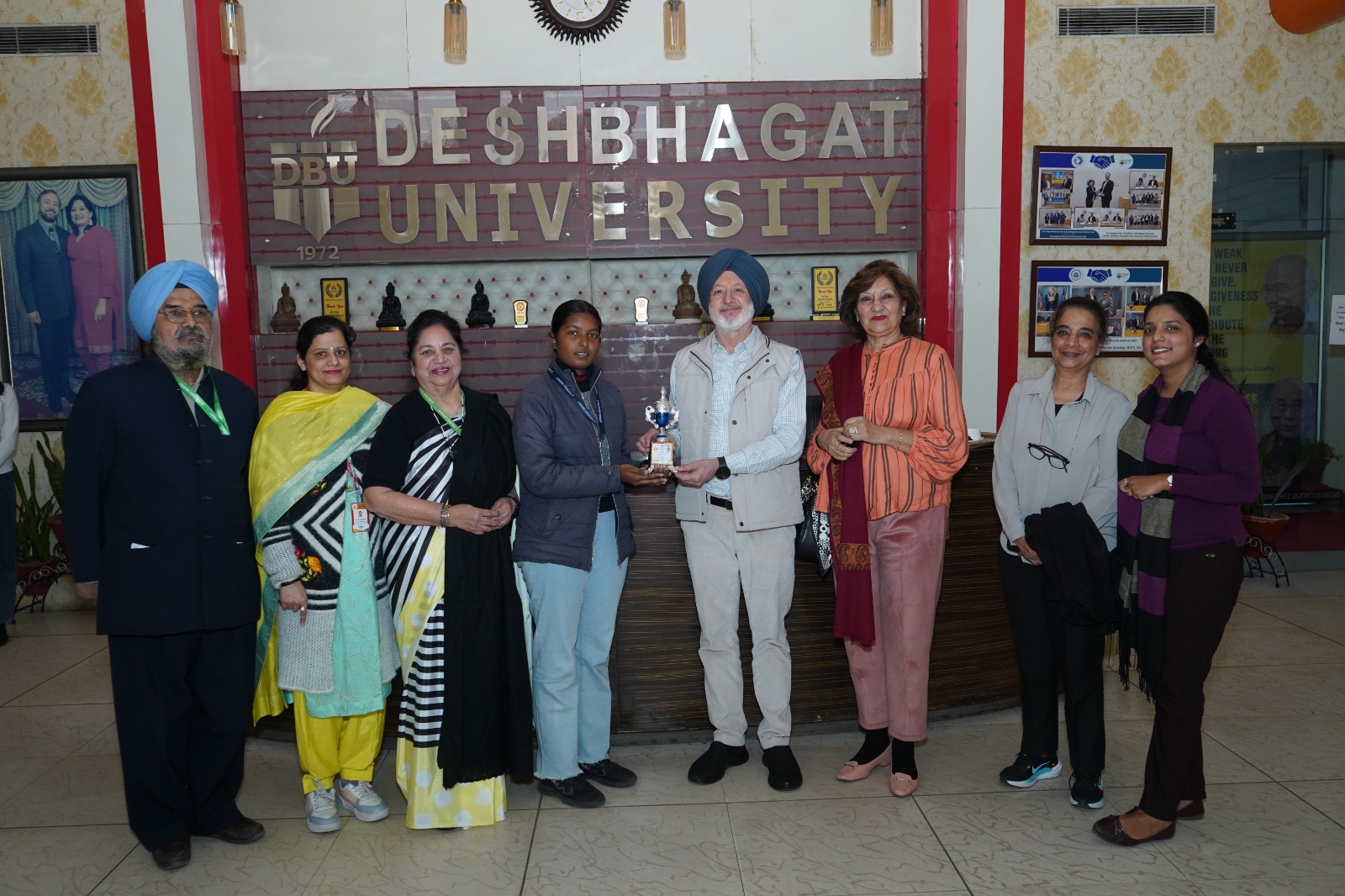 ਦੇਸ਼ ਭਗਤ ਯੂਨੀਵਰਸਿਟੀ ਤੋਂ ਬੀਏ ਐਲਐਲਬੀ ਦੇ ਪਹਿਲੇ ਸਾਲ ਦੀ ਵਿਦਿਆਰਥਣ ਅਸ਼ਮਿਤਾ ਨੇ ਪੰਜਾਬ ਰਾਜ ਅੰਤਰ-ਵਰਸਿਟੀ ਯੁਵਕ ਮੇਲਾ 2024 ਵਿੱਚ ਤੀਜਾ ਇਨਾਮ ਹਾਸਲ ਕਰਕੇ ਆਪਣੀ ਸੰਸਥਾ ਦਾ ਨਾਂ ਰੌਸ਼ਨ ਕੀਤਾ ਹੈ। ਇਹ ਸਮਾਗਮ ਯੁਵਕ ਸੇਵਾਵਾਂ ਵਿਭਾਗ, ਪੰਜਾਬ ਵੱਲੋਂ ਕਰਵਾਇਆ ਗਿਆ ਜਿਸਦੀ ਮੇਜ਼ਬਾਨੀ ਪੰਜਾਬ ਐਗਰੀਕਲਚਰਲ ਯੂਨੀਵਰਸਿਟੀ, ਲੁਧਿਆਣਾ ਨੇ ਕੀਤੀ।