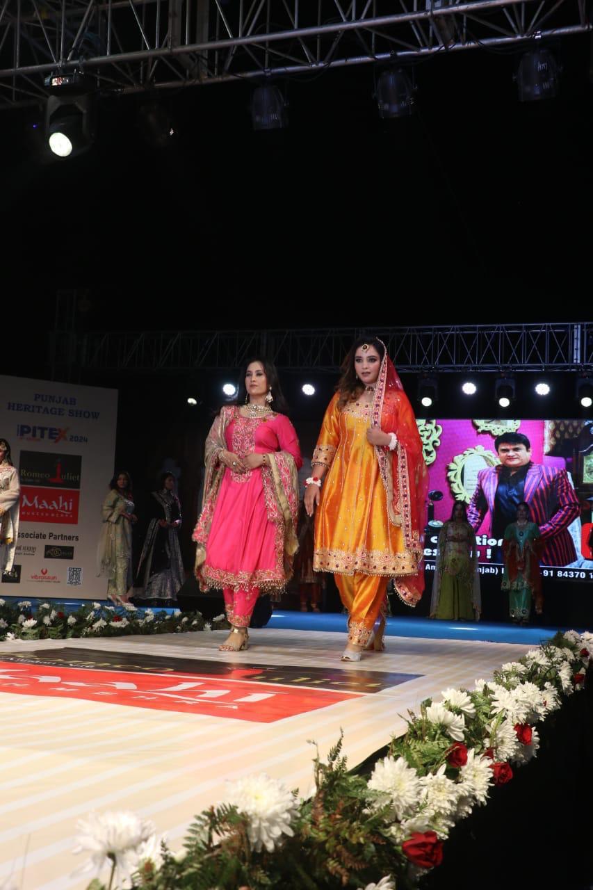 ਪੰਜਾਬ ਇੰਟਰਨੈਸ਼ਨਲ ਟਰੇਡ ਐਕਸਪੋ ਦੌਰਾਨ ਬੀਤੀ ਰਾਤ ਪਹਿਲੀ ਵਾਰ ਆਯੋਜਿਤ ਕੀਤੀ ਗਈ ਹੈਰੀਟੇਜ ਵਾਕ ਦੌਰਾਨ ਜਿੱਥੇ ਵੱਖ-ਵੱਖ ਡਿਜ਼ਾਈਨਰਾਂ ਨੇ ਆਪਣੇ ਪਹਿਰਾਵੇ ਪੇਸ਼ ਕੀਤੇ, ਉੱਥੇ ਹੀ ਪੰਜਾਬ ਦੇ ਨੌਜਵਾਨਾਂ ਨੇ ਰੈਂਪ ਵਾਕ ਰਾਹੀਂ ਪੰਜਾਬ ਦੇ ਵਿਆਹਾਂ ਵਿੱਚ ਨਿਭਾਈਆਂ ਜਾਣ ਵਾਲੀਆਂ ਰਸਮਾਂ ਨੂੰ ਵੀ ਦਿਖਾਇਆ।