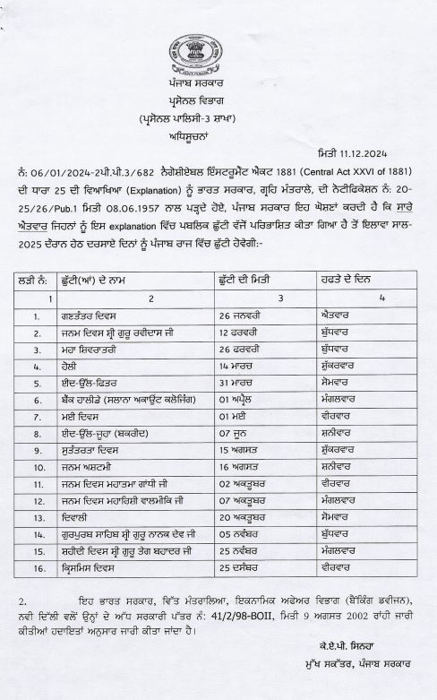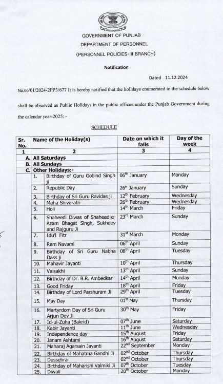 ਪੰਜਾਬ ਸਰਕਾਰ ਵੱਲੋਂ 2025 ਦੀਆਂ ਛੁੱਟੀਆਂ ਦੀ ਲਿਸਟ ਜਾਰੀ ਚੰਡੀਗੜ੍ਹ ਦਸੰਬਰ 11, 2024ਦਸੰਬਰ 11, 2024BolePunjab.comLeave a Comment on ਪੰਜਾਬ ਸਰਕਾਰ ਵੱਲੋਂ 2025 ਦੀਆਂ ਛੁੱਟੀਆਂ ਦੀ ਲਿਸਟ ਜਾਰੀ ਚੰਡੀਗੜ੍ਹ 11 ਦਸੰਬਰ ,ਬੋਲੇ ਪੰਜਾਬ ਬਿਊਰੋ : ਪੰਜਾਬ ਸਰਕਾਰ ਵੱਲੋਂ 2025 ਦੀਆਂ ਛੁੱਟੀਆਂ ਦੀ ਲਿਸਟ ਜਾਰੀ Related Postਪੰਜਾਬ ਨੇ ਸਕੂਲ ਅਧਿਆਪਕਾਂ ਨੂੰ ਕਰੀਅਰ ਮੈਂਟਰ ਵਜੋਂ ਸਿਖਲਾਈ ਦੇਣ ਲਈ ਆਈ.ਆਈ.ਟੀ. ਮਦਰਾਸ ਨਾਲ ਹੱਥ ਮਿਲਾਇਆਦਸੰਬਰ 5, 2025ਪੰਜਾਬ ਵਿੱਚ ਜ਼ਿਲ੍ਹਾ ਪ੍ਰੀਸ਼ਦ ਚੋਣਾਂ ਨੂੰ ਲੈ ਕੇ ਕਾਂਗਰਸ ਨੇ ਹਾਈ ਕੋਰਟ ਦਾ ਦਰਵਾਜ਼ਾ ਖੜਕਾਇਆਦਸੰਬਰ 5, 2025ਚੰਡੀਗੜ੍ਹ ਪੁਲਿਸ ਦੇ ਸ਼ਰਾਬੀ ASI ਨੇ 10 ਵਾਹਨਾਂ ਨੂੰ ਮਾਰੀ ਟੱਕਰਦਸੰਬਰ 5, 2025Latest Newsਪੰਜਾਬ ਨੇ ਸਕੂਲ ਅਧਿਆਪਕਾਂ ਨੂੰ ਕਰੀਅਰ ਮੈਂਟਰ ਵਜੋਂ ਸਿਖਲਾਈ ਦੇਣ ਲਈ ਆਈ.ਆਈ.ਟੀ. ਮਦਰਾਸ ਨਾਲ ਹੱਥ ਮਿਲਾਇਆਸੰਸਦ ਮੈਂਬਰ ਸ਼੍ਰੀ ਮਨੀਸ਼ ਤਿਵਾੜੀ ਨੇ ਲੋਕ ਸਭਾ ਵਿੱਚ ਹਰਿਆਣਾ, ਪੰਜਾਬ ਅਤੇ ਹਿਮਾਚਲ ਪ੍ਰਦੇਸ਼ ਦੇ ਡੈਮਾਂ ਦੀ ਡੀ-ਸਿਲਟਿੰਗ ਅਤੇ ਘਟਦੀ ਸਟੋਰੇਜ ਸਮਰੱਥਾ ਦਾ ਮੁੱਦਾ ਉਠਾਇਆਮੁੱਖ ਪ੍ਰਸ਼ਾਸ਼ਕ ਪੁੱਡਾ ਮੈਡਮ ਨੀਰੂ ਕਤਿਆਲ ਗੁਪਤਾ ਦੇ ਦਫਤਰ ਪੁੱਡਾ ਭਵਨ ਮੋਹਾਲੀ ਵਿਖੇ ਲੜੀਵਾਰ ਭੁੱਖ ਹੜਤਾਲਪੰਜਾਬ ਵਿੱਚ ਜ਼ਿਲ੍ਹਾ ਪ੍ਰੀਸ਼ਦ ਚੋਣਾਂ ਨੂੰ ਲੈ ਕੇ ਕਾਂਗਰਸ ਨੇ ਹਾਈ ਕੋਰਟ ਦਾ ਦਰਵਾਜ਼ਾ ਖੜਕਾਇਆਬਿਜਲੀ ਸੋਧ ਬਿਲ ਤੇ ਨਵੇਂ ਬੀਜ ਬਿੱਲ ਖਿਲਾਫ ਕਿਰਤੀ ਕਿਸਾਨ ਮੋਰਚਾ ਦੀ ਹੋਈ ਮੀਟਿੰਗPreviousNextLatest Newsਪੰਜਾਬ ਨੇ ਸਕੂਲ ਅਧਿਆਪਕਾਂ ਨੂੰ ਕਰੀਅਰ ਮੈਂਟਰ ਵਜੋਂ ਸਿਖਲਾਈ ਦੇਣ ਲਈ ਆਈ.ਆਈ.ਟੀ. ਮਦਰਾਸ ਨਾਲ ਹੱਥ ਮਿਲਾਇਆਸੰਸਦ ਮੈਂਬਰ ਸ਼੍ਰੀ ਮਨੀਸ਼ ਤਿਵਾੜੀ ਨੇ ਲੋਕ ਸਭਾ ਵਿੱਚ ਹਰਿਆਣਾ, ਪੰਜਾਬ ਅਤੇ ਹਿਮਾਚਲ ਪ੍ਰਦੇਸ਼ ਦੇ ਡੈਮਾਂ ਦੀ ਡੀ-ਸਿਲਟਿੰਗ ਅਤੇ ਘਟਦੀ ਸਟੋਰੇਜ ਸਮਰੱਥਾ ਦਾ ਮੁੱਦਾ ਉਠਾਇਆਮੁੱਖ ਪ੍ਰਸ਼ਾਸ਼ਕ ਪੁੱਡਾ ਮੈਡਮ ਨੀਰੂ ਕਤਿਆਲ ਗੁਪਤਾ ਦੇ ਦਫਤਰ ਪੁੱਡਾ ਭਵਨ ਮੋਹਾਲੀ ਵਿਖੇ ਲੜੀਵਾਰ ਭੁੱਖ ਹੜਤਾਲਪੰਜਾਬ ਵਿੱਚ ਜ਼ਿਲ੍ਹਾ ਪ੍ਰੀਸ਼ਦ ਚੋਣਾਂ ਨੂੰ ਲੈ ਕੇ ਕਾਂਗਰਸ ਨੇ ਹਾਈ ਕੋਰਟ ਦਾ ਦਰਵਾਜ਼ਾ ਖੜਕਾਇਆਬਿਜਲੀ ਸੋਧ ਬਿਲ ਤੇ ਨਵੇਂ ਬੀਜ ਬਿੱਲ ਖਿਲਾਫ ਕਿਰਤੀ ਕਿਸਾਨ ਮੋਰਚਾ ਦੀ ਹੋਈ ਮੀਟਿੰਗਪਾਈਟੈਕਸ ਵਿਖੇ ਅਪਾਹਜਾਂ ਅਤੇ ਬਜ਼ੁਰਗਾਂ ਲਈ ਵ੍ਹੀਲਚੇਅਰ ਦੀ ਸਹੂਲਤਚੰਡੀਗੜ੍ਹ ਪੁਲਿਸ ਦੇ ਸ਼ਰਾਬੀ ASI ਨੇ 10 ਵਾਹਨਾਂ ਨੂੰ ਮਾਰੀ ਟੱਕਰਪੰਜਾਬ ਵਿੱਚ ਰੇਲਵੇ ਪਟੜੀਆਂ ‘ਤੇ ਕਿਸਾਨਾਂ ਅਤੇ ਪੁਲਿਸ ਵਿਚਕਾਰ ਝੜਪਾਂਦੇਸ਼ ਭਗਤ ਯੂਨੀਵਰਸਿਟੀ ਨੇ ਕਰਵਾਈ ਅੰਤਰਰਾਸ਼ਟਰੀ ਕਾਨਫਰੰਸ ਅਤੇ ਅਗਾਂਹਵਧੂ ਕਿਸਾਨ ਮਿਲਣੀਆਮ ਆਦਮੀ ਪਾਰਟੀ ਵੱਲੋਂ ਨਾਮਜ਼ਦਗੀ ਪੱਤਰ ਦਾਖਲ ਕਰਨ ਦੌਰਾਨ ਸ਼ਰੇਆਮ ਗੁੰਡਾਗਰਦੀ ਦੀਆਂ ਘਟਨਾਵਾਂ ਅਤੇ ਚੋਣ ਪ੍ਰਕਿਰਿਆ ਦੌਰਾਨ ਸਰਕਾਰੀ ਮਸ਼ੀਨਰੀ ਦੀ ਕਥਿਤ ਦੁਰਵਰਤੋਂ ਲੋਕਤੰਤਰ ਲਈ ਖ਼ਤਰਨਾਕ – ਕੈਂਥ ਪੁਲਿਸ ਮੁਲਾਜ਼ਮਾਂ ‘ਤੇ ਵਰਦੀ ‘ਚ ਰੀਲਾਂ ਬਣਾਉਣ ‘ਤੇ ਲੱਗੀ ਪਾਬੰਦੀਜਲੰਧਰ ‘ਚ ਰੋਡਵੇਜ਼ ਬੱਸ ਨੇ ਸਕੂਟਰ ਨੂੰ ਟੱਕਰ ਮਾਰੀ, ਪੁੱਤ ਦੀ ਮੌਤ ਪਿਤਾ ਗੰਭੀਰ ਜ਼ਖ਼ਮੀ PreviousNext