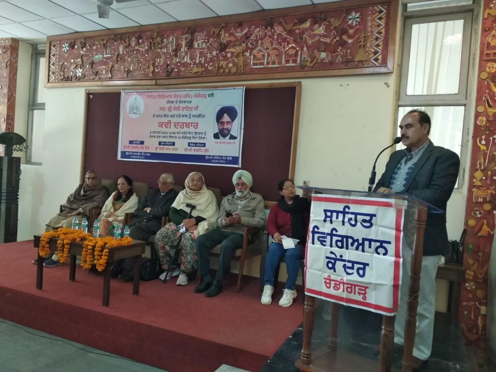 ਸਾਹਿਤ ਵਿਗਿਆਨ ਕੇਂਦਰ ਚੰਡੀਗੜ੍ਹ ਵੱਲੋਂ ਸੰਸਥਾ ਦੇ ਬਾਨੀ ਸ਼੍ਰੀ ਸੇਵੀ ਰਾਇਤ ਜੀ ਦਾ 85ਵਾਂ ਜਨਮ ਦਿਨ ਅਤੇ ਨਵੇਂ ਸਾਲ ਨੂੰ ਸਮਰਪਿਤ ਕਵੀ ਦਰਬਾਰ ਕਰਵਾਇਆ ਗਿਆ,ਜਿਸ ਦੀ ਪ੍ਰਧਾਨਗੀ ਉੱਘੀ ਲੇਖਕਾ ਅਤੇ ਕਵਿੱਤਰੀ ਸ਼੍ਰੀਮਤੀ ਸੁਰਜੀਤ ਕੌਰ ਬੈਂਸ ਜੀ ਨੇ ਕੀਤੀ। ਪ੍ਰਸਿੱਧ ਗਜ਼ਲਗੋ ਸ਼੍ਰੀ ਸਿਰੀ ਰਾਮ ਅਰਸ਼ ਜੀ ਨੇ ਮੁੱਖ ਮਹਿਮਾਨ ਅਤੇ ਪ੍ਰਸਿੱਧ ਗਜ਼ਲਗੋ ਪ੍ਰੋਫੈਸਰ ਗੁਰਦੀਪ ਕੌਰ ਧੀਰ ‘ਗੁਲ’ ਜੀ ਨੇ ਵਿਸ਼ੇਸ਼ ਮਹਿਮਾਨ ਵਜੋਂ ਸ਼ਿਰਕਤ ਕੀਤੀ।ਸ. ਭਰਪੂਰ ਸਿੰਘ ਜੀ ਨੇ ਆਏ ਹੋਏ ਮਹਿਮਾਨਾਂ ਨੂੰ ਜੀ ਆਇਆਂ ਕਿਹਾ। ਸਭ ਤੋਂ ਪਹਿਲਾਂ ਡਾ. ਅਵਤਾਰ ਸਿੰਘ ਪਤੰਗ ਜੀ ਨੇ ਸੇਵੀ ਰਾਇਤ ਜੀ ਨਾਲ ਬਿਤਾਏ ਪਲਾਂ ਅਤੇ ਉਹਨਾਂ ਦੇ ਸਾਹਿਤਕ ਸਫ਼ਰ ਬਾਰੇ ਭਰਪੂਰ ਜਾਣਕਾਰੀ ਦਿੱਤੀ ।ਪ੍ਰਸਿੱਧ ਪੰਜਾਬੀ ਫਿਲਮੀ ਕਲਾਕਾਰਾ ਸ਼੍ਰੀਮਤੀ ਪੰਮੀ ਸਿੱਧੂ ਸੰਧੂ ਜੀ ਨੇ ਸੇਵੀ ਰਾਇਤ ਜੀ ਦੇ ਜਨਮ ਦਿਨ ਤੇ ਉਹਨਾਂ ਪਰਿਵਾਰਿਕ ਮੈਂਬਰਾਂ ਨੂੰ ਵਧਾਈ ਦਿੱਤੀ। ਚੰਡੀਗੜ੍ਹ ਸਾਹਿਤ ਅਕੈਡਮੀ ਦੇ ਜਨਰਲ ਸਕੱਤਰ ਸ਼੍ਰੀ ਸੁਭਾਸ਼ ਭਾਸਕਰ ਜੀ,ਗੁਰਦਾਸ ਸਿੰਘ ਦਾਸ ਤੇ ਦਰਸ਼ਨ ਸਿੱਧੂ ਜੀ ਨੇ ਸੇਵੀ ਰਾਇਤ ਜੀ ਨਾਲ ਬਿਤਾਏ ਪਲਾਂ ਦੇ ਨਾਲ