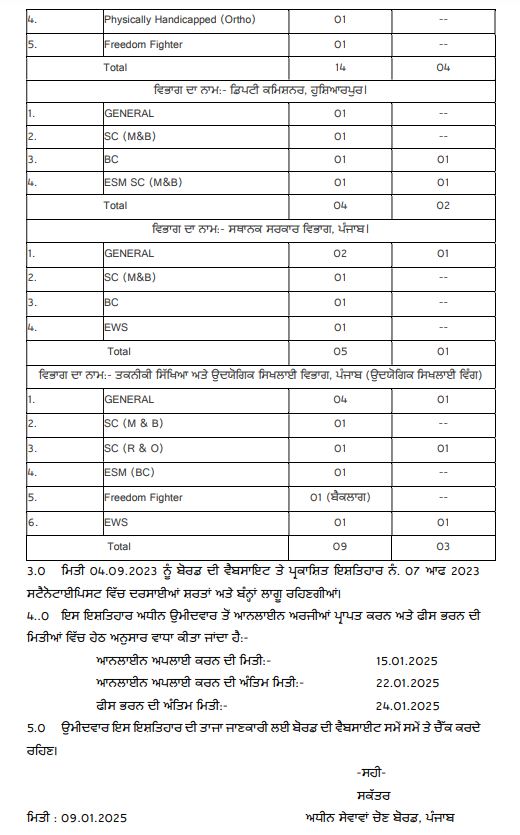 ਪੰਜਾਬ ਸਰਕਾਰ ਨੇ ਸਟੈਨੋਟਾਈਪਿਸਟਾਂ ਦੀਆਂ ਅਸਾਮੀਆਂ ਲਈ ਅਰਜ਼ੀਆਂ ਮੰਗੀਆਂ ਚੰਡੀਗੜ੍ਹ ਪੰਜਾਬ ਜਨਵਰੀ 12, 2025ਜਨਵਰੀ 12, 2025BolePunjab.comLeave a Comment on ਪੰਜਾਬ ਸਰਕਾਰ ਨੇ ਸਟੈਨੋਟਾਈਪਿਸਟਾਂ ਦੀਆਂ ਅਸਾਮੀਆਂ ਲਈ ਅਰਜ਼ੀਆਂ ਮੰਗੀਆਂ ਚੰਡੀਗੜ੍ਹ 12 ਜਨਵਰੀ ,ਬੋਲੇ ਪੰਜਾਬ ਬਿਊਰੋ : ਪੰਜਾਬ ਵਿੱਚ ਅਧੀਨ ਸੇਵਾਵਾਂ ਚੋਣ ਬੋਰਡ ਵੱਲੋਂ ਵੱਖ ਵੱਖ ਸਰਕਾਰੀ ਵਿਭਾਗਾਂ ਲੲ ਸਟੈਨੋਟਾਈਪਿਸਟ ਦੀਆਂ ਅਸਾਮੀਆਂ ਲਈ ਅਰਜ਼ੀਆਂ ਦੀ ਮੰਗ ਕੀਤੀ ਗਈ ਹੈ। ਯੋਗ ਉਮੀਦਵਾਰ 22 ਜਨਵਰੀ 2025 ਤੱਕ ਆਨਲਾਈਨ ਅਪਲਾਈ ਕਰ ਸਕਦੇ ਹਨ। Related Postਪੰਜਾਬ ਨੇ ਸਕੂਲ ਅਧਿਆਪਕਾਂ ਨੂੰ ਕਰੀਅਰ ਮੈਂਟਰ ਵਜੋਂ ਸਿਖਲਾਈ ਦੇਣ ਲਈ ਆਈ.ਆਈ.ਟੀ. ਮਦਰਾਸ ਨਾਲ ਹੱਥ ਮਿਲਾਇਆਦਸੰਬਰ 5, 2025ਪੰਜਾਬ ਵਿੱਚ ਜ਼ਿਲ੍ਹਾ ਪ੍ਰੀਸ਼ਦ ਚੋਣਾਂ ਨੂੰ ਲੈ ਕੇ ਕਾਂਗਰਸ ਨੇ ਹਾਈ ਕੋਰਟ ਦਾ ਦਰਵਾਜ਼ਾ ਖੜਕਾਇਆਦਸੰਬਰ 5, 2025ਚੰਡੀਗੜ੍ਹ ਪੁਲਿਸ ਦੇ ਸ਼ਰਾਬੀ ASI ਨੇ 10 ਵਾਹਨਾਂ ਨੂੰ ਮਾਰੀ ਟੱਕਰਦਸੰਬਰ 5, 2025Latest Newsਪੰਜਾਬ ਨੇ ਸਕੂਲ ਅਧਿਆਪਕਾਂ ਨੂੰ ਕਰੀਅਰ ਮੈਂਟਰ ਵਜੋਂ ਸਿਖਲਾਈ ਦੇਣ ਲਈ ਆਈ.ਆਈ.ਟੀ. ਮਦਰਾਸ ਨਾਲ ਹੱਥ ਮਿਲਾਇਆਸੰਸਦ ਮੈਂਬਰ ਸ਼੍ਰੀ ਮਨੀਸ਼ ਤਿਵਾੜੀ ਨੇ ਲੋਕ ਸਭਾ ਵਿੱਚ ਹਰਿਆਣਾ, ਪੰਜਾਬ ਅਤੇ ਹਿਮਾਚਲ ਪ੍ਰਦੇਸ਼ ਦੇ ਡੈਮਾਂ ਦੀ ਡੀ-ਸਿਲਟਿੰਗ ਅਤੇ ਘਟਦੀ ਸਟੋਰੇਜ ਸਮਰੱਥਾ ਦਾ ਮੁੱਦਾ ਉਠਾਇਆਮੁੱਖ ਪ੍ਰਸ਼ਾਸ਼ਕ ਪੁੱਡਾ ਮੈਡਮ ਨੀਰੂ ਕਤਿਆਲ ਗੁਪਤਾ ਦੇ ਦਫਤਰ ਪੁੱਡਾ ਭਵਨ ਮੋਹਾਲੀ ਵਿਖੇ ਲੜੀਵਾਰ ਭੁੱਖ ਹੜਤਾਲਪੰਜਾਬ ਵਿੱਚ ਜ਼ਿਲ੍ਹਾ ਪ੍ਰੀਸ਼ਦ ਚੋਣਾਂ ਨੂੰ ਲੈ ਕੇ ਕਾਂਗਰਸ ਨੇ ਹਾਈ ਕੋਰਟ ਦਾ ਦਰਵਾਜ਼ਾ ਖੜਕਾਇਆਬਿਜਲੀ ਸੋਧ ਬਿਲ ਤੇ ਨਵੇਂ ਬੀਜ ਬਿੱਲ ਖਿਲਾਫ ਕਿਰਤੀ ਕਿਸਾਨ ਮੋਰਚਾ ਦੀ ਹੋਈ ਮੀਟਿੰਗPreviousNextLatest Newsਪੰਜਾਬ ਨੇ ਸਕੂਲ ਅਧਿਆਪਕਾਂ ਨੂੰ ਕਰੀਅਰ ਮੈਂਟਰ ਵਜੋਂ ਸਿਖਲਾਈ ਦੇਣ ਲਈ ਆਈ.ਆਈ.ਟੀ. ਮਦਰਾਸ ਨਾਲ ਹੱਥ ਮਿਲਾਇਆਸੰਸਦ ਮੈਂਬਰ ਸ਼੍ਰੀ ਮਨੀਸ਼ ਤਿਵਾੜੀ ਨੇ ਲੋਕ ਸਭਾ ਵਿੱਚ ਹਰਿਆਣਾ, ਪੰਜਾਬ ਅਤੇ ਹਿਮਾਚਲ ਪ੍ਰਦੇਸ਼ ਦੇ ਡੈਮਾਂ ਦੀ ਡੀ-ਸਿਲਟਿੰਗ ਅਤੇ ਘਟਦੀ ਸਟੋਰੇਜ ਸਮਰੱਥਾ ਦਾ ਮੁੱਦਾ ਉਠਾਇਆਮੁੱਖ ਪ੍ਰਸ਼ਾਸ਼ਕ ਪੁੱਡਾ ਮੈਡਮ ਨੀਰੂ ਕਤਿਆਲ ਗੁਪਤਾ ਦੇ ਦਫਤਰ ਪੁੱਡਾ ਭਵਨ ਮੋਹਾਲੀ ਵਿਖੇ ਲੜੀਵਾਰ ਭੁੱਖ ਹੜਤਾਲਪੰਜਾਬ ਵਿੱਚ ਜ਼ਿਲ੍ਹਾ ਪ੍ਰੀਸ਼ਦ ਚੋਣਾਂ ਨੂੰ ਲੈ ਕੇ ਕਾਂਗਰਸ ਨੇ ਹਾਈ ਕੋਰਟ ਦਾ ਦਰਵਾਜ਼ਾ ਖੜਕਾਇਆਬਿਜਲੀ ਸੋਧ ਬਿਲ ਤੇ ਨਵੇਂ ਬੀਜ ਬਿੱਲ ਖਿਲਾਫ ਕਿਰਤੀ ਕਿਸਾਨ ਮੋਰਚਾ ਦੀ ਹੋਈ ਮੀਟਿੰਗਪਾਈਟੈਕਸ ਵਿਖੇ ਅਪਾਹਜਾਂ ਅਤੇ ਬਜ਼ੁਰਗਾਂ ਲਈ ਵ੍ਹੀਲਚੇਅਰ ਦੀ ਸਹੂਲਤਚੰਡੀਗੜ੍ਹ ਪੁਲਿਸ ਦੇ ਸ਼ਰਾਬੀ ASI ਨੇ 10 ਵਾਹਨਾਂ ਨੂੰ ਮਾਰੀ ਟੱਕਰਪੰਜਾਬ ਵਿੱਚ ਰੇਲਵੇ ਪਟੜੀਆਂ ‘ਤੇ ਕਿਸਾਨਾਂ ਅਤੇ ਪੁਲਿਸ ਵਿਚਕਾਰ ਝੜਪਾਂਦੇਸ਼ ਭਗਤ ਯੂਨੀਵਰਸਿਟੀ ਨੇ ਕਰਵਾਈ ਅੰਤਰਰਾਸ਼ਟਰੀ ਕਾਨਫਰੰਸ ਅਤੇ ਅਗਾਂਹਵਧੂ ਕਿਸਾਨ ਮਿਲਣੀਆਮ ਆਦਮੀ ਪਾਰਟੀ ਵੱਲੋਂ ਨਾਮਜ਼ਦਗੀ ਪੱਤਰ ਦਾਖਲ ਕਰਨ ਦੌਰਾਨ ਸ਼ਰੇਆਮ ਗੁੰਡਾਗਰਦੀ ਦੀਆਂ ਘਟਨਾਵਾਂ ਅਤੇ ਚੋਣ ਪ੍ਰਕਿਰਿਆ ਦੌਰਾਨ ਸਰਕਾਰੀ ਮਸ਼ੀਨਰੀ ਦੀ ਕਥਿਤ ਦੁਰਵਰਤੋਂ ਲੋਕਤੰਤਰ ਲਈ ਖ਼ਤਰਨਾਕ – ਕੈਂਥ ਪੁਲਿਸ ਮੁਲਾਜ਼ਮਾਂ ‘ਤੇ ਵਰਦੀ ‘ਚ ਰੀਲਾਂ ਬਣਾਉਣ ‘ਤੇ ਲੱਗੀ ਪਾਬੰਦੀਜਲੰਧਰ ‘ਚ ਰੋਡਵੇਜ਼ ਬੱਸ ਨੇ ਸਕੂਟਰ ਨੂੰ ਟੱਕਰ ਮਾਰੀ, ਪੁੱਤ ਦੀ ਮੌਤ ਪਿਤਾ ਗੰਭੀਰ ਜ਼ਖ਼ਮੀ PreviousNext
