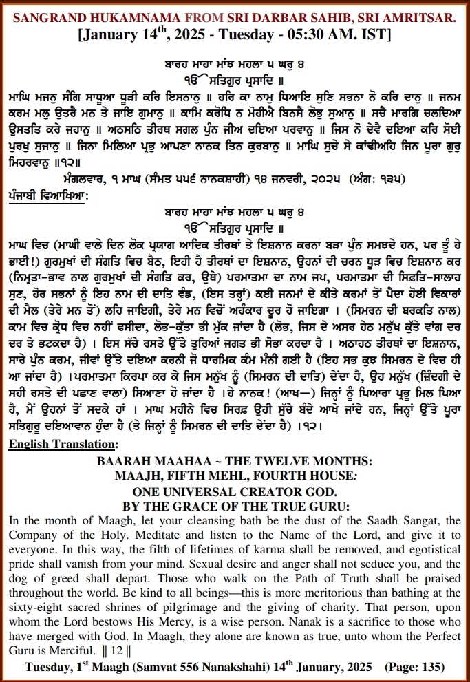 Tuesday, 1st Maagh (Samvat 556 Nanakshahi)