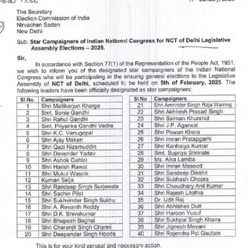 5 ਫਰਵਰੀ ਨੂੰ ਹੋਣ ਵਾਲੀਆਂ ਦਿੱਲੀ ਵਿਧਾਨ ਸਭਾ ਦੀਆਂ ਚੋਣਾਂ ਦੇ ਮੱਦੇਨਜ਼ਰ ਕਾਂਗਰਸ ਨੇ ਆਪਣੇ ਸਟਾਰ ਪ੍ਰਚਾਰਕਾਂ ਦੀ ਸੂਚੀ ਜਾਰੀ ਕਰ ਦਿੱਤੀ ਹੈ। ਪਰ ਇਸ ਸੂਚੀ ਵਿੱਚ ਸਾਬਕਾ ਕ੍ਰਿਕਟ ਅਤੇ ਸਾਬਕਾ ਪ੍ਰਧਾਨ ਨਵਜੋਤ ਸਿੰਘ ਸਿੱਧੂ ਦਾ ਨਾਮ ਨਹੀਂ ਹੈ।ਇਹ ਪਹਿਲੀ ਵਾਰ ਨਹੀਂ ਹੈ ਕਿ ਸਿੱਧੂ ਦਾ ਨਾਮ ਸਟਾਰ ਪ੍ਰਚਾਰਕਾਂ ਦੀ ਸੂਚੀ ਵਿੱਚ ਸ਼ਾਮਲ ਨਹੀਂ ਕੀਤਾ ਗਿਆ ਹੈ। ਪਹਿਲਾਂ ਉਹ ਵਿਧਾਨ ਸਭਾ ਚੋਣ ਅਤੇ ਪੰਜਾਬ ਵਿੱਚ ਜ਼ਿਮਨੀ ਚੋਣਾਂ ਤੋਂ ਵੀ ਦੂਰ ਸਨ। ਸੂਚੀ ‘ਚ ਸਭ ਤੋਂ ਉੱਪਰ ਨਾਂ EX CM ਚਰਨਜੀਤ ਚੰਨੀ ਦੂਸਰੇ ਨੰਬਰ ਤੇ ਪੰਜਾਬ ਕਾਂਗਰਸ ਦੇ ਪ੍ਰਧਾਨ ਅਤੇ ਲੁਧਿਆਣਾ ਦੇ ਸੰਸਦ ਅਮਰਿੰਦਰ ਸਿੰਘ ਰਾਜਾ ਵੜਿੰਗ ਅਤੇ ਸੁਖਪਾਲ ਸਿੰਘ ਖਹਿਰਾ ਦਾ ਨਾਮ ਸ਼ਾਮਲ ਹੈ।