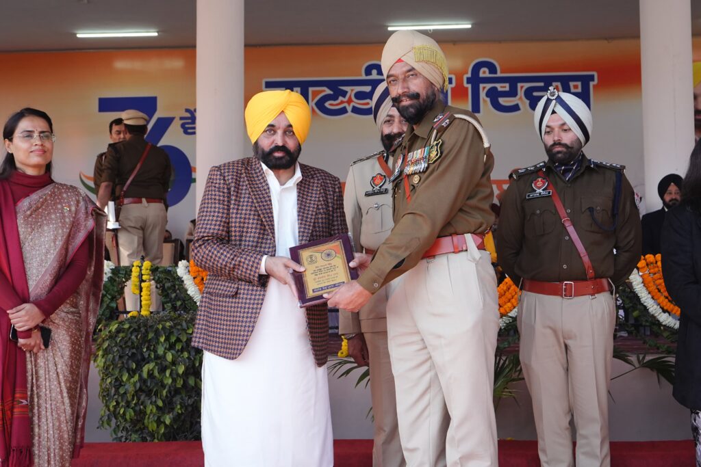 ਇਸ ਸਮਾਗਮ ਦੌਰਾਨ ਭਗਵੰਤ ਸਿੰਘ ਮਾਨ ਨੇ ਸਹਾਇਕ ਸਬ ਇੰਸਪੈਕਟਰ ਮੰਨਾ ਸਿੰਘ ਅਤੇ ਰਜਿੰਦਰ ਸਿੰਘ, ਲੇਡੀ ਸੀਨੀਅਰ ਕਾਂਸਟੇਬਲ ਕੁਲਵਿੰਦਰ ਕੌਰ, ਹੋਮ ਗਾਰਡ ਜਵਾਨ ਗੁਰਦੀਪ ਸਿੰਘ ਅਤੇ ਸੀਨੀਅਰ ਕਾਂਸਟੇਬਲ ਗੁਰਪ੍ਰੀਤ ਸਿੰਘ ਨੂੰ ਮੁੱਖ ਮੰਤਰੀ ਰਕਸ਼ਕ ਪਦਕ ਨਾਲ ਸਨਮਾਨਿਤ ਕੀਤਾ। ਉਨ੍ਹਾਂ ਨੇ ਸੁਪਰਡੈਂਟ ਆਫ਼ ਪੁਲਿਸ ਨਵਰੀਤ ਸਿੰਘ ਵਿਰਕ, ਜਸਮੀਤ ਸਿੰਘ, ਜੁਗਰਾਜ ਸਿੰਘ, ਦਿਗਵਿਜੇ ਕਪਿਲ ਅਤੇ ਹਰਿੰਦਰ ਸਿੰਘ, ਕਮਾਂਡੈਂਟ ਪਰਮਪਾਲ ਸਿੰਘ, ਏਆਈਜੀ ਅਵਨੀਤ ਕੌਰ ਸਿੱਧੂ, ਡਿਪਟੀ ਸੁਪਰਡੈਂਟ ਆਫ਼ ਪੁਲਿਸ ਸਮਰਪਾਲ ਸਿੰਘ, ਇੰਸਪੈਕਟਰ ਪਰਾਨ, ਪ੍ਰਿਤਪਾਲ ਸਿੰਘ, ਸੁਖਮਿੰਦਰ ਸਿੰਘ ਅਤੇ ਮਨਫੂਲ ਸਿੰਘ, ਸਬ ਇੰਸਪੈਕਟਰ ਰਾਜੇਸ਼ ਕੁਮਾਰ, ਪਰਮਿੰਦਰ ਸਿੰਘ, ਜੁਗਲ ਕਿਸ਼ੋਰ ਸ਼ਰਮਾ ਅਤੇ ਸੁਮਿਤ ਐਰੀ, ਸਹਾਇਕ ਸਬ ਇੰਸਪੈਕਟਰ ਹਰਪਾਲ ਸਿੰਘ, ਹੈੱਡ ਕਾਂਸਟੇਬਲ ਮੁਖਜੀਤ ਸਿੰਘ ਅਤੇ ਸੀ II ਸਿਮਰਨਜੀਤ ਸਿੰਘ ਸਮੇਤ ਪੁਲਿਸ ਮੁਲਾਜ਼ਮਾਂ ਨੂੰ ਡਿਊਟੀ ਪ੍ਰਤੀ ਸ਼ਾਨਦਾਰ ਸਮਰਪਣ ਲਈ ਮੁੱਖ ਮੰਤਰੀ ਮੈਡਲ ਨਾਲ ਸਨਮਾਨਿਤ ਕੀਤਾ।