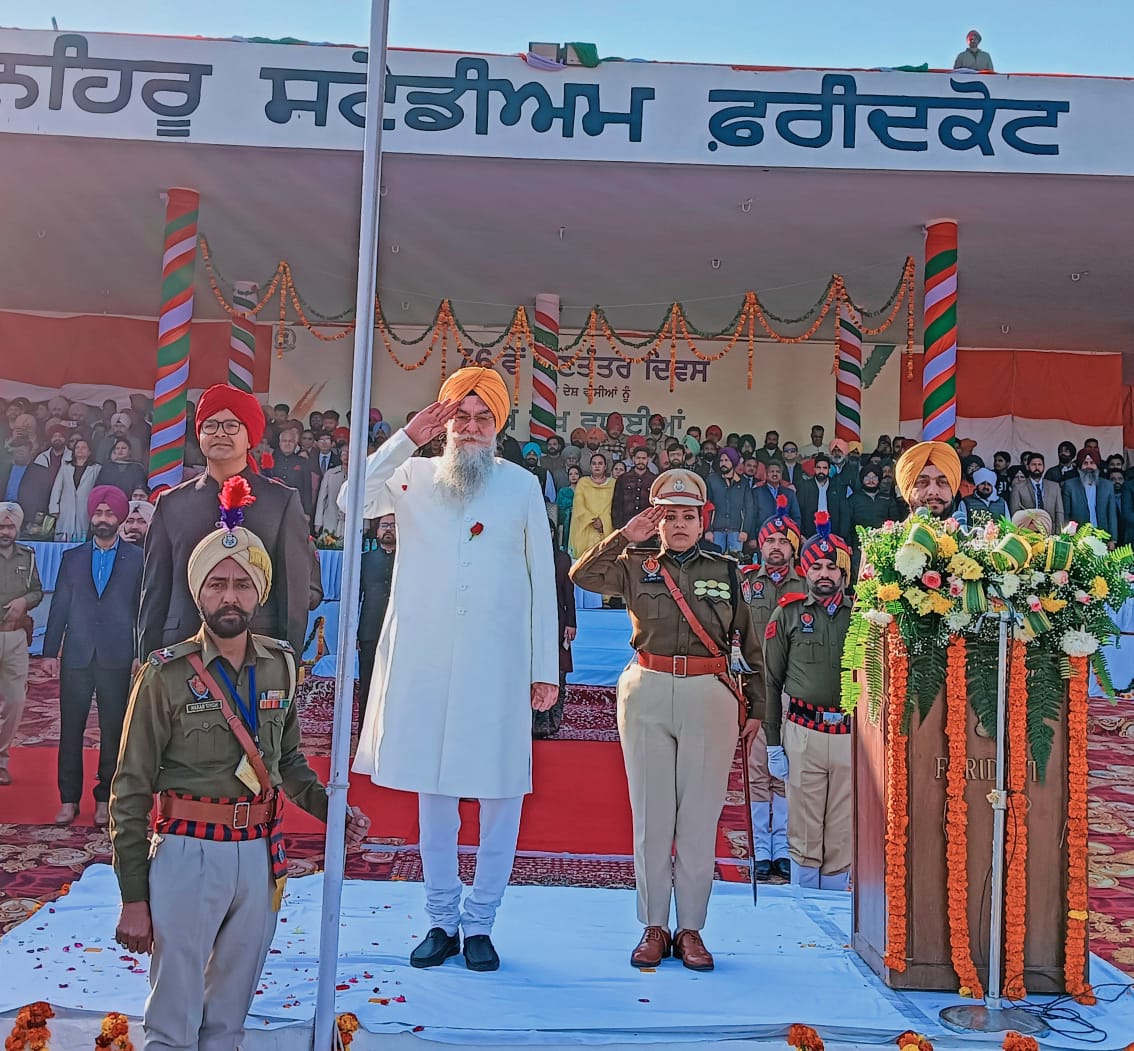 76ਵੇਂ ਆਜ਼ਾਦੀ ਦਿਵਸ ਦੇ ਸਬੰਧ ਵਿੱਚ ਇੱਥੋਂ ਦੇ ਨਹਿਰੂ ਸਟੇਡੀਅਮ ਵਿਖੇ ਜ਼ਿਲ੍ਹਾ ਪੱਧਰੀ ਗਣਤੰਤਰਤਾ ਦਿਵਸ ਸਮਾਰੋਹ ਦਾ ਆਯੋਜਨ ਕੀਤਾ ਗਿਆ ਜਿਸ ਵਿੱਚ ਪੰਜਾਬ ਵਿਧਾਨ ਸਭਾ ਦੇ ਸਪੀਕਰ ਸ. ਕੁਲਤਾਰ ਸਿੰਘ ਸੰਧਵਾਂ ਨੇ ਮੁੱਖ ਮਹਿਮਾਨ ਵਜੋਂ ਸ਼ਿਰਕਤ ਕੀਤੀ ਅਤੇ ਕੌਮੀ ਝੰਡਾ ਲਹਿਰਾਉਣ ਦੀ ਰਸਮ ਅਦਾ ਕੀਤੀ। ਇਸ ਮੌਕੇ ਐਮ.ਐਲ.ਏ ਫਰੀਦਕੋਟ ਸ. ਗੁਰਦਿੱਤ ਸਿੰਘ ਸੇਖੋਂ, ਐਮ.ਐਲ.ਏ ਜੈਤੋ ਸ. ਅਮੋਲਕ ਸਿੰਘ ਵਿਸ਼ੇਸ਼ ਤੌਰ ਤੇ ਹਾਜ਼ਰ ਸਨ। ਇਸ ਮੌਕੇ ਉਨ੍ਹਾਂ ਪਰੇਡ ਦਾ ਨਿਰੀਖਣ ਕੀਤਾ ਅਤੇ ਮਾਰਚ ਪਾਸਟ ਤੋਂ ਸਲਾਮੀ ਵੀ ਲਈ।