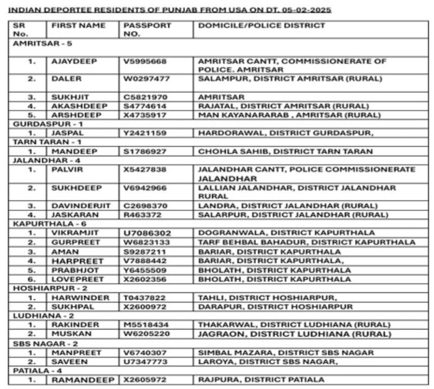 ਅਮਰੀਕਾ ਤੋਂ ਡਿਪੋਰਟ ਕਰਕੇ ਵਾਪਸ ਭੇਜੇ ਪੰਜਾਬੀਆਂ ਦੀ ਸੂਚੀ ਜਾਰੀ ਚੰਡੀਗੜ੍ਹ ਫਰਵਰੀ 5, 2025ਫਰਵਰੀ 5, 2025BolePunjab.comLeave a Comment on ਅਮਰੀਕਾ ਤੋਂ ਡਿਪੋਰਟ ਕਰਕੇ ਵਾਪਸ ਭੇਜੇ ਪੰਜਾਬੀਆਂ ਦੀ ਸੂਚੀ ਜਾਰੀ ਚੰਡੀਗੜ੍ਹ , 5 ਫਰਵਰੀ,ਬੋਲੇ ਪੰਜਾਬ ਬਿਊਰੋ :ਅਮਰੀਕਾ ਤੋਂ ਡਿਪੋਰਟ ਕਰਕੇ ਜਬਰੀ ਵਾਪਸ ਭੇਜੇ ਗਏ ਭਾਰਤੀਆਂ ‘ਚੋਂ ਪੰਜਾਬ ਨਾਲ ਸੰਬੰਧਤ ਨੌਜਵਾਨਾਂ ਦੀ ਸੂਚੀ ਜਾਰੀ ਕੀਤੀ ਗਈ ਹੈ।ਇਸ ਸੂਚੀ ਵਿਚ ਇਨ੍ਹਾਂ ਬਾਰੇ ਦੱਸਿਆ ਗਿਆ ਹੈ। Related Postਪੰਜਾਬ ਨੇ ਸਕੂਲ ਅਧਿਆਪਕਾਂ ਨੂੰ ਕਰੀਅਰ ਮੈਂਟਰ ਵਜੋਂ ਸਿਖਲਾਈ ਦੇਣ ਲਈ ਆਈ.ਆਈ.ਟੀ. ਮਦਰਾਸ ਨਾਲ ਹੱਥ ਮਿਲਾਇਆਦਸੰਬਰ 5, 2025ਪੰਜਾਬ ਵਿੱਚ ਜ਼ਿਲ੍ਹਾ ਪ੍ਰੀਸ਼ਦ ਚੋਣਾਂ ਨੂੰ ਲੈ ਕੇ ਕਾਂਗਰਸ ਨੇ ਹਾਈ ਕੋਰਟ ਦਾ ਦਰਵਾਜ਼ਾ ਖੜਕਾਇਆਦਸੰਬਰ 5, 2025ਚੰਡੀਗੜ੍ਹ ਪੁਲਿਸ ਦੇ ਸ਼ਰਾਬੀ ASI ਨੇ 10 ਵਾਹਨਾਂ ਨੂੰ ਮਾਰੀ ਟੱਕਰਦਸੰਬਰ 5, 2025Latest Newsਪੰਜਾਬ ਨੇ ਸਕੂਲ ਅਧਿਆਪਕਾਂ ਨੂੰ ਕਰੀਅਰ ਮੈਂਟਰ ਵਜੋਂ ਸਿਖਲਾਈ ਦੇਣ ਲਈ ਆਈ.ਆਈ.ਟੀ. ਮਦਰਾਸ ਨਾਲ ਹੱਥ ਮਿਲਾਇਆਸੰਸਦ ਮੈਂਬਰ ਸ਼੍ਰੀ ਮਨੀਸ਼ ਤਿਵਾੜੀ ਨੇ ਲੋਕ ਸਭਾ ਵਿੱਚ ਹਰਿਆਣਾ, ਪੰਜਾਬ ਅਤੇ ਹਿਮਾਚਲ ਪ੍ਰਦੇਸ਼ ਦੇ ਡੈਮਾਂ ਦੀ ਡੀ-ਸਿਲਟਿੰਗ ਅਤੇ ਘਟਦੀ ਸਟੋਰੇਜ ਸਮਰੱਥਾ ਦਾ ਮੁੱਦਾ ਉਠਾਇਆਮੁੱਖ ਪ੍ਰਸ਼ਾਸ਼ਕ ਪੁੱਡਾ ਮੈਡਮ ਨੀਰੂ ਕਤਿਆਲ ਗੁਪਤਾ ਦੇ ਦਫਤਰ ਪੁੱਡਾ ਭਵਨ ਮੋਹਾਲੀ ਵਿਖੇ ਲੜੀਵਾਰ ਭੁੱਖ ਹੜਤਾਲਪੰਜਾਬ ਵਿੱਚ ਜ਼ਿਲ੍ਹਾ ਪ੍ਰੀਸ਼ਦ ਚੋਣਾਂ ਨੂੰ ਲੈ ਕੇ ਕਾਂਗਰਸ ਨੇ ਹਾਈ ਕੋਰਟ ਦਾ ਦਰਵਾਜ਼ਾ ਖੜਕਾਇਆਬਿਜਲੀ ਸੋਧ ਬਿਲ ਤੇ ਨਵੇਂ ਬੀਜ ਬਿੱਲ ਖਿਲਾਫ ਕਿਰਤੀ ਕਿਸਾਨ ਮੋਰਚਾ ਦੀ ਹੋਈ ਮੀਟਿੰਗPreviousNextLatest Newsਪੰਜਾਬ ਨੇ ਸਕੂਲ ਅਧਿਆਪਕਾਂ ਨੂੰ ਕਰੀਅਰ ਮੈਂਟਰ ਵਜੋਂ ਸਿਖਲਾਈ ਦੇਣ ਲਈ ਆਈ.ਆਈ.ਟੀ. ਮਦਰਾਸ ਨਾਲ ਹੱਥ ਮਿਲਾਇਆਸੰਸਦ ਮੈਂਬਰ ਸ਼੍ਰੀ ਮਨੀਸ਼ ਤਿਵਾੜੀ ਨੇ ਲੋਕ ਸਭਾ ਵਿੱਚ ਹਰਿਆਣਾ, ਪੰਜਾਬ ਅਤੇ ਹਿਮਾਚਲ ਪ੍ਰਦੇਸ਼ ਦੇ ਡੈਮਾਂ ਦੀ ਡੀ-ਸਿਲਟਿੰਗ ਅਤੇ ਘਟਦੀ ਸਟੋਰੇਜ ਸਮਰੱਥਾ ਦਾ ਮੁੱਦਾ ਉਠਾਇਆਮੁੱਖ ਪ੍ਰਸ਼ਾਸ਼ਕ ਪੁੱਡਾ ਮੈਡਮ ਨੀਰੂ ਕਤਿਆਲ ਗੁਪਤਾ ਦੇ ਦਫਤਰ ਪੁੱਡਾ ਭਵਨ ਮੋਹਾਲੀ ਵਿਖੇ ਲੜੀਵਾਰ ਭੁੱਖ ਹੜਤਾਲਪੰਜਾਬ ਵਿੱਚ ਜ਼ਿਲ੍ਹਾ ਪ੍ਰੀਸ਼ਦ ਚੋਣਾਂ ਨੂੰ ਲੈ ਕੇ ਕਾਂਗਰਸ ਨੇ ਹਾਈ ਕੋਰਟ ਦਾ ਦਰਵਾਜ਼ਾ ਖੜਕਾਇਆਬਿਜਲੀ ਸੋਧ ਬਿਲ ਤੇ ਨਵੇਂ ਬੀਜ ਬਿੱਲ ਖਿਲਾਫ ਕਿਰਤੀ ਕਿਸਾਨ ਮੋਰਚਾ ਦੀ ਹੋਈ ਮੀਟਿੰਗਪਾਈਟੈਕਸ ਵਿਖੇ ਅਪਾਹਜਾਂ ਅਤੇ ਬਜ਼ੁਰਗਾਂ ਲਈ ਵ੍ਹੀਲਚੇਅਰ ਦੀ ਸਹੂਲਤਚੰਡੀਗੜ੍ਹ ਪੁਲਿਸ ਦੇ ਸ਼ਰਾਬੀ ASI ਨੇ 10 ਵਾਹਨਾਂ ਨੂੰ ਮਾਰੀ ਟੱਕਰਪੰਜਾਬ ਵਿੱਚ ਰੇਲਵੇ ਪਟੜੀਆਂ ‘ਤੇ ਕਿਸਾਨਾਂ ਅਤੇ ਪੁਲਿਸ ਵਿਚਕਾਰ ਝੜਪਾਂਦੇਸ਼ ਭਗਤ ਯੂਨੀਵਰਸਿਟੀ ਨੇ ਕਰਵਾਈ ਅੰਤਰਰਾਸ਼ਟਰੀ ਕਾਨਫਰੰਸ ਅਤੇ ਅਗਾਂਹਵਧੂ ਕਿਸਾਨ ਮਿਲਣੀਆਮ ਆਦਮੀ ਪਾਰਟੀ ਵੱਲੋਂ ਨਾਮਜ਼ਦਗੀ ਪੱਤਰ ਦਾਖਲ ਕਰਨ ਦੌਰਾਨ ਸ਼ਰੇਆਮ ਗੁੰਡਾਗਰਦੀ ਦੀਆਂ ਘਟਨਾਵਾਂ ਅਤੇ ਚੋਣ ਪ੍ਰਕਿਰਿਆ ਦੌਰਾਨ ਸਰਕਾਰੀ ਮਸ਼ੀਨਰੀ ਦੀ ਕਥਿਤ ਦੁਰਵਰਤੋਂ ਲੋਕਤੰਤਰ ਲਈ ਖ਼ਤਰਨਾਕ – ਕੈਂਥ ਪੁਲਿਸ ਮੁਲਾਜ਼ਮਾਂ ‘ਤੇ ਵਰਦੀ ‘ਚ ਰੀਲਾਂ ਬਣਾਉਣ ‘ਤੇ ਲੱਗੀ ਪਾਬੰਦੀਜਲੰਧਰ ‘ਚ ਰੋਡਵੇਜ਼ ਬੱਸ ਨੇ ਸਕੂਟਰ ਨੂੰ ਟੱਕਰ ਮਾਰੀ, ਪੁੱਤ ਦੀ ਮੌਤ ਪਿਤਾ ਗੰਭੀਰ ਜ਼ਖ਼ਮੀ PreviousNext