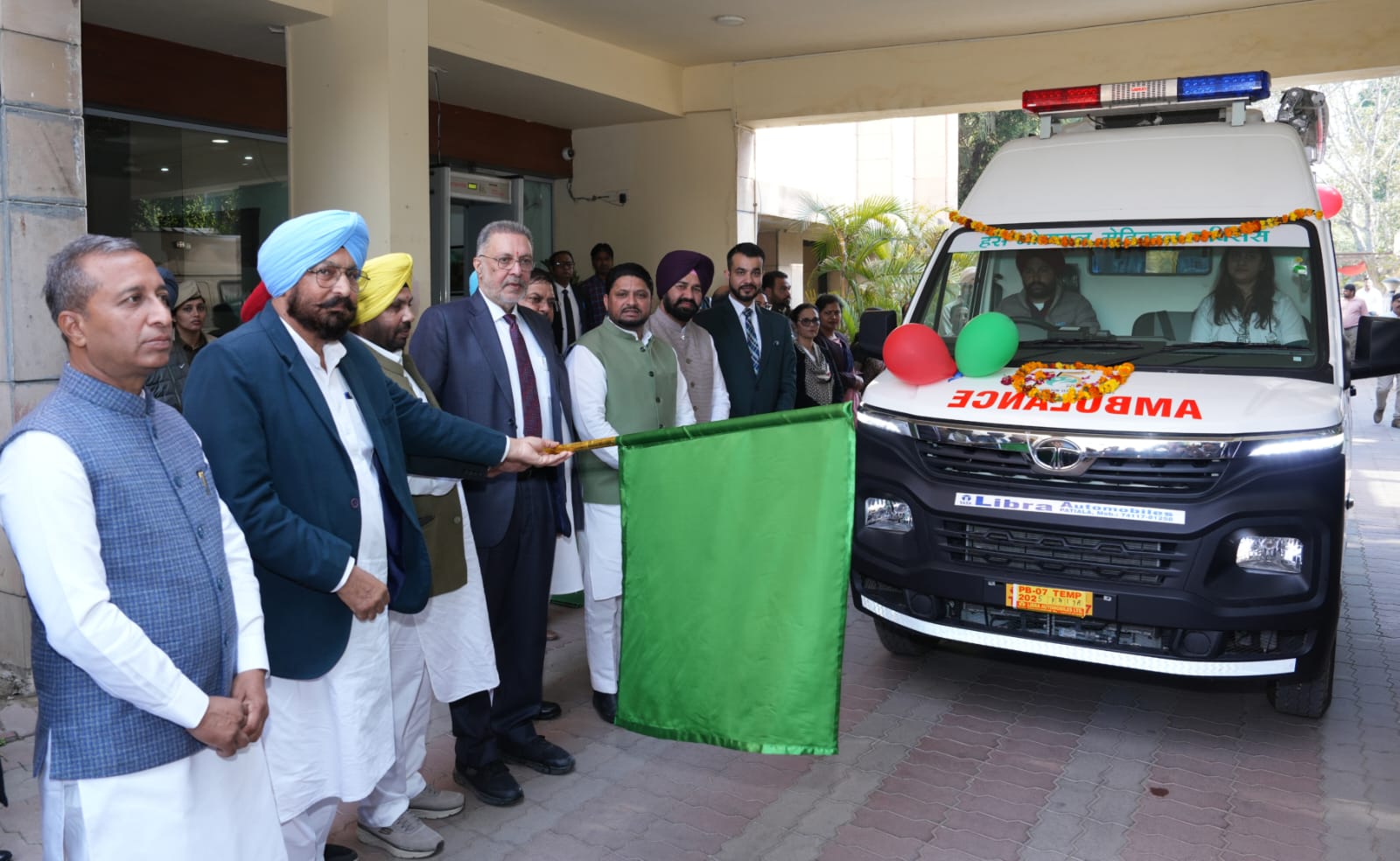 ਮੁੱਖ ਮੰਤਰੀ ਭਗਵੰਤ ਸਿੰਘ ਮਾਨ ਦੀ ਸੋਚ ਅਨੁਸਾਰ ਪੇਂਡੂ ਅਤੇ ਪਛੜੇ ਖੇਤਰਾਂ ਵਿੱਚ ਸਿਹਤ ਸੰਭਾਲ ਪਹੁੰਚ ਨੂੰ ਹੋਰ ਮਜ਼ਬੂਤ ਕਰਨ ਦੀ ਦਿਸ਼ਾ ਵਿੱਚ ਇੱਕ ਹੋਰ ਮਹੱਤਵਪੂਰਨ ਕਦਮ ਚੁੱਕਦਿਆਂ ਪੰਜਾਬ ਦੇ ਸਿਹਤ ਅਤੇ ਪਰਿਵਾਰ ਭਲਾਈ ਮੰਤਰੀ ਡਾ. ਬਲਬੀਰ ਸਿੰਘ ਨੇ ਅੱਜ ਇੱਥੇ ਪੰਜਾਬ ਭਵਨ ਤੋਂ 10 ਮੋਬਾਈਲ ਮੈਡੀਕਲ ਯੂਨਿਟਾਂ (ਐਮ.ਐਮ.ਯੂਜ਼.) ਨੂੰ ਹਰੀ ਝੰਡੀ ਦੇ ਕੇ ਰਵਾਨਾ ਕੀਤਾ। ਇਸ ਮੌਕੇ ਉਨ੍ਹਾਂ ਨਾਲ ਪੰਜਾਬ ਦੇ ਬਿਜਲੀ ਮੰਤਰੀ ਹਰਭਜਨ ਸਿੰਘ ਈਟੀਓ ਅਤੇ ਮਾਨਸਾ ਤੇ ਬਠਿੰਡਾ ਜ਼ਿਲ੍ਹਿਆਂ ਦੇ ਵਿਧਾਇਕ ਵੀ ਮੌਜੂਦ ਸਨ।