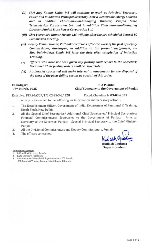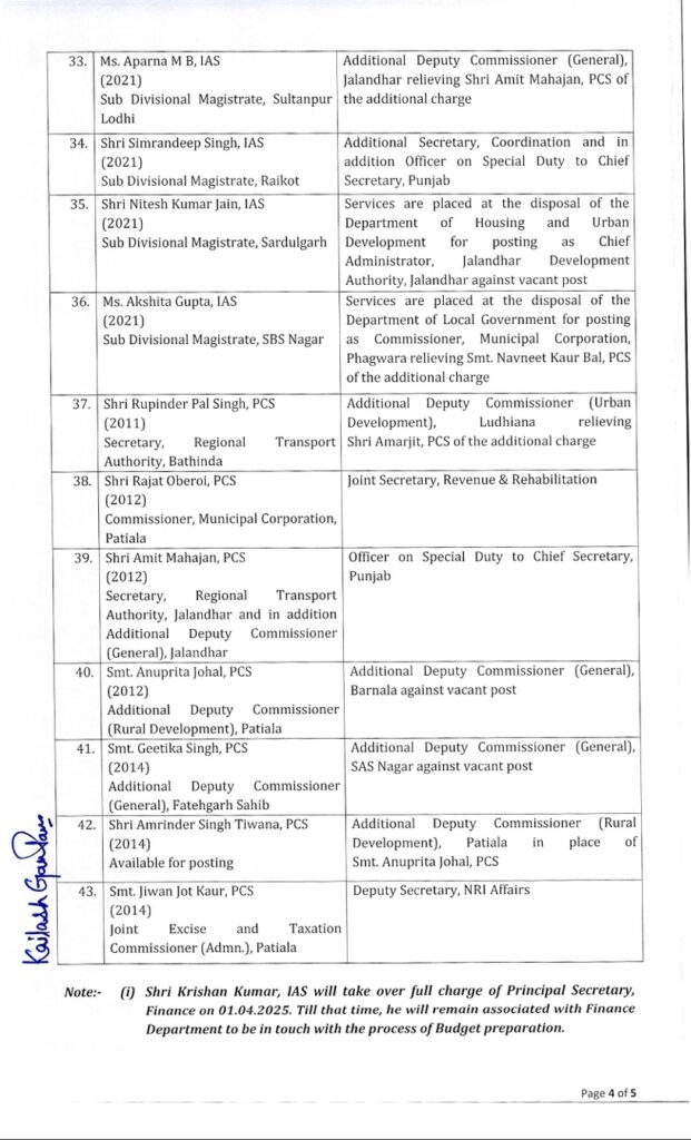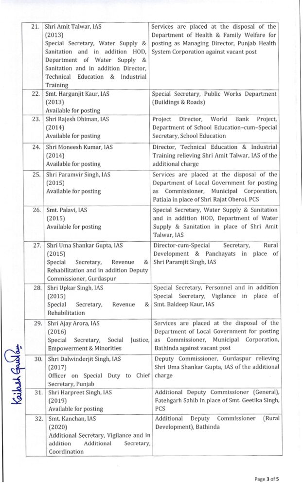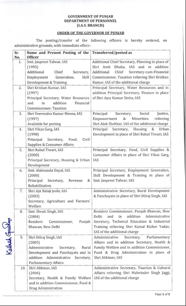 ਪੰਜਾਬ ਸਰਕਾਰ ਵੱਲੋਂ IAS ਤੇ PCS ਅਫ਼ਸਰਾਂ ਦਾ ਤਬਾਦਲਾ ਚੰਡੀਗੜ੍ਹ ਤਬਾਦਲੇ ਮਾਰਚ 3, 2025ਮਾਰਚ 3, 2025BolePunjab.comLeave a Comment on ਪੰਜਾਬ ਸਰਕਾਰ ਵੱਲੋਂ IAS ਤੇ PCS ਅਫ਼ਸਰਾਂ ਦਾ ਤਬਾਦਲਾ ਚੰਡੀਗੜ੍ਹ 3 ਮਾਰਚ,ਬੋਲੇ ਪੰਜਾਬ ਬਿਊਰੋ : ਪੰਜਾਬ ਸਰਕਾਰ ਦੇ ਵੱਲੋਂ 43 ਆਈਏਐਸ ਤੇ ਪੀਸੀਐਸ ਅਫਸਰਾਂ ਦਾ ਤਬਾਦਲਾ ਕੀਤਾ ਗਿਆ ਹੈ। ਦੱਸ ਦਈਏ ਕਿ ਬੀਤੀ ਰਾਤ ਵੀ ਦੋ ਸੀਨੀਅਰ ਪੀਪੀਐਸ ਅਫਸਰਾਂ ਦਾ ਸਰਕਾਰ ਦੇ ਵੱਲੋਂ ਤਬਾਦਲਾ ਕੀਤਾ ਗਿਆ ਸੀ। Related PostBreaking : ਮੋਹਾਲੀ ‘ਚ ਕਬੱਡੀ ਟੂਰਨਾਮੈਂਟ ਦੌਰਾਨ ਗੋਲੀਬਾਰੀ, ਪ੍ਰਮੋਟਰ ਜ਼ਖਮੀ ਦਸੰਬਰ 15, 2025ਪੰਜਾਬ ਸਰਕਾਰ ਵਲੋਂ ਵੱਧ ਰਹੀ ਠੰਢ ਦੇ ਮੱਦੇਨਜ਼ਰ ਸਕੂਲਾਂ ‘ਚ ਛੁੱਟੀਆਂ ਦਾ ਐਲਾਨਦਸੰਬਰ 15, 2025ਪੰਜਾਬ ਸਰਕਾਰ ਵੱਲੋਂ ਆਈ.ਆਈ.ਟੀ ਰੋਪੜ ਦੇ ਸਹਿਯੋਗ ਨਾਲ ਮਹੱਤਵਪੂਰਨ ਜਲ ਅਧਿਐਨ ਲਈ 1.61 ਕਰੋੜ ਰੁਪਏ ਦੀ ਪ੍ਰਵਾਨਗੀ: ਹਰਪਾਲ ਸਿੰਘ ਚੀਮਾਦਸੰਬਰ 15, 2025Latest Newsਪ੍ਰਿੰਸੀਪਲ ਦੀ ਵੀਡੀਓ ਵਾਇਰਲ ਦਾ ਮਾਮਲਾ ਪੁੱਜਾ ਸਹਾਇਕ ਡਾਇਰੈਕਟਰ ਦੇ ਦਰਬਾਰ Breaking : ਮੋਹਾਲੀ ‘ਚ ਕਬੱਡੀ ਟੂਰਨਾਮੈਂਟ ਦੌਰਾਨ ਗੋਲੀਬਾਰੀ, ਪ੍ਰਮੋਟਰ ਜ਼ਖਮੀ ਪੰਜਾਬ ਸਰਕਾਰ ਵਲੋਂ ਵੱਧ ਰਹੀ ਠੰਢ ਦੇ ਮੱਦੇਨਜ਼ਰ ਸਕੂਲਾਂ ‘ਚ ਛੁੱਟੀਆਂ ਦਾ ਐਲਾਨਡੀਬੀਯੂ ਦੇ ਚਾਂਸਲਰ ਡਾ. ਜ਼ੋਰਾ ਸਿੰਘ ਆਲ ਇੰਡੀਆ ਮੀਡੀਆ ਮੀਟ ਦੌਰਾਨ ਪੰਜਾਬ ਦੇ ਰਾਜਪਾਲ ਵੱਲੋਂ ਸਨਮਾਨਿਤਪੰਜਾਬ ਸਰਕਾਰ ਵੱਲੋਂ ਆਈ.ਆਈ.ਟੀ ਰੋਪੜ ਦੇ ਸਹਿਯੋਗ ਨਾਲ ਮਹੱਤਵਪੂਰਨ ਜਲ ਅਧਿਐਨ ਲਈ 1.61 ਕਰੋੜ ਰੁਪਏ ਦੀ ਪ੍ਰਵਾਨਗੀ: ਹਰਪਾਲ ਸਿੰਘ ਚੀਮਾPreviousNextLatest Newsਪ੍ਰਿੰਸੀਪਲ ਦੀ ਵੀਡੀਓ ਵਾਇਰਲ ਦਾ ਮਾਮਲਾ ਪੁੱਜਾ ਸਹਾਇਕ ਡਾਇਰੈਕਟਰ ਦੇ ਦਰਬਾਰ Breaking : ਮੋਹਾਲੀ ‘ਚ ਕਬੱਡੀ ਟੂਰਨਾਮੈਂਟ ਦੌਰਾਨ ਗੋਲੀਬਾਰੀ, ਪ੍ਰਮੋਟਰ ਜ਼ਖਮੀ ਪੰਜਾਬ ਸਰਕਾਰ ਵਲੋਂ ਵੱਧ ਰਹੀ ਠੰਢ ਦੇ ਮੱਦੇਨਜ਼ਰ ਸਕੂਲਾਂ ‘ਚ ਛੁੱਟੀਆਂ ਦਾ ਐਲਾਨਡੀਬੀਯੂ ਦੇ ਚਾਂਸਲਰ ਡਾ. ਜ਼ੋਰਾ ਸਿੰਘ ਆਲ ਇੰਡੀਆ ਮੀਡੀਆ ਮੀਟ ਦੌਰਾਨ ਪੰਜਾਬ ਦੇ ਰਾਜਪਾਲ ਵੱਲੋਂ ਸਨਮਾਨਿਤਪੰਜਾਬ ਸਰਕਾਰ ਵੱਲੋਂ ਆਈ.ਆਈ.ਟੀ ਰੋਪੜ ਦੇ ਸਹਿਯੋਗ ਨਾਲ ਮਹੱਤਵਪੂਰਨ ਜਲ ਅਧਿਐਨ ਲਈ 1.61 ਕਰੋੜ ਰੁਪਏ ਦੀ ਪ੍ਰਵਾਨਗੀ: ਹਰਪਾਲ ਸਿੰਘ ਚੀਮਾਵਿਜੀਲੈਂਸ ਬਿਊਰੋ ਵੱਲੋਂ ਨਵੰਬਰ ਦੌਰਾਨ 8 ਰਿਸ਼ਵਤਖੋਰੀ ਦੇ ਕੇਸਾਂ ਵਿੱਚ 11 ਵਿਅਕਤੀ ਰੰਗੇ ਹੱਥੀਂ ਕਾਬੂਪਰਮਜੀਤ ਸਿੰਘ ਕੈਂਥ ਨੇ ਭਾਜਪਾ ਦੀ ਉੱਚ-ਪੱਧਰੀ ਲੀਡਰਸ਼ਿਪ ਵੱਲੋਂ ਨਿਤਿਨ ਨਬੀਨ ਨੂੰ ਕੌਮੀ ਕਾਰਜਕਾਰੀ ਪ੍ਰਧਾਨ ਨਿਯੁਕਤ ਕਰਨ ‘ਤੇ ਕੀਤਾ ਸਵਾਗਤਗੁ: ਸਿੰਘ ਸ਼ਹੀਦਾਂ ਸੋਹਾਣਾ ਵਿਖੇ ਸ੍ਰੀ ਗੁਰੁ ਗੋਬਿੰਦ ਸਿੰਘ ਜੀ ਦੇ ਚੌਥੇ ਸਾਹਿਬਜ਼ਾਦੇ ਬਾਬਾ ਫਤਹਿ ਸਿੰਘ ਜੀ ਦਾ ਜਨਮ ਦਿਹਾੜਾ ਸ਼ਰਧਾ ਪੂਰਵਕ ਮਨਾਇਆ ਗਿਆ2300 ਕਰੋੜ ਰੁਪਏ ਦੀ ਫਰਜ਼ੀ ਕ੍ਰਿਪਟੋ ਕਰੰਸੀ ਦਾ ਘੁਟਾਲਾਹਾਈਕੋਰਟ ਦੇ ਵਕੀਲਾਂ ਵੱਲੋਂ ਹੜਤਾਲ ਦਾ ਐਲਾਨ ਕੰਗਨਾ ਰਣੌਤ ਵਿਰੁੱਧ ਮਾਣਹਾਨੀ ਦਾ ਮਾਮਲਾ, ਸੁਣਵਾਈ ਹੁਣ 5 ਜਨਵਰੀ ਨੂੰ“ਮੋਦੀ, ਤੁਹਾਡੀ ਕਬਰ ਪੁੱਟ ਦਿੱਤੀ ਜਾਵੇਗੀ” ਦੇ ਨਾਅਰੇ ‘ਤੇ ਸੰਸਦ ਵਿੱਚ ਹੰਗਾਮਾ,ਕਾਰਵਾਈ ਮੁਲਤਵੀPreviousNext