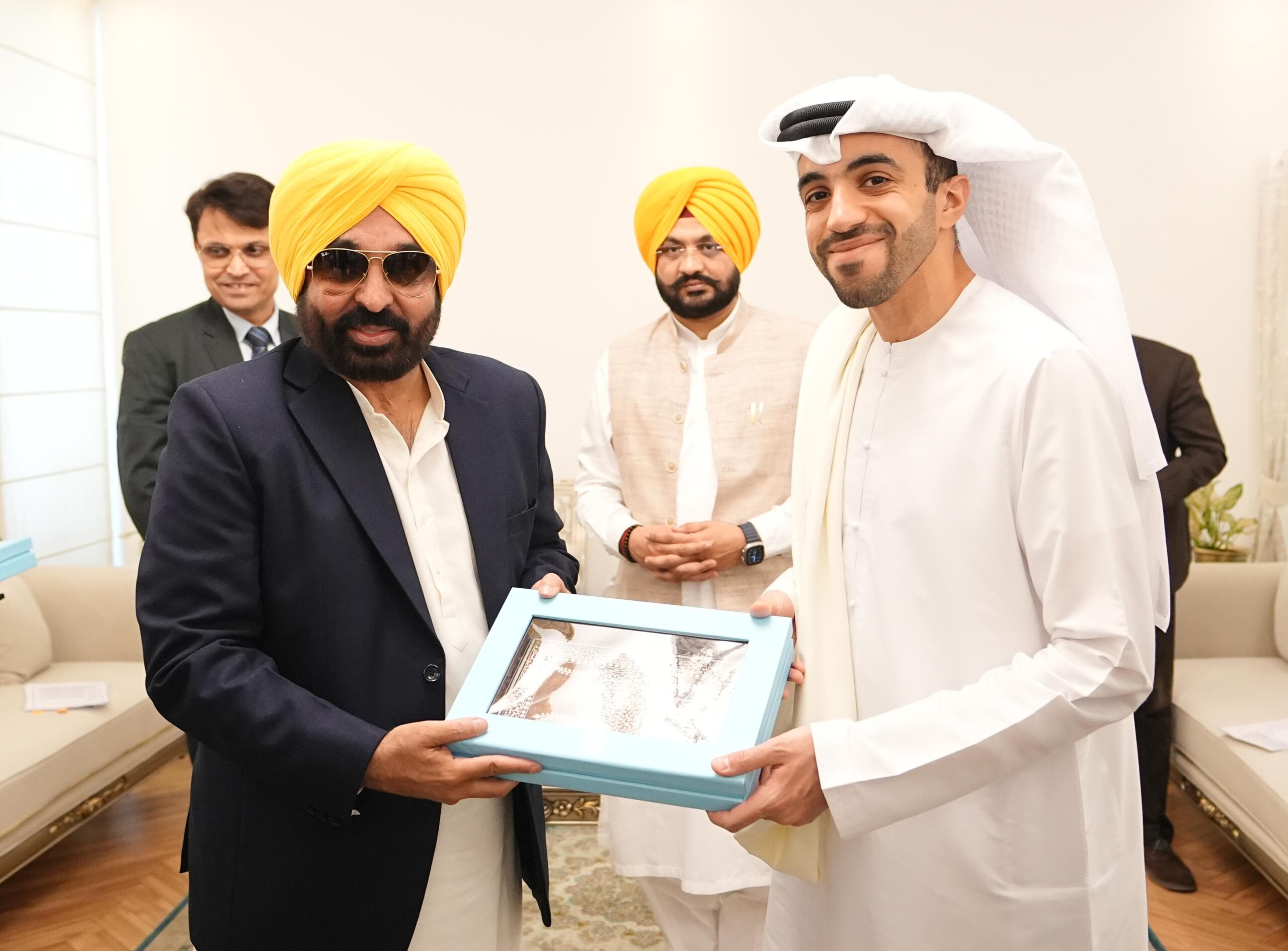 ਪੰਜਾਬ ਦੇ ਮੁੱਖ ਮੰਤਰੀ ਭਗਵੰਤ ਸਿੰਘ ਮਾਨ ਨੇ ਭਾਰਤ ਵਿੱਚ ਯੂ.ਏ.ਈ. ਦੇ ਰਾਜਦੂਤ ਡਾ. ਅਬਦੁਲਨਾਸਰ ਜਮਾਲ ਅਲਸ਼ਾਲੀ ਨਾਲ ਮੁਲਾਕਾਤ ਕੀਤੀ, ਜਿਸ ਦੌਰਾਨ ਪੰਜਾਬ ਅਤੇ ਯੂ.ਏ.ਈ. ਵਿਚਕਾਰ ਦੁਵੱਲੇ ਵਪਾਰ, ਨਿਵੇਸ਼ ਅਤੇ ਸੱਭਿਆਚਾਰਕ ਆਦਾਨ-ਪ੍ਰਦਾਨ ਨੂੰ ਮਜ਼ਬੂਤ ਕਰਨ ਦੇ ਤਰੀਕਿਆਂ ਬਾਰੇ ਚਰਚਾ ਕੀਤੀ ਗਈ।