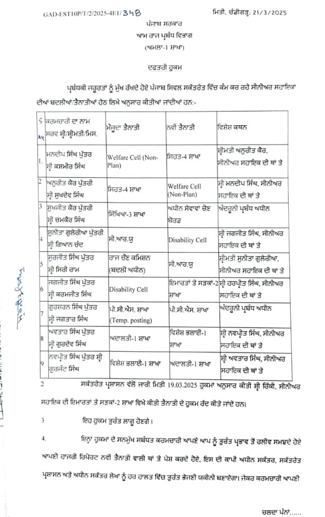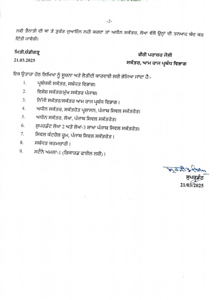 ਸਿਵਲ ਸਕੱਤਰੇਤ ਚੰਡੀਗੜ੍ਹ ਚ 9 ਸੀਨੀਅਰ ਸਹਾਇਕਾਂ ਦੇ ਤਬਾਦਲੇ ਚੰਡੀਗੜ੍ਹ ਮਾਰਚ 21, 2025ਮਾਰਚ 21, 2025BolePunjab.comLeave a Comment on ਸਿਵਲ ਸਕੱਤਰੇਤ ਚੰਡੀਗੜ੍ਹ ਚ 9 ਸੀਨੀਅਰ ਸਹਾਇਕਾਂ ਦੇ ਤਬਾਦਲੇ ਚੰਡੀਗੜ੍ਹ 21 ਮਾਰਚ ,ਬੋਲੇ ਪੰਜਾਬ ਬਿਊਰੋ : ਪੰਜਾਬ ਸਰਕਾਰ ਨੇ ਸਿਵਲ ਸਕੱਤਰੇਤ ਚੰਡੀਗੜ੍ਹ ਚ 9 ਸੀਨੀਅਰ ਸਹਾਇਕਾਂ ਦੇ ਤਬਾਦਲੇ ਕੀਤੇ ਗਏ ਹਨ Related Postਪੰਜਾਬ ਨੇ ਸਕੂਲ ਅਧਿਆਪਕਾਂ ਨੂੰ ਕਰੀਅਰ ਮੈਂਟਰ ਵਜੋਂ ਸਿਖਲਾਈ ਦੇਣ ਲਈ ਆਈ.ਆਈ.ਟੀ. ਮਦਰਾਸ ਨਾਲ ਹੱਥ ਮਿਲਾਇਆਦਸੰਬਰ 5, 2025ਪੰਜਾਬ ਵਿੱਚ ਜ਼ਿਲ੍ਹਾ ਪ੍ਰੀਸ਼ਦ ਚੋਣਾਂ ਨੂੰ ਲੈ ਕੇ ਕਾਂਗਰਸ ਨੇ ਹਾਈ ਕੋਰਟ ਦਾ ਦਰਵਾਜ਼ਾ ਖੜਕਾਇਆਦਸੰਬਰ 5, 2025ਚੰਡੀਗੜ੍ਹ ਪੁਲਿਸ ਦੇ ਸ਼ਰਾਬੀ ASI ਨੇ 10 ਵਾਹਨਾਂ ਨੂੰ ਮਾਰੀ ਟੱਕਰਦਸੰਬਰ 5, 2025Latest Newsਪੰਜਾਬ ਨੇ ਸਕੂਲ ਅਧਿਆਪਕਾਂ ਨੂੰ ਕਰੀਅਰ ਮੈਂਟਰ ਵਜੋਂ ਸਿਖਲਾਈ ਦੇਣ ਲਈ ਆਈ.ਆਈ.ਟੀ. ਮਦਰਾਸ ਨਾਲ ਹੱਥ ਮਿਲਾਇਆਸੰਸਦ ਮੈਂਬਰ ਸ਼੍ਰੀ ਮਨੀਸ਼ ਤਿਵਾੜੀ ਨੇ ਲੋਕ ਸਭਾ ਵਿੱਚ ਹਰਿਆਣਾ, ਪੰਜਾਬ ਅਤੇ ਹਿਮਾਚਲ ਪ੍ਰਦੇਸ਼ ਦੇ ਡੈਮਾਂ ਦੀ ਡੀ-ਸਿਲਟਿੰਗ ਅਤੇ ਘਟਦੀ ਸਟੋਰੇਜ ਸਮਰੱਥਾ ਦਾ ਮੁੱਦਾ ਉਠਾਇਆਮੁੱਖ ਪ੍ਰਸ਼ਾਸ਼ਕ ਪੁੱਡਾ ਮੈਡਮ ਨੀਰੂ ਕਤਿਆਲ ਗੁਪਤਾ ਦੇ ਦਫਤਰ ਪੁੱਡਾ ਭਵਨ ਮੋਹਾਲੀ ਵਿਖੇ ਲੜੀਵਾਰ ਭੁੱਖ ਹੜਤਾਲਪੰਜਾਬ ਵਿੱਚ ਜ਼ਿਲ੍ਹਾ ਪ੍ਰੀਸ਼ਦ ਚੋਣਾਂ ਨੂੰ ਲੈ ਕੇ ਕਾਂਗਰਸ ਨੇ ਹਾਈ ਕੋਰਟ ਦਾ ਦਰਵਾਜ਼ਾ ਖੜਕਾਇਆਬਿਜਲੀ ਸੋਧ ਬਿਲ ਤੇ ਨਵੇਂ ਬੀਜ ਬਿੱਲ ਖਿਲਾਫ ਕਿਰਤੀ ਕਿਸਾਨ ਮੋਰਚਾ ਦੀ ਹੋਈ ਮੀਟਿੰਗPreviousNextLatest Newsਪੰਜਾਬ ਨੇ ਸਕੂਲ ਅਧਿਆਪਕਾਂ ਨੂੰ ਕਰੀਅਰ ਮੈਂਟਰ ਵਜੋਂ ਸਿਖਲਾਈ ਦੇਣ ਲਈ ਆਈ.ਆਈ.ਟੀ. ਮਦਰਾਸ ਨਾਲ ਹੱਥ ਮਿਲਾਇਆਸੰਸਦ ਮੈਂਬਰ ਸ਼੍ਰੀ ਮਨੀਸ਼ ਤਿਵਾੜੀ ਨੇ ਲੋਕ ਸਭਾ ਵਿੱਚ ਹਰਿਆਣਾ, ਪੰਜਾਬ ਅਤੇ ਹਿਮਾਚਲ ਪ੍ਰਦੇਸ਼ ਦੇ ਡੈਮਾਂ ਦੀ ਡੀ-ਸਿਲਟਿੰਗ ਅਤੇ ਘਟਦੀ ਸਟੋਰੇਜ ਸਮਰੱਥਾ ਦਾ ਮੁੱਦਾ ਉਠਾਇਆਮੁੱਖ ਪ੍ਰਸ਼ਾਸ਼ਕ ਪੁੱਡਾ ਮੈਡਮ ਨੀਰੂ ਕਤਿਆਲ ਗੁਪਤਾ ਦੇ ਦਫਤਰ ਪੁੱਡਾ ਭਵਨ ਮੋਹਾਲੀ ਵਿਖੇ ਲੜੀਵਾਰ ਭੁੱਖ ਹੜਤਾਲਪੰਜਾਬ ਵਿੱਚ ਜ਼ਿਲ੍ਹਾ ਪ੍ਰੀਸ਼ਦ ਚੋਣਾਂ ਨੂੰ ਲੈ ਕੇ ਕਾਂਗਰਸ ਨੇ ਹਾਈ ਕੋਰਟ ਦਾ ਦਰਵਾਜ਼ਾ ਖੜਕਾਇਆਬਿਜਲੀ ਸੋਧ ਬਿਲ ਤੇ ਨਵੇਂ ਬੀਜ ਬਿੱਲ ਖਿਲਾਫ ਕਿਰਤੀ ਕਿਸਾਨ ਮੋਰਚਾ ਦੀ ਹੋਈ ਮੀਟਿੰਗਪਾਈਟੈਕਸ ਵਿਖੇ ਅਪਾਹਜਾਂ ਅਤੇ ਬਜ਼ੁਰਗਾਂ ਲਈ ਵ੍ਹੀਲਚੇਅਰ ਦੀ ਸਹੂਲਤਚੰਡੀਗੜ੍ਹ ਪੁਲਿਸ ਦੇ ਸ਼ਰਾਬੀ ASI ਨੇ 10 ਵਾਹਨਾਂ ਨੂੰ ਮਾਰੀ ਟੱਕਰਪੰਜਾਬ ਵਿੱਚ ਰੇਲਵੇ ਪਟੜੀਆਂ ‘ਤੇ ਕਿਸਾਨਾਂ ਅਤੇ ਪੁਲਿਸ ਵਿਚਕਾਰ ਝੜਪਾਂਦੇਸ਼ ਭਗਤ ਯੂਨੀਵਰਸਿਟੀ ਨੇ ਕਰਵਾਈ ਅੰਤਰਰਾਸ਼ਟਰੀ ਕਾਨਫਰੰਸ ਅਤੇ ਅਗਾਂਹਵਧੂ ਕਿਸਾਨ ਮਿਲਣੀਆਮ ਆਦਮੀ ਪਾਰਟੀ ਵੱਲੋਂ ਨਾਮਜ਼ਦਗੀ ਪੱਤਰ ਦਾਖਲ ਕਰਨ ਦੌਰਾਨ ਸ਼ਰੇਆਮ ਗੁੰਡਾਗਰਦੀ ਦੀਆਂ ਘਟਨਾਵਾਂ ਅਤੇ ਚੋਣ ਪ੍ਰਕਿਰਿਆ ਦੌਰਾਨ ਸਰਕਾਰੀ ਮਸ਼ੀਨਰੀ ਦੀ ਕਥਿਤ ਦੁਰਵਰਤੋਂ ਲੋਕਤੰਤਰ ਲਈ ਖ਼ਤਰਨਾਕ – ਕੈਂਥ ਪੁਲਿਸ ਮੁਲਾਜ਼ਮਾਂ ‘ਤੇ ਵਰਦੀ ‘ਚ ਰੀਲਾਂ ਬਣਾਉਣ ‘ਤੇ ਲੱਗੀ ਪਾਬੰਦੀਜਲੰਧਰ ‘ਚ ਰੋਡਵੇਜ਼ ਬੱਸ ਨੇ ਸਕੂਟਰ ਨੂੰ ਟੱਕਰ ਮਾਰੀ, ਪੁੱਤ ਦੀ ਮੌਤ ਪਿਤਾ ਗੰਭੀਰ ਜ਼ਖ਼ਮੀ PreviousNext
