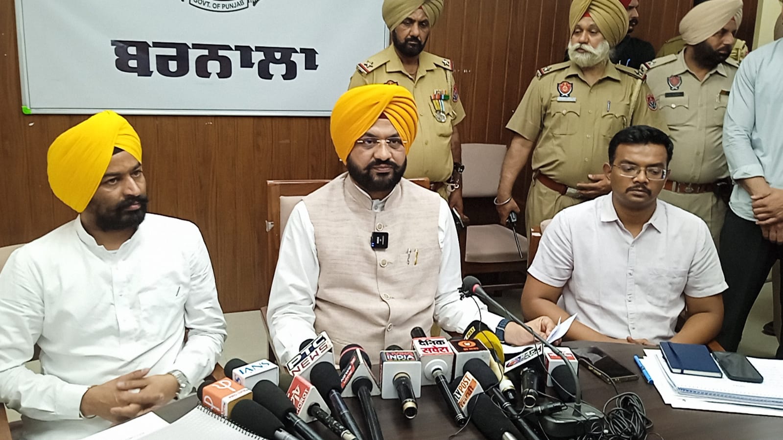 ਪੰਜਾਬ ਨੂੰ ਨਸ਼ਾ ਮੁਕਤ ਕਰਨ ਲਈ ਪੰਜਾਬ ਸਰਕਾਰ ਵੱਲੋਂ ਸ਼ੁਰੂ ਕੀਤੀ “ਯੁੱਧ ਨਸ਼ਿਆਂ ਵਿਰੁੱਧ” ਮੁਹਿੰਮ ਅਧੀਨ ਅੱਜ ਪੇਂਡੂ ਵਿਕਾਸ ਤੇ ਪੰਚਾਇਤ, ਉਦਯੋਗ ਤੇ ਵਣਜ, ਪੂੰਜੀ ਨਿਵੇਸ਼ ਪ੍ਰੋਤਸਾਹਨ, ਕਿਰਤ ਅਤੇ ਸੈਰ ਸਪਾਟਾ ਤੇ ਸੱਭਿਆਚਾਰਕ ਮਾਮਲਿਆਂ ਬਾਰੇ ਮੰਤਰੀ ਤਰੁਨਪ੍ਰੀਤ ਸਿੰਘ ਸੌਂਦ ਨੇ ਬਰਨਾਲਾ ਜ਼ਿਲ੍ਹਾ ਪ੍ਰਬੰਧਕੀ ਕੰਪਲੈਕਸ ਦੇ ਮੀਟਿੰਗ ਹਾਲ ਵਿੱਚ ਜ਼ਿਲ੍ਹੇ ਦੇ ਸਿਵਲ, ਪੁਲਿਸ ਪ੍ਰਸ਼ਾਸਨ ਤੇ ਵਿਭਾਗੀ ਅਧਿਕਾਰੀਆਂ ਨਾਲ ਅਹਿਮ ਮੀਟਿੰਗ ਕੀਤੀ।
