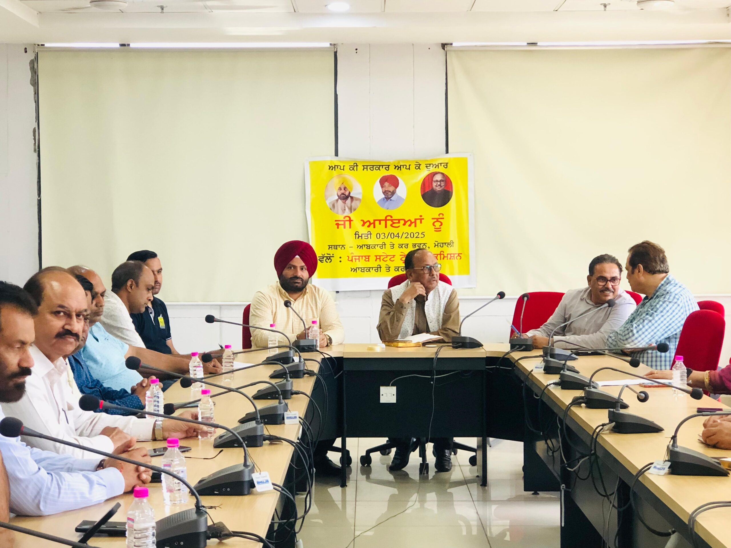 ਪੰਜਾਬ ਰਾਜ ਦੇ ਜੀ.ਐਸ.ਟੀ. ਅਤੇ ਆਬਕਾਰੀ ਮਾਮਲਿਆਂ ਸਬੰਧੀ ਮੀਟਿੰਗ ਦੀ ਅੱਜ ਮੋਹਾਲੀ ਦੇ ਆਬਕਾਰੀ ਅਤੇ ਕਰ ਭਵਨ ਵਿਖੇ ਕਮਿਸ਼ਨ ਦੇ ਦਫ਼ਤਰ ਵਿਖੇ ਪ੍ਰਧਾਨਗੀ ਕਰਦਿਆਂ ਚੇਅਰਮੈਨ ਅਨਿਲ ਠਾਕੁਰ ਨੇ ਵੱਖ- ਵੱਖ ਵਪਾਰੀਆਂ, ਕਾਰੋਬਾਰੀਆਂ ਅਤੇ ਉਦਯੋਗਪਤੀਆਂ ਦੇ ਮਾਮਲਿਆਂ ਸਬੰਧੀ ਵਿਚਾਰ ਵਟਾਂਦਰਾ ਕੀਤਾ ਅਤੇ ਆਬਕਾਰੀ, ਜੀ ਐਸ ਟੀ ਵਿਭਾਗ ਵਿਭਾਗ ਨੂੰ ਕਰ ਮਾਲੀਆ ਵਧਾਉਣ ਲਈ ਵਿਭਾਗ ਅਤੇ ਵਪਾਰੀ ਭਾਈਚਾਰੇ ਦਰਮਿਆਨ ਸੁਖਾਵਾਂ ਤਾਲਮੇਲ ਬਣਾਉਣ ਲਈ ਕਿਹਾ।