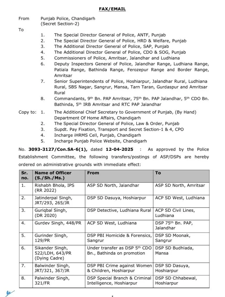 ਪੰਜਾਬ ਸਰਕਾਰ ਵੱਲੋਂ DSP’s ਦੇ ਤਬਾਦਲੇ ਚੰਡੀਗੜ੍ਹ ਅਪ੍ਰੈਲ 12, 2025ਅਪ੍ਰੈਲ 12, 2025BolePunjab.comLeave a Comment on ਪੰਜਾਬ ਸਰਕਾਰ ਵੱਲੋਂ DSP’s ਦੇ ਤਬਾਦਲੇ ਚੰਡੀਗੜ੍ਹ 12 ਅਪ੍ਰੈਲ ,ਬੋਲੇ ਪੰਜਾਬ ਬਿਊਰੋ : ਪੰਜਾਬ ਸਰਕਾਰ ਵੱਲੋਂ ਭਾਰੀ ਗਿਣਤੀ ‘ਚ DSP’s ਦੇ ਤਬਾਦਲੇ ਕੀਤੇ ਗਏ ਹਨ Related Postਪੰਜਾਬ ਨੇ ਸਕੂਲ ਅਧਿਆਪਕਾਂ ਨੂੰ ਕਰੀਅਰ ਮੈਂਟਰ ਵਜੋਂ ਸਿਖਲਾਈ ਦੇਣ ਲਈ ਆਈ.ਆਈ.ਟੀ. ਮਦਰਾਸ ਨਾਲ ਹੱਥ ਮਿਲਾਇਆਦਸੰਬਰ 5, 2025ਪੰਜਾਬ ਵਿੱਚ ਜ਼ਿਲ੍ਹਾ ਪ੍ਰੀਸ਼ਦ ਚੋਣਾਂ ਨੂੰ ਲੈ ਕੇ ਕਾਂਗਰਸ ਨੇ ਹਾਈ ਕੋਰਟ ਦਾ ਦਰਵਾਜ਼ਾ ਖੜਕਾਇਆਦਸੰਬਰ 5, 2025ਚੰਡੀਗੜ੍ਹ ਪੁਲਿਸ ਦੇ ਸ਼ਰਾਬੀ ASI ਨੇ 10 ਵਾਹਨਾਂ ਨੂੰ ਮਾਰੀ ਟੱਕਰਦਸੰਬਰ 5, 2025Latest Newsਪੰਜਾਬ ਨੇ ਸਕੂਲ ਅਧਿਆਪਕਾਂ ਨੂੰ ਕਰੀਅਰ ਮੈਂਟਰ ਵਜੋਂ ਸਿਖਲਾਈ ਦੇਣ ਲਈ ਆਈ.ਆਈ.ਟੀ. ਮਦਰਾਸ ਨਾਲ ਹੱਥ ਮਿਲਾਇਆਸੰਸਦ ਮੈਂਬਰ ਸ਼੍ਰੀ ਮਨੀਸ਼ ਤਿਵਾੜੀ ਨੇ ਲੋਕ ਸਭਾ ਵਿੱਚ ਹਰਿਆਣਾ, ਪੰਜਾਬ ਅਤੇ ਹਿਮਾਚਲ ਪ੍ਰਦੇਸ਼ ਦੇ ਡੈਮਾਂ ਦੀ ਡੀ-ਸਿਲਟਿੰਗ ਅਤੇ ਘਟਦੀ ਸਟੋਰੇਜ ਸਮਰੱਥਾ ਦਾ ਮੁੱਦਾ ਉਠਾਇਆਮੁੱਖ ਪ੍ਰਸ਼ਾਸ਼ਕ ਪੁੱਡਾ ਮੈਡਮ ਨੀਰੂ ਕਤਿਆਲ ਗੁਪਤਾ ਦੇ ਦਫਤਰ ਪੁੱਡਾ ਭਵਨ ਮੋਹਾਲੀ ਵਿਖੇ ਲੜੀਵਾਰ ਭੁੱਖ ਹੜਤਾਲਪੰਜਾਬ ਵਿੱਚ ਜ਼ਿਲ੍ਹਾ ਪ੍ਰੀਸ਼ਦ ਚੋਣਾਂ ਨੂੰ ਲੈ ਕੇ ਕਾਂਗਰਸ ਨੇ ਹਾਈ ਕੋਰਟ ਦਾ ਦਰਵਾਜ਼ਾ ਖੜਕਾਇਆਬਿਜਲੀ ਸੋਧ ਬਿਲ ਤੇ ਨਵੇਂ ਬੀਜ ਬਿੱਲ ਖਿਲਾਫ ਕਿਰਤੀ ਕਿਸਾਨ ਮੋਰਚਾ ਦੀ ਹੋਈ ਮੀਟਿੰਗPreviousNextLatest Newsਪੰਜਾਬ ਨੇ ਸਕੂਲ ਅਧਿਆਪਕਾਂ ਨੂੰ ਕਰੀਅਰ ਮੈਂਟਰ ਵਜੋਂ ਸਿਖਲਾਈ ਦੇਣ ਲਈ ਆਈ.ਆਈ.ਟੀ. ਮਦਰਾਸ ਨਾਲ ਹੱਥ ਮਿਲਾਇਆਸੰਸਦ ਮੈਂਬਰ ਸ਼੍ਰੀ ਮਨੀਸ਼ ਤਿਵਾੜੀ ਨੇ ਲੋਕ ਸਭਾ ਵਿੱਚ ਹਰਿਆਣਾ, ਪੰਜਾਬ ਅਤੇ ਹਿਮਾਚਲ ਪ੍ਰਦੇਸ਼ ਦੇ ਡੈਮਾਂ ਦੀ ਡੀ-ਸਿਲਟਿੰਗ ਅਤੇ ਘਟਦੀ ਸਟੋਰੇਜ ਸਮਰੱਥਾ ਦਾ ਮੁੱਦਾ ਉਠਾਇਆਮੁੱਖ ਪ੍ਰਸ਼ਾਸ਼ਕ ਪੁੱਡਾ ਮੈਡਮ ਨੀਰੂ ਕਤਿਆਲ ਗੁਪਤਾ ਦੇ ਦਫਤਰ ਪੁੱਡਾ ਭਵਨ ਮੋਹਾਲੀ ਵਿਖੇ ਲੜੀਵਾਰ ਭੁੱਖ ਹੜਤਾਲਪੰਜਾਬ ਵਿੱਚ ਜ਼ਿਲ੍ਹਾ ਪ੍ਰੀਸ਼ਦ ਚੋਣਾਂ ਨੂੰ ਲੈ ਕੇ ਕਾਂਗਰਸ ਨੇ ਹਾਈ ਕੋਰਟ ਦਾ ਦਰਵਾਜ਼ਾ ਖੜਕਾਇਆਬਿਜਲੀ ਸੋਧ ਬਿਲ ਤੇ ਨਵੇਂ ਬੀਜ ਬਿੱਲ ਖਿਲਾਫ ਕਿਰਤੀ ਕਿਸਾਨ ਮੋਰਚਾ ਦੀ ਹੋਈ ਮੀਟਿੰਗਪਾਈਟੈਕਸ ਵਿਖੇ ਅਪਾਹਜਾਂ ਅਤੇ ਬਜ਼ੁਰਗਾਂ ਲਈ ਵ੍ਹੀਲਚੇਅਰ ਦੀ ਸਹੂਲਤਚੰਡੀਗੜ੍ਹ ਪੁਲਿਸ ਦੇ ਸ਼ਰਾਬੀ ASI ਨੇ 10 ਵਾਹਨਾਂ ਨੂੰ ਮਾਰੀ ਟੱਕਰਪੰਜਾਬ ਵਿੱਚ ਰੇਲਵੇ ਪਟੜੀਆਂ ‘ਤੇ ਕਿਸਾਨਾਂ ਅਤੇ ਪੁਲਿਸ ਵਿਚਕਾਰ ਝੜਪਾਂਦੇਸ਼ ਭਗਤ ਯੂਨੀਵਰਸਿਟੀ ਨੇ ਕਰਵਾਈ ਅੰਤਰਰਾਸ਼ਟਰੀ ਕਾਨਫਰੰਸ ਅਤੇ ਅਗਾਂਹਵਧੂ ਕਿਸਾਨ ਮਿਲਣੀਆਮ ਆਦਮੀ ਪਾਰਟੀ ਵੱਲੋਂ ਨਾਮਜ਼ਦਗੀ ਪੱਤਰ ਦਾਖਲ ਕਰਨ ਦੌਰਾਨ ਸ਼ਰੇਆਮ ਗੁੰਡਾਗਰਦੀ ਦੀਆਂ ਘਟਨਾਵਾਂ ਅਤੇ ਚੋਣ ਪ੍ਰਕਿਰਿਆ ਦੌਰਾਨ ਸਰਕਾਰੀ ਮਸ਼ੀਨਰੀ ਦੀ ਕਥਿਤ ਦੁਰਵਰਤੋਂ ਲੋਕਤੰਤਰ ਲਈ ਖ਼ਤਰਨਾਕ – ਕੈਂਥ ਪੁਲਿਸ ਮੁਲਾਜ਼ਮਾਂ ‘ਤੇ ਵਰਦੀ ‘ਚ ਰੀਲਾਂ ਬਣਾਉਣ ‘ਤੇ ਲੱਗੀ ਪਾਬੰਦੀਜਲੰਧਰ ‘ਚ ਰੋਡਵੇਜ਼ ਬੱਸ ਨੇ ਸਕੂਟਰ ਨੂੰ ਟੱਕਰ ਮਾਰੀ, ਪੁੱਤ ਦੀ ਮੌਤ ਪਿਤਾ ਗੰਭੀਰ ਜ਼ਖ਼ਮੀ PreviousNext