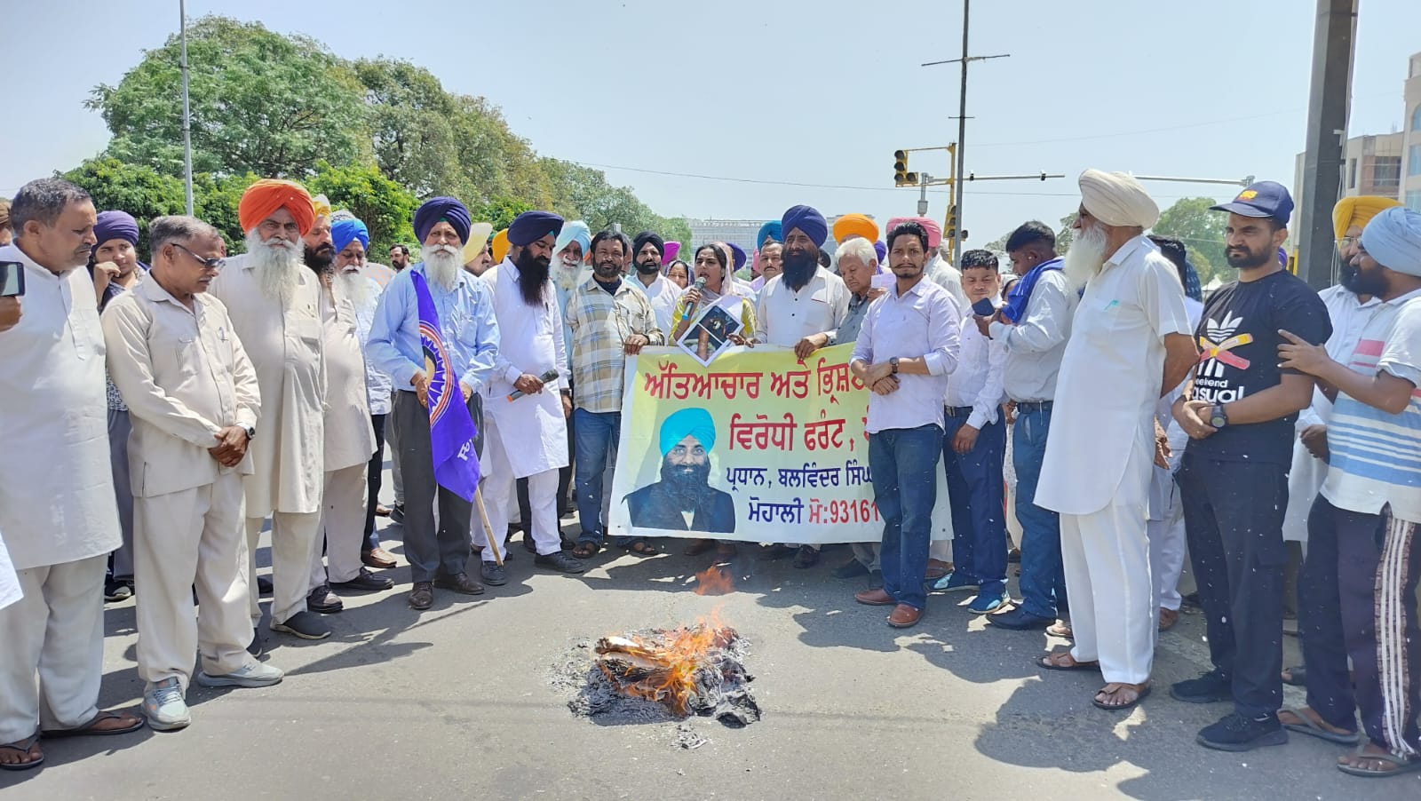 ਮੋਰਚਾ ਆਗੂਆਂ ਨੇ ਕੇਕ ਕੱਟਣ ਤੋਂ ਬਾਅਦ ਫੇਸ ਸੱਤ ਦੇ ਚੌਂਕ ਵਿੱਚ ਜਾਕੇ ਪੀੜਤ ਪਰਿਵਾਰਾਂ ਵੱਲੋਂ ਲਿਆਂਦੇ ਰਾਸ਼ਟਰੀ ਅਤੇ ਪੰਜਾਬ ਦੇ ਐਸ ਸੀ ਕਮਿਸ਼ਨਾਂ ਦੇ ਹੁਕਮਾਂ ਦੀਆਂ ਕਾਪੀਆਂ ਨੂੰ ਫੂਕਿਆ ਤੇ ਉਹਨਾਂ ਵਿਰੁੱਧ ਜੰਮ ਕੇ ਨਾਅਰੇਬਾਜ਼ੀ ਕੀਤੀ। ਉਹਨਾਂ ਨੇ ਕਿਹਾ ਕਿ ਰਾਸ਼ਟਰੀ ਅਤੇ ਪੰਜਾਬ ਦੇ ਐਸ ਸੀ ਕਮਿਸ਼ਨ ਚਿੱਟੇ ਹਾਥੀ ਸਾਬਤ ਹੋ ਰਹੇ ਹਨ। ਇਹਨਾਂ ਦੇ ਹੁਕਮਾਂ ਨੂੰ ਨਾ ਤਾਂ ਪੰਜਾਬ ਸਰਕਾਰ ਮੰਨਦੀ ਹੈ ਅਤੇ ਨਾ ਹੀ ਪੁਲਿਸ ਪ੍ਰਸ਼ਾਸਨ ਜਾਂ ਅਫਸਰ ਮੰਨਦੇ ਹਨ। ਉਹਨਾਂ ਕਿਹਾ ਕਿ ਐਸੀ ਕਮਿਸ਼ਨਾਂ ਵੱਲੋਂ ਕੀਤੇ ਹੁਕਮਾਂ ਉੱਤੇ ਦੁਬਾਰਾ ਕੋਈ ਕਾਰਵਾਈ ਨਹੀਂ ਕੀਤੀ ਜਾਂਦੀ। ਐਸੀ ਸਮਾਜ ਦੇ ਪੀੜਤ ਪਰਿਵਾਰਾਂ ਦੀ ਕਿਤੇ ਵੀ ਸੁਣਵਾਈ ਨਹੀਂ ਹੋ ਰਹੀ। ਇਸ ਮੌਕੇ ਪੁਲਿਸ ਤੋਂ ਪੀੜਿਤ ਪਿੰਡ ਕੈਲੋ ਦੇ ਪਰਿਵਾਰ ਨੇ ਪ੍ਰੈੱਸ ਸਾਹਮਣੇ ਆਪਣੇ ਨਾਲ ਹੋਈ ਵਿਥਿਆ ਦੱਸੀ ਤੇ ਆਗੂਆਂ ਨੇ ਐਲਾਨ ਕੀਤਾ ਕਿ ਜੇ ਪੁਲਿਸ ਇੱਕ ਹਫਤੇ ਅੰਦਰ ਕਾਰਵਾਈ ਨਹੀ ਕਰਦੀ ਤਾਂ ਐਸਐਸਪੀ ਮੋਹਾਲੀ ਦੇ ਘਿਰਾਓ ਦਾ ਐਲਾਨ ਕੀਤਾ ਜਾਵੇਗਾ।