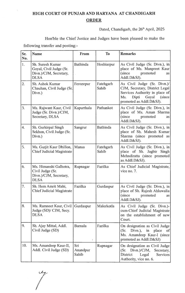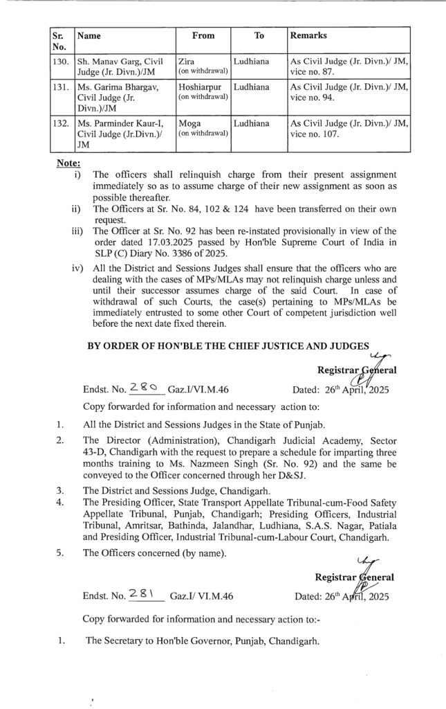 132 ਜੱਜਾਂ ਦਾ ਹਾਈਕੋਰਟ ਵੱਲੋਂ ਤਬਾਦਲਾ ਚੰਡੀਗੜ੍ਹ ਅਪ੍ਰੈਲ 27, 2025ਅਪ੍ਰੈਲ 27, 2025BolePunjab.comLeave a Comment on 132 ਜੱਜਾਂ ਦਾ ਹਾਈਕੋਰਟ ਵੱਲੋਂ ਤਬਾਦਲਾ ਚੰਡੀਗੜ੍ਹ 27 ਅਪ੍ਰੈਲ ,ਬੋਲੇ ਪੰਜਾਬ ਬਿਊਰੋ : ਪੰਜਾਬ ਹਰਿਆਣਾ ਹਾਈਕੋਰਟ ਦੇ ਵੱਲੋਂ 132 ਨਿਆਂਇਕ ਅਧਿਕਾਰੀਆਂ (ਜੱਜਾਂ) ਦਾ ਤਬਾਦਲਾ ਕੀਤਾ ਗਿਆ ਹੈ। Related Postਪੰਜਾਬ ਨੇ ਸਕੂਲ ਅਧਿਆਪਕਾਂ ਨੂੰ ਕਰੀਅਰ ਮੈਂਟਰ ਵਜੋਂ ਸਿਖਲਾਈ ਦੇਣ ਲਈ ਆਈ.ਆਈ.ਟੀ. ਮਦਰਾਸ ਨਾਲ ਹੱਥ ਮਿਲਾਇਆਦਸੰਬਰ 5, 2025ਪੰਜਾਬ ਵਿੱਚ ਜ਼ਿਲ੍ਹਾ ਪ੍ਰੀਸ਼ਦ ਚੋਣਾਂ ਨੂੰ ਲੈ ਕੇ ਕਾਂਗਰਸ ਨੇ ਹਾਈ ਕੋਰਟ ਦਾ ਦਰਵਾਜ਼ਾ ਖੜਕਾਇਆਦਸੰਬਰ 5, 2025ਚੰਡੀਗੜ੍ਹ ਪੁਲਿਸ ਦੇ ਸ਼ਰਾਬੀ ASI ਨੇ 10 ਵਾਹਨਾਂ ਨੂੰ ਮਾਰੀ ਟੱਕਰਦਸੰਬਰ 5, 2025Latest Newsਪੰਜਾਬ ਨੇ ਸਕੂਲ ਅਧਿਆਪਕਾਂ ਨੂੰ ਕਰੀਅਰ ਮੈਂਟਰ ਵਜੋਂ ਸਿਖਲਾਈ ਦੇਣ ਲਈ ਆਈ.ਆਈ.ਟੀ. ਮਦਰਾਸ ਨਾਲ ਹੱਥ ਮਿਲਾਇਆਸੰਸਦ ਮੈਂਬਰ ਸ਼੍ਰੀ ਮਨੀਸ਼ ਤਿਵਾੜੀ ਨੇ ਲੋਕ ਸਭਾ ਵਿੱਚ ਹਰਿਆਣਾ, ਪੰਜਾਬ ਅਤੇ ਹਿਮਾਚਲ ਪ੍ਰਦੇਸ਼ ਦੇ ਡੈਮਾਂ ਦੀ ਡੀ-ਸਿਲਟਿੰਗ ਅਤੇ ਘਟਦੀ ਸਟੋਰੇਜ ਸਮਰੱਥਾ ਦਾ ਮੁੱਦਾ ਉਠਾਇਆਮੁੱਖ ਪ੍ਰਸ਼ਾਸ਼ਕ ਪੁੱਡਾ ਮੈਡਮ ਨੀਰੂ ਕਤਿਆਲ ਗੁਪਤਾ ਦੇ ਦਫਤਰ ਪੁੱਡਾ ਭਵਨ ਮੋਹਾਲੀ ਵਿਖੇ ਲੜੀਵਾਰ ਭੁੱਖ ਹੜਤਾਲਪੰਜਾਬ ਵਿੱਚ ਜ਼ਿਲ੍ਹਾ ਪ੍ਰੀਸ਼ਦ ਚੋਣਾਂ ਨੂੰ ਲੈ ਕੇ ਕਾਂਗਰਸ ਨੇ ਹਾਈ ਕੋਰਟ ਦਾ ਦਰਵਾਜ਼ਾ ਖੜਕਾਇਆਬਿਜਲੀ ਸੋਧ ਬਿਲ ਤੇ ਨਵੇਂ ਬੀਜ ਬਿੱਲ ਖਿਲਾਫ ਕਿਰਤੀ ਕਿਸਾਨ ਮੋਰਚਾ ਦੀ ਹੋਈ ਮੀਟਿੰਗPreviousNextLatest Newsਪੰਜਾਬ ਨੇ ਸਕੂਲ ਅਧਿਆਪਕਾਂ ਨੂੰ ਕਰੀਅਰ ਮੈਂਟਰ ਵਜੋਂ ਸਿਖਲਾਈ ਦੇਣ ਲਈ ਆਈ.ਆਈ.ਟੀ. ਮਦਰਾਸ ਨਾਲ ਹੱਥ ਮਿਲਾਇਆਸੰਸਦ ਮੈਂਬਰ ਸ਼੍ਰੀ ਮਨੀਸ਼ ਤਿਵਾੜੀ ਨੇ ਲੋਕ ਸਭਾ ਵਿੱਚ ਹਰਿਆਣਾ, ਪੰਜਾਬ ਅਤੇ ਹਿਮਾਚਲ ਪ੍ਰਦੇਸ਼ ਦੇ ਡੈਮਾਂ ਦੀ ਡੀ-ਸਿਲਟਿੰਗ ਅਤੇ ਘਟਦੀ ਸਟੋਰੇਜ ਸਮਰੱਥਾ ਦਾ ਮੁੱਦਾ ਉਠਾਇਆਮੁੱਖ ਪ੍ਰਸ਼ਾਸ਼ਕ ਪੁੱਡਾ ਮੈਡਮ ਨੀਰੂ ਕਤਿਆਲ ਗੁਪਤਾ ਦੇ ਦਫਤਰ ਪੁੱਡਾ ਭਵਨ ਮੋਹਾਲੀ ਵਿਖੇ ਲੜੀਵਾਰ ਭੁੱਖ ਹੜਤਾਲਪੰਜਾਬ ਵਿੱਚ ਜ਼ਿਲ੍ਹਾ ਪ੍ਰੀਸ਼ਦ ਚੋਣਾਂ ਨੂੰ ਲੈ ਕੇ ਕਾਂਗਰਸ ਨੇ ਹਾਈ ਕੋਰਟ ਦਾ ਦਰਵਾਜ਼ਾ ਖੜਕਾਇਆਬਿਜਲੀ ਸੋਧ ਬਿਲ ਤੇ ਨਵੇਂ ਬੀਜ ਬਿੱਲ ਖਿਲਾਫ ਕਿਰਤੀ ਕਿਸਾਨ ਮੋਰਚਾ ਦੀ ਹੋਈ ਮੀਟਿੰਗਪਾਈਟੈਕਸ ਵਿਖੇ ਅਪਾਹਜਾਂ ਅਤੇ ਬਜ਼ੁਰਗਾਂ ਲਈ ਵ੍ਹੀਲਚੇਅਰ ਦੀ ਸਹੂਲਤਚੰਡੀਗੜ੍ਹ ਪੁਲਿਸ ਦੇ ਸ਼ਰਾਬੀ ASI ਨੇ 10 ਵਾਹਨਾਂ ਨੂੰ ਮਾਰੀ ਟੱਕਰਪੰਜਾਬ ਵਿੱਚ ਰੇਲਵੇ ਪਟੜੀਆਂ ‘ਤੇ ਕਿਸਾਨਾਂ ਅਤੇ ਪੁਲਿਸ ਵਿਚਕਾਰ ਝੜਪਾਂਦੇਸ਼ ਭਗਤ ਯੂਨੀਵਰਸਿਟੀ ਨੇ ਕਰਵਾਈ ਅੰਤਰਰਾਸ਼ਟਰੀ ਕਾਨਫਰੰਸ ਅਤੇ ਅਗਾਂਹਵਧੂ ਕਿਸਾਨ ਮਿਲਣੀਆਮ ਆਦਮੀ ਪਾਰਟੀ ਵੱਲੋਂ ਨਾਮਜ਼ਦਗੀ ਪੱਤਰ ਦਾਖਲ ਕਰਨ ਦੌਰਾਨ ਸ਼ਰੇਆਮ ਗੁੰਡਾਗਰਦੀ ਦੀਆਂ ਘਟਨਾਵਾਂ ਅਤੇ ਚੋਣ ਪ੍ਰਕਿਰਿਆ ਦੌਰਾਨ ਸਰਕਾਰੀ ਮਸ਼ੀਨਰੀ ਦੀ ਕਥਿਤ ਦੁਰਵਰਤੋਂ ਲੋਕਤੰਤਰ ਲਈ ਖ਼ਤਰਨਾਕ – ਕੈਂਥ ਪੁਲਿਸ ਮੁਲਾਜ਼ਮਾਂ ‘ਤੇ ਵਰਦੀ ‘ਚ ਰੀਲਾਂ ਬਣਾਉਣ ‘ਤੇ ਲੱਗੀ ਪਾਬੰਦੀਜਲੰਧਰ ‘ਚ ਰੋਡਵੇਜ਼ ਬੱਸ ਨੇ ਸਕੂਟਰ ਨੂੰ ਟੱਕਰ ਮਾਰੀ, ਪੁੱਤ ਦੀ ਮੌਤ ਪਿਤਾ ਗੰਭੀਰ ਜ਼ਖ਼ਮੀ PreviousNext