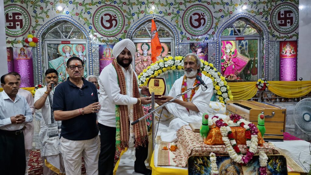 ਸ੍ਰੀ ਰਾਧਾ ਜੀ ਦੀ ਕਿਰਪਾ ਦੇ ਚਲਦਿਆਂ ਸ੍ਰੀ ਮਦ ਭਾਗਵਤ ਕਥਾ ਦਾ ਆਯੋਜਨ ਸ੍ਰੀ ਵੈਸ਼ਨੂ ਮਾਤਾ ਮੰਦਿਰ,ਜਨਤਾ ਮਾਰਕੀਟ, ਫੇਜ਼ -3-ਵੀ-ਵਨ ਮੋਹਾਲੀ ਵਿਖੇ ਕੀਤਾ ਗਿਆ, ਇਸ ਮੌਕੇ ਤੇ ਪਰਮ ਪੂਜਿਆ ਸ੍ਰੀ ਭਾਗਵਤ ਸਵਰੂਪ ਜੀ ਮਹਾਰਾਜ (ਸ੍ਰੀ ਧਾਮ ਬਾਰਸਾਨਾ ) ਕਥਾ ਕਰਕੇ ਹਾਜ਼ਰੀਨ ਸ਼ਰਧਾਲੂਆਂ ਦੇ ਲਈ ਉਤਸ਼ਾਹ ਅਤੇ ਸ਼ਰਧਾ ਭਰਪੂਰ ਮਾਹੌਲ ਬਣਾ ਦਿੱਤਾ, ਇਸ ਮੌਕੇ ਤੇ ਸ੍ਰੀ ਮਦਭਗਵਤ ਕਥਾ ਵਿੱਚ ਪਹੁੰਚੇ ਵਿਧਾਇਕ ਮੋਹਾਲੀ -ਕੁਲਵੰਤ ਸਿੰਘ ਨੇ ਪੱਤਰਕਾਰਾਂ ਨਾਲ ਗੱਲਬਾਤ ਕਰਦੇ ਹੋਏ ਕਿਹਾ ਕਿ ਮੈਂ ਆਪਣੇ ਆਪ ਨੂੰ ਵਡਭਾਗਾ ਸਮਝਦਾ ਹਾਂ ਕਿ ਅੱਜ ਸ਼੍ਰੀਮਦ ਭਾਗਵਤ ਕਥਾ ਦੇ ਵਿੱਚ ਹਾਜ਼ਰੀ ਲਗਵਾਉਣ ਦਾ ਮੌਕਾ ਮਿਲਿਆ ਅਤੇ ਮੈਂ ਵੀ ਸੰਗਤਾਂ ਦੇ ਨਾਲ ਸਿਮਰਨ ਦਾ ਲਾਹਾ ਲੈ ਸਕਿਆ ਹਾਂ,