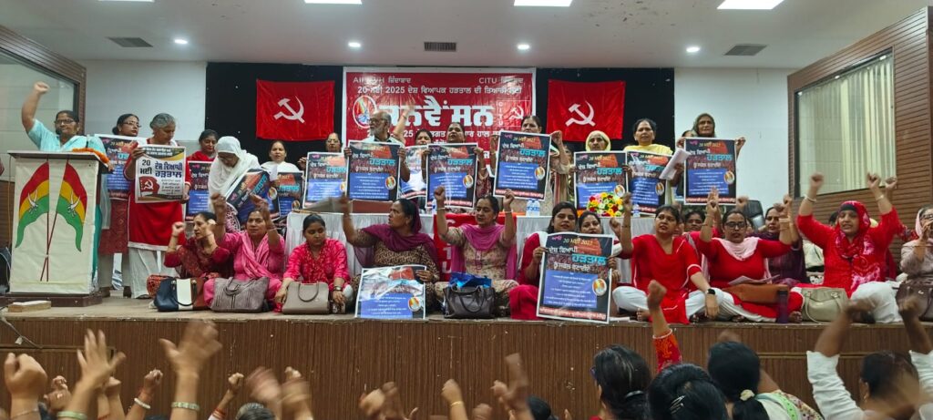 ਅੱਜ ਸੰਘਰਸ਼ ਦੇ ਬਿਗਲ ਨੂੰ ਅੱਗੇ ਵਧਾਉਂਦੇ ਹੋਏ ਆਂਗਣਵਾੜੀ ਮੁਲਾਜ਼ਮ ਯੂਨੀਅਨ ਪੰਜਾਬ ਸੀਟੂ ਵੱਲੋਂ 20 ਮਈ ਦੀ ਹੜਤਾਲ ਨੂੰ ਲੈ ਕੇ ਤਿਆਰੀਆਂ ਆਰੰਭ ਦਿੱਤੀਆਂ ਹਨ। ਦੁਆਬਾ ਜੋਨ ਦੀ ਕਨਵੈਂਸ਼ਨ ਸੂਬਾ ਪ੍ਰਧਾਨ ਹਰਜੀਤ ਕੌਰ ਪੰਜੋਲਾ ਦੀ ਅਗਵਾਈ ਵਿੱਚ ਕੀਤੀ ਗਈ। ਅੱਜ ਦੀ ਕਨਵੈਂਸ਼ਨ ਵਿੱਚ ਜਿਲਾ ਲੁਧਿਆਣਾ,ਕਪੂਰਥਲਾ,ਹੁਸ਼ਿਆਰਪੁਰ,ਤਰਨਤਾਰਨ,ਗੁਰਦਾਸਪੁਰ,ਨਵਾ ਸ਼ਹਿਰ,ਅੰਮ੍ਰਿਤਸਰ,ਜਲੰਧਰ,ਪਠਾਨਕੋਟ ਦੇ ਚੁਣੀ ਹੋਈ ਟੀਮ ਨੇ ਭਾਗ ਲਿਆ ।ਅੱਜ ਦੀ ਕਨਵੈਂਸ਼ਨ ਨੂੰ ਵਿਸ਼ੇਸ਼ ਤੌਰ ਤੇ ਸੰਬੋਧਨ ਕਰਨ ਵਾਸਤੇ ਕੌਮੀ ਪ੍ਰਧਾਨ ਸ਼੍ਰੀਮਤੀ ਊਸ਼ਾ ਰਾਣੀ ਸ਼ਾਮਿਲ ਹੋਏ ਉਹਨਾਂ ਨੇ ਕਨਵੈਂਸ਼ਨ ਨੂੰ ਸੰਬੋਧਨ ਹੁੰਦੇ ਹੋਏ ਕਿਹਾ ਕਿ ਅੱਜ ਦੇਸ਼ ਭਰ ਵਿੱਚ ਫਿਰਕਾਪ੍ਰਸਤੀ ਨਿੱਜੀਕਰਨ ਲਗਾਤਾਰ ਵੱਧ ਰਿਹਾ ਹੈ । ਦੇਸ਼ ਦੇ ਮਜ਼ਦੂਰਾਂ ਖਿਲਾਫ ਸਰਕਾਰ ਦੀਆਂ ਨਿੱਤ ਨਵੀਆਂ ਨੀਤੀਆਂ ਸਰਕਾਰ ਵੱਲੋਂ ਲਿਆਂਦੀਆਂ ਜਾ ਰਹੀਆਂ ਹਨ । ਚਾਰ ਲੇਬਰ ਕੋਡ ਲਿਆ ਕੇ ਜਮਹੂਰੀ ਅਧਿਕਾਰਾਂ ਉੱਤੇ ਡਾਕਾ ਮਾਰਿਆ ਹੈ ਅਤੇ ਇਹ ਡਾਕਾ ਨਹੀਂ ਵੱਜਣ ਦਿੱਤਾ ਜਾਵੇਗਾ ।