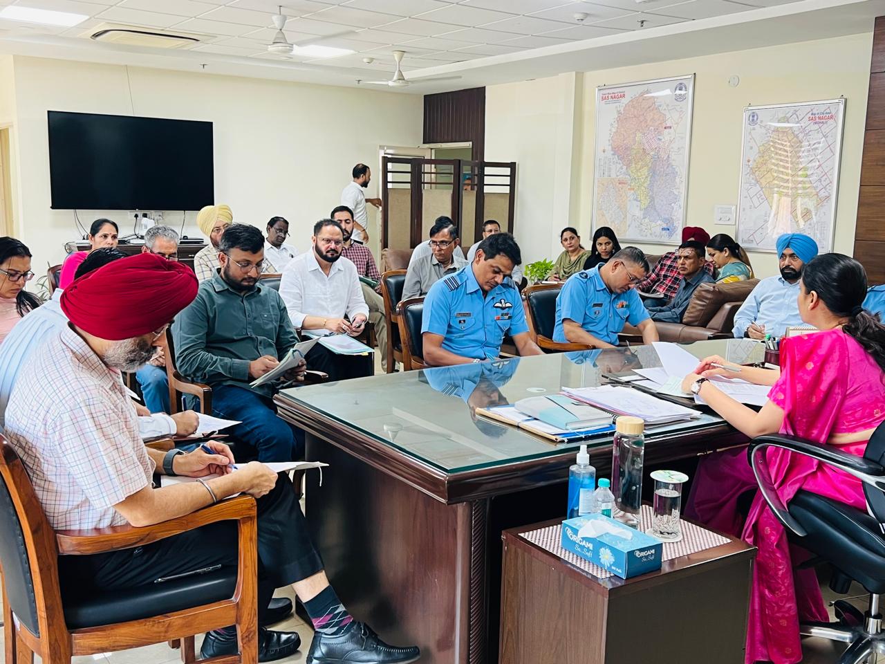 ਡਿਪਟੀ ਕਮਿਸ਼ਨਰ, ਕੋਮਲ ਮਿੱਤਲ ਵੱਲੋਂ ਜ਼ਿਲ੍ਹਾ ਪ੍ਰਬੰਧਕੀ ਕੰਪਲੈਕਸ ਵਿਖੇ ਸ਼ਹੀਦ ਭਗਤ ਸਿੰਘ ਅੰਤਰਰਾਸ਼ਟਰੀ ਹਵਾਈ ਅੱਡੇ ਦੇ ਆਲੇ-ਦੁਆਲੇ ਦੇ ਏਅਰਫੀਲਡ ਨੂੰ ਪੰਛੀਆਂ ਤੋਂ ਮੁਕਤ ਬਣਾਉਣ ਲਈ ਏਅਰਪੋਰਟ ਅਥਾਰਟੀਆਂ ਤੋਂ ਇਲਾਵਾ ਸਬੰਧਤ ਵਿਭਾਗਾਂ ਜਿਵੇਂ ਕਿ ਗਮਾਡਾ, ਨਗਰ ਨਿਗਮ ਅਤੇ ਪੇਂਡੂ ਵਿਕਾਸ ਤੇ ਪੰਚਾਇਤਾਂ ਨਾਲ ਮੀਟਿੰਗ ਕੀਤੀ ਗਈ।