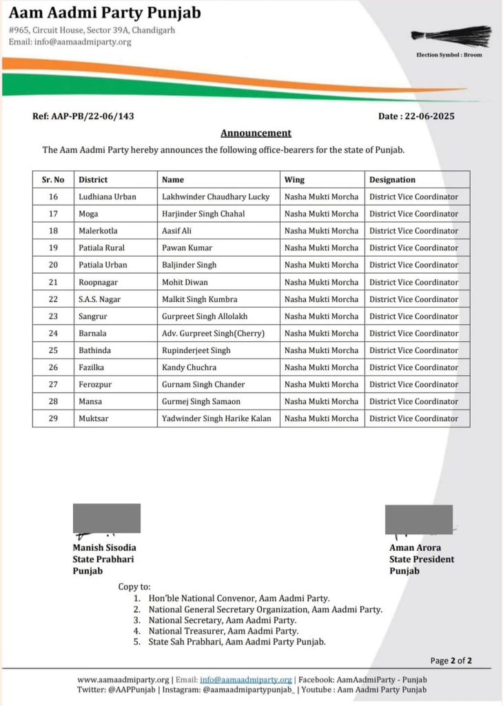 ਪੰਜਾਬ ਦੇ ਅਹੁਦੇਦਾਰਾਂ ਦਾ ਆਮ ਆਦਮੀ ਪਾਰਟੀ ਵੱਲੋਂ ਐਲਾਨ ਚੰਡੀਗੜ੍ਹ ਜੂਨ 22, 2025ਜੂਨ 22, 2025BolePunjab.comLeave a Comment on ਪੰਜਾਬ ਦੇ ਅਹੁਦੇਦਾਰਾਂ ਦਾ ਆਮ ਆਦਮੀ ਪਾਰਟੀ ਵੱਲੋਂ ਐਲਾਨ ਚੰਡੀਗੜ੍ਹ 22 ਜੂਨ ,ਬੋਲੇ ਪੰਜਾਬ ਬਿਊਰੋ; ਆਮ ਆਦਮੀ ਪਾਰਟੀ ਵੱਲੋਂ ਜੋਨਾਂ ਅਤੇ ਜ਼ਿਲ੍ਹਿਆਂ ਦੇ ਅਹੁਦੇਦਾਰਾਂ ਦਾ ਐਲਾਨ ਕੀਤਾ ਗਿਆ ਹੈ। ਆਮ ਆਦਮੀ ਪਾਰਟੀ ਪੰਜਾਬ ਦੇ ਵੱਖ-ਵੱਖ ਜ਼ੋਨਾਂ ਦੇ ਸੋਸਲ ਮੀਡੀਆ ਵਿੰਗ ਦੇ ਅਹੁਦੇਦਾਰਾਂ ਦਾ ਐਲਾਨ ਕੀਤਾ ਹੈ। Related Postਹੁਕਮਨਾਮਾ ਸੱਚਖੰਡ ਸ੍ਰੀ ਹਰਿਮੰਦਰ ਸਾਹਿਬ ਅੰਮ੍ਰਿਤਸਰ, ਅੰਗ 729, 06-12-2025ਦਸੰਬਰ 6, 2025ਪੰਜਾਬ ਨੇ ਸਕੂਲ ਅਧਿਆਪਕਾਂ ਨੂੰ ਕਰੀਅਰ ਮੈਂਟਰ ਵਜੋਂ ਸਿਖਲਾਈ ਦੇਣ ਲਈ ਆਈ.ਆਈ.ਟੀ. ਮਦਰਾਸ ਨਾਲ ਹੱਥ ਮਿਲਾਇਆਦਸੰਬਰ 5, 2025ਪੰਜਾਬ ਵਿੱਚ ਜ਼ਿਲ੍ਹਾ ਪ੍ਰੀਸ਼ਦ ਚੋਣਾਂ ਨੂੰ ਲੈ ਕੇ ਕਾਂਗਰਸ ਨੇ ਹਾਈ ਕੋਰਟ ਦਾ ਦਰਵਾਜ਼ਾ ਖੜਕਾਇਆਦਸੰਬਰ 5, 2025Latest Newsਹੁਕਮਨਾਮਾ ਸੱਚਖੰਡ ਸ੍ਰੀ ਹਰਿਮੰਦਰ ਸਾਹਿਬ ਅੰਮ੍ਰਿਤਸਰ, ਅੰਗ 729, 06-12-2025ਪੰਜਾਬ ਨੇ ਸਕੂਲ ਅਧਿਆਪਕਾਂ ਨੂੰ ਕਰੀਅਰ ਮੈਂਟਰ ਵਜੋਂ ਸਿਖਲਾਈ ਦੇਣ ਲਈ ਆਈ.ਆਈ.ਟੀ. ਮਦਰਾਸ ਨਾਲ ਹੱਥ ਮਿਲਾਇਆਸੰਸਦ ਮੈਂਬਰ ਸ਼੍ਰੀ ਮਨੀਸ਼ ਤਿਵਾੜੀ ਨੇ ਲੋਕ ਸਭਾ ਵਿੱਚ ਹਰਿਆਣਾ, ਪੰਜਾਬ ਅਤੇ ਹਿਮਾਚਲ ਪ੍ਰਦੇਸ਼ ਦੇ ਡੈਮਾਂ ਦੀ ਡੀ-ਸਿਲਟਿੰਗ ਅਤੇ ਘਟਦੀ ਸਟੋਰੇਜ ਸਮਰੱਥਾ ਦਾ ਮੁੱਦਾ ਉਠਾਇਆਮੁੱਖ ਪ੍ਰਸ਼ਾਸ਼ਕ ਪੁੱਡਾ ਮੈਡਮ ਨੀਰੂ ਕਤਿਆਲ ਗੁਪਤਾ ਦੇ ਦਫਤਰ ਪੁੱਡਾ ਭਵਨ ਮੋਹਾਲੀ ਵਿਖੇ ਲੜੀਵਾਰ ਭੁੱਖ ਹੜਤਾਲਪੰਜਾਬ ਵਿੱਚ ਜ਼ਿਲ੍ਹਾ ਪ੍ਰੀਸ਼ਦ ਚੋਣਾਂ ਨੂੰ ਲੈ ਕੇ ਕਾਂਗਰਸ ਨੇ ਹਾਈ ਕੋਰਟ ਦਾ ਦਰਵਾਜ਼ਾ ਖੜਕਾਇਆPreviousNextLatest Newsਹੁਕਮਨਾਮਾ ਸੱਚਖੰਡ ਸ੍ਰੀ ਹਰਿਮੰਦਰ ਸਾਹਿਬ ਅੰਮ੍ਰਿਤਸਰ, ਅੰਗ 729, 06-12-2025ਪੰਜਾਬ ਨੇ ਸਕੂਲ ਅਧਿਆਪਕਾਂ ਨੂੰ ਕਰੀਅਰ ਮੈਂਟਰ ਵਜੋਂ ਸਿਖਲਾਈ ਦੇਣ ਲਈ ਆਈ.ਆਈ.ਟੀ. ਮਦਰਾਸ ਨਾਲ ਹੱਥ ਮਿਲਾਇਆਸੰਸਦ ਮੈਂਬਰ ਸ਼੍ਰੀ ਮਨੀਸ਼ ਤਿਵਾੜੀ ਨੇ ਲੋਕ ਸਭਾ ਵਿੱਚ ਹਰਿਆਣਾ, ਪੰਜਾਬ ਅਤੇ ਹਿਮਾਚਲ ਪ੍ਰਦੇਸ਼ ਦੇ ਡੈਮਾਂ ਦੀ ਡੀ-ਸਿਲਟਿੰਗ ਅਤੇ ਘਟਦੀ ਸਟੋਰੇਜ ਸਮਰੱਥਾ ਦਾ ਮੁੱਦਾ ਉਠਾਇਆਮੁੱਖ ਪ੍ਰਸ਼ਾਸ਼ਕ ਪੁੱਡਾ ਮੈਡਮ ਨੀਰੂ ਕਤਿਆਲ ਗੁਪਤਾ ਦੇ ਦਫਤਰ ਪੁੱਡਾ ਭਵਨ ਮੋਹਾਲੀ ਵਿਖੇ ਲੜੀਵਾਰ ਭੁੱਖ ਹੜਤਾਲਪੰਜਾਬ ਵਿੱਚ ਜ਼ਿਲ੍ਹਾ ਪ੍ਰੀਸ਼ਦ ਚੋਣਾਂ ਨੂੰ ਲੈ ਕੇ ਕਾਂਗਰਸ ਨੇ ਹਾਈ ਕੋਰਟ ਦਾ ਦਰਵਾਜ਼ਾ ਖੜਕਾਇਆਬਿਜਲੀ ਸੋਧ ਬਿਲ ਤੇ ਨਵੇਂ ਬੀਜ ਬਿੱਲ ਖਿਲਾਫ ਕਿਰਤੀ ਕਿਸਾਨ ਮੋਰਚਾ ਦੀ ਹੋਈ ਮੀਟਿੰਗਪਾਈਟੈਕਸ ਵਿਖੇ ਅਪਾਹਜਾਂ ਅਤੇ ਬਜ਼ੁਰਗਾਂ ਲਈ ਵ੍ਹੀਲਚੇਅਰ ਦੀ ਸਹੂਲਤਚੰਡੀਗੜ੍ਹ ਪੁਲਿਸ ਦੇ ਸ਼ਰਾਬੀ ASI ਨੇ 10 ਵਾਹਨਾਂ ਨੂੰ ਮਾਰੀ ਟੱਕਰਪੰਜਾਬ ਵਿੱਚ ਰੇਲਵੇ ਪਟੜੀਆਂ ‘ਤੇ ਕਿਸਾਨਾਂ ਅਤੇ ਪੁਲਿਸ ਵਿਚਕਾਰ ਝੜਪਾਂਦੇਸ਼ ਭਗਤ ਯੂਨੀਵਰਸਿਟੀ ਨੇ ਕਰਵਾਈ ਅੰਤਰਰਾਸ਼ਟਰੀ ਕਾਨਫਰੰਸ ਅਤੇ ਅਗਾਂਹਵਧੂ ਕਿਸਾਨ ਮਿਲਣੀਆਮ ਆਦਮੀ ਪਾਰਟੀ ਵੱਲੋਂ ਨਾਮਜ਼ਦਗੀ ਪੱਤਰ ਦਾਖਲ ਕਰਨ ਦੌਰਾਨ ਸ਼ਰੇਆਮ ਗੁੰਡਾਗਰਦੀ ਦੀਆਂ ਘਟਨਾਵਾਂ ਅਤੇ ਚੋਣ ਪ੍ਰਕਿਰਿਆ ਦੌਰਾਨ ਸਰਕਾਰੀ ਮਸ਼ੀਨਰੀ ਦੀ ਕਥਿਤ ਦੁਰਵਰਤੋਂ ਲੋਕਤੰਤਰ ਲਈ ਖ਼ਤਰਨਾਕ – ਕੈਂਥ ਪੁਲਿਸ ਮੁਲਾਜ਼ਮਾਂ ‘ਤੇ ਵਰਦੀ ‘ਚ ਰੀਲਾਂ ਬਣਾਉਣ ‘ਤੇ ਲੱਗੀ ਪਾਬੰਦੀPreviousNext